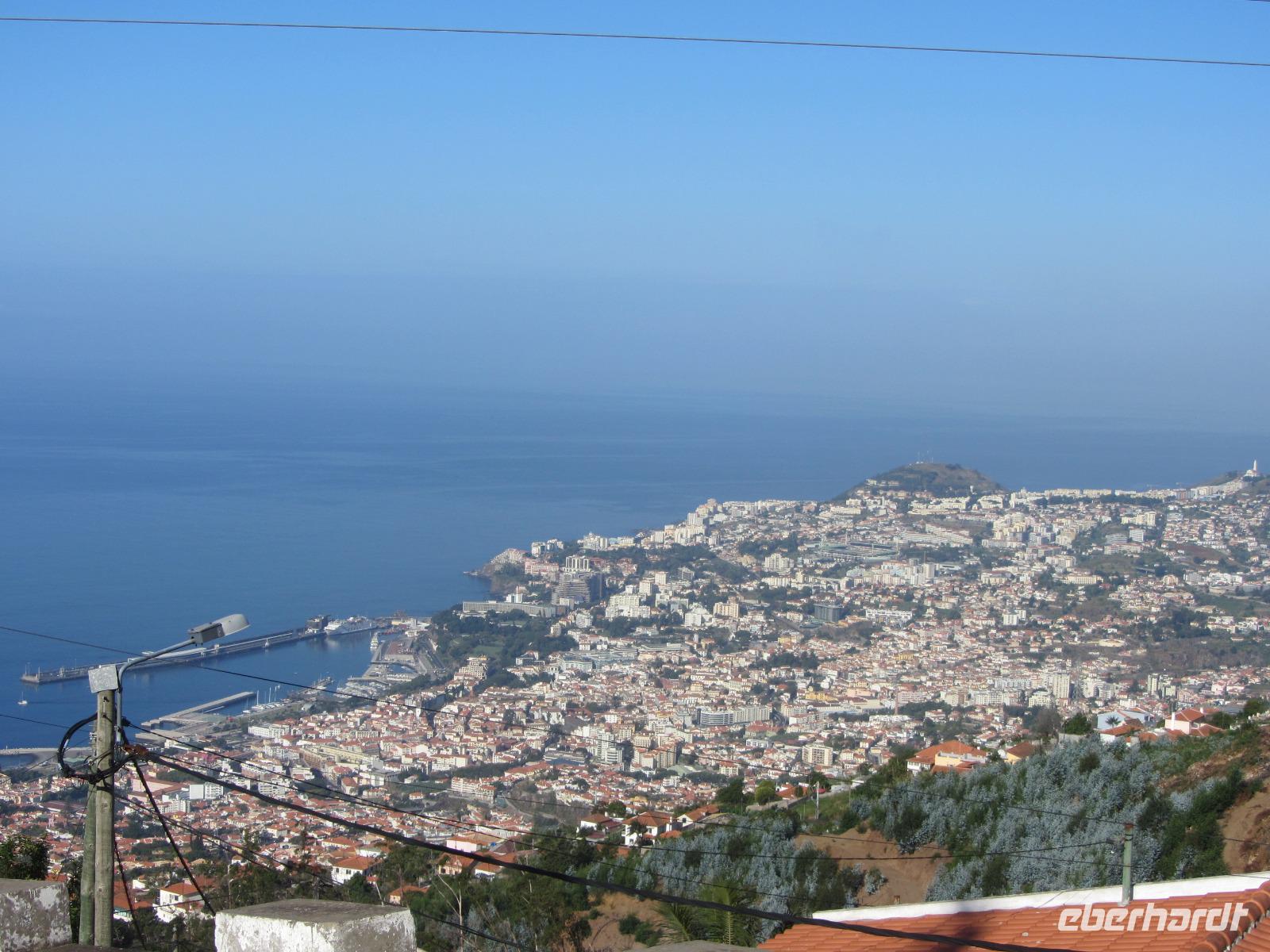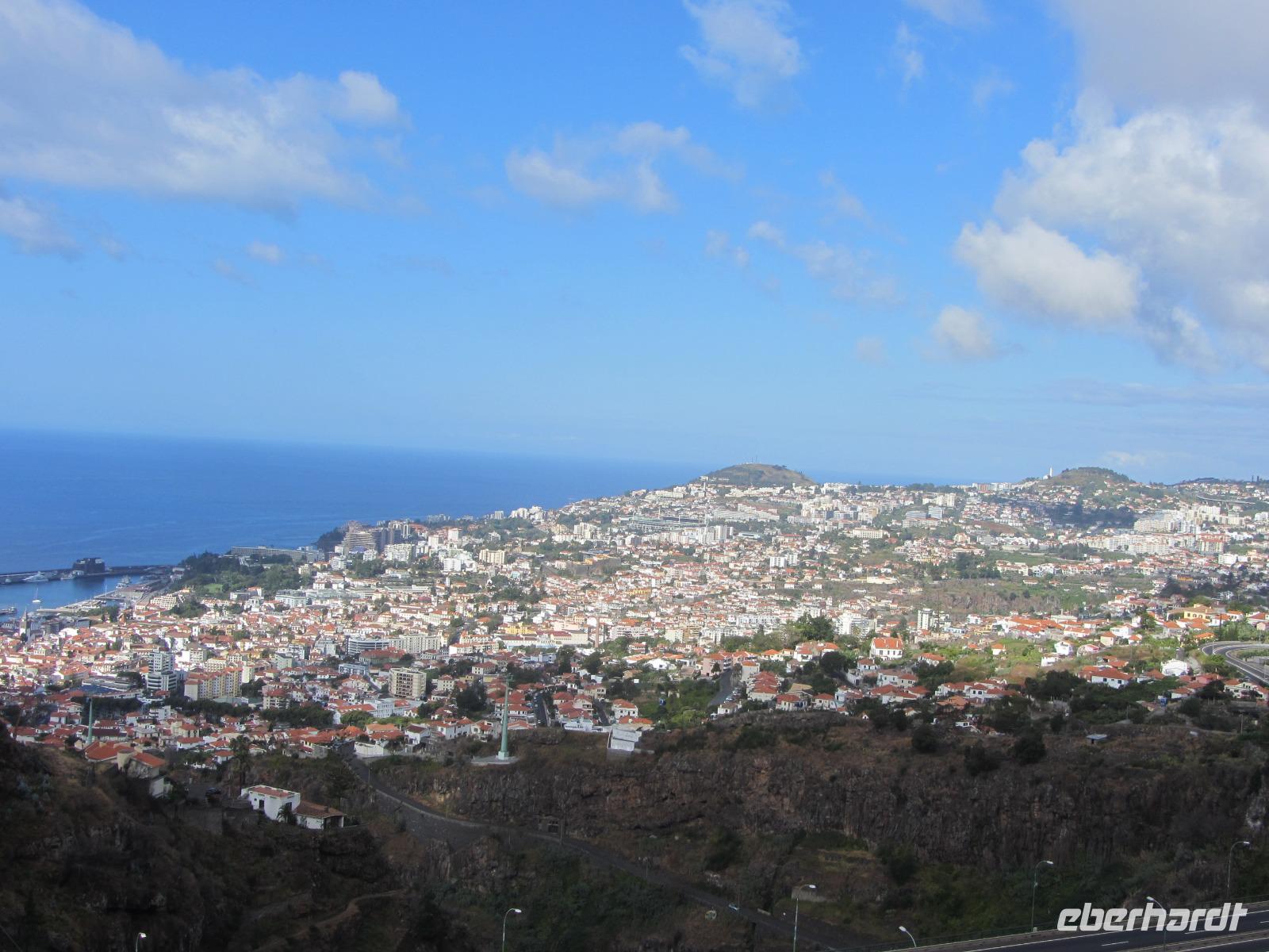Im Anschluss an die Wanderung fahren wir in den Ort Monte, der hoch über Funchal liegt. Hier finden sich nach einem kurzen Spaziergang durch den Ort tatsächlich Mutige, die mit einem der berühmten Korbschlitten ins Tal hinunterfahren wollen. Die Abfahrt überstehen alle unversehrt und werden von uns mit dem Bus im Tal wieder aufgesammelt. Unseren Ausflug setzen wir anschließend fort zum Eira do Serrado - einem auf über 1.000m gelegenen Aussichtspunkt, von dem aus man einen fantastischen Blick auf das Nonnental hat. Mit dem Bus kämpfen wir uns zunächst durch dichte Nebelwände und fürchten, dass wir leider nichts zu sehen bekommen! Doch dann verschwindet der Nebel auf dem Parkplatz vor dem Aussichtspunkt urplötzlich, sodass wir bei strahlendem Sonnenschein die beeindruckende Aussicht genießen können - wir nutzen die Aussicht zudem, um vor Ort eine weitere madeirensische Spezialität zu kosten - für die Insel typischen Honigkuchen, der hervorragend schmeckt!