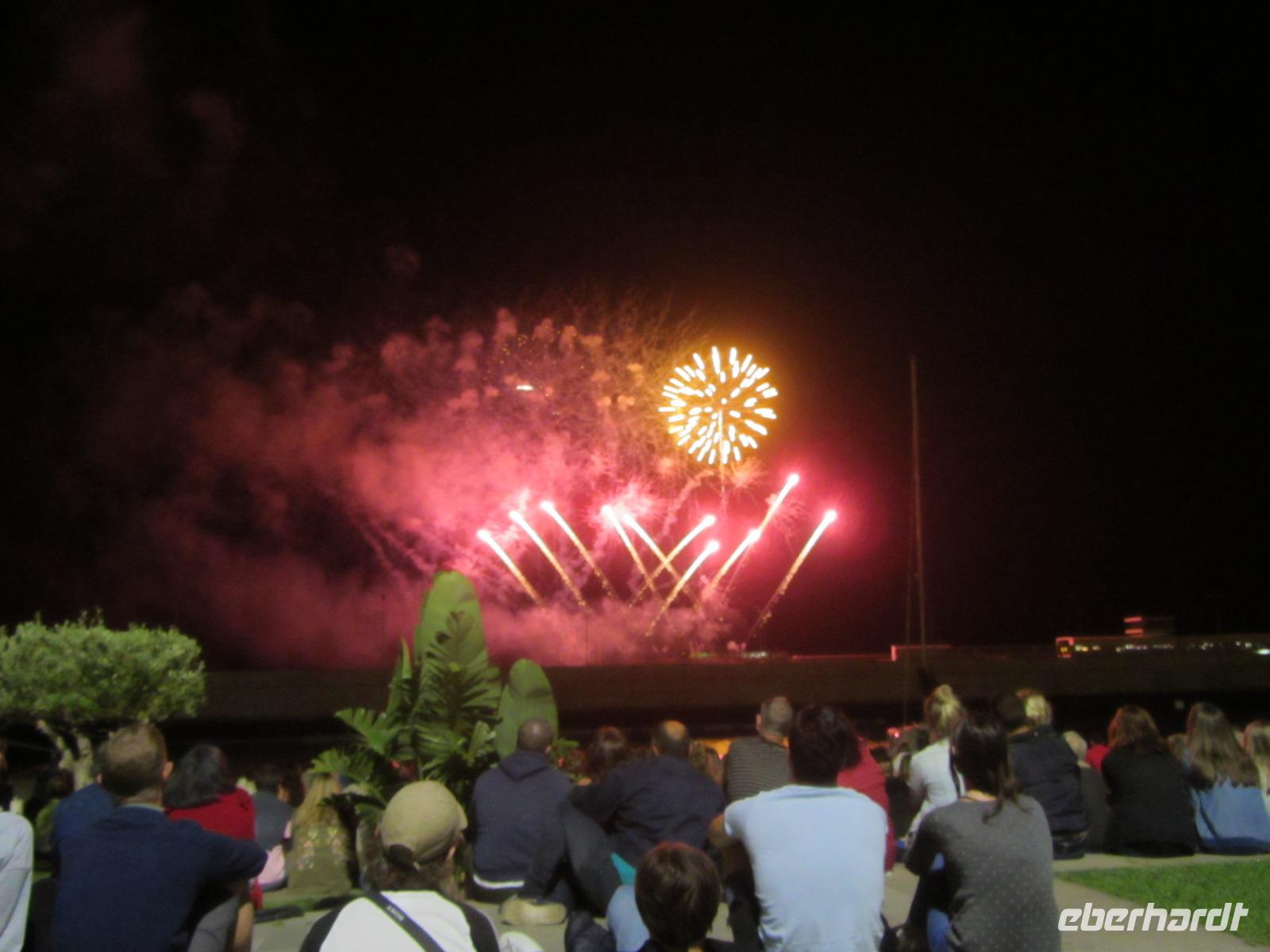 Doch unser Abend endet hier nach dem Essen noch nicht - spontan haben wir beschlossen, gemeinsam abends nach Funchal zu fahren, denn hier findet heute ein Spektakel statt. Das Festival de Atlantico - ein riesiges Feuerwerk mit musikalischer Untermalung. Wir setzen uns gemütlich direkt an den Hafen und bewundern das gigantische Feuerwerk bei einem Picknick mit madeirensischen Spezialitäten - Madeirawein und Lupinenkernen. Müde aber glücklich fahren wir zurück zum Hotel, das wir gegen 23:30 erreichen und fallen ins Bett!