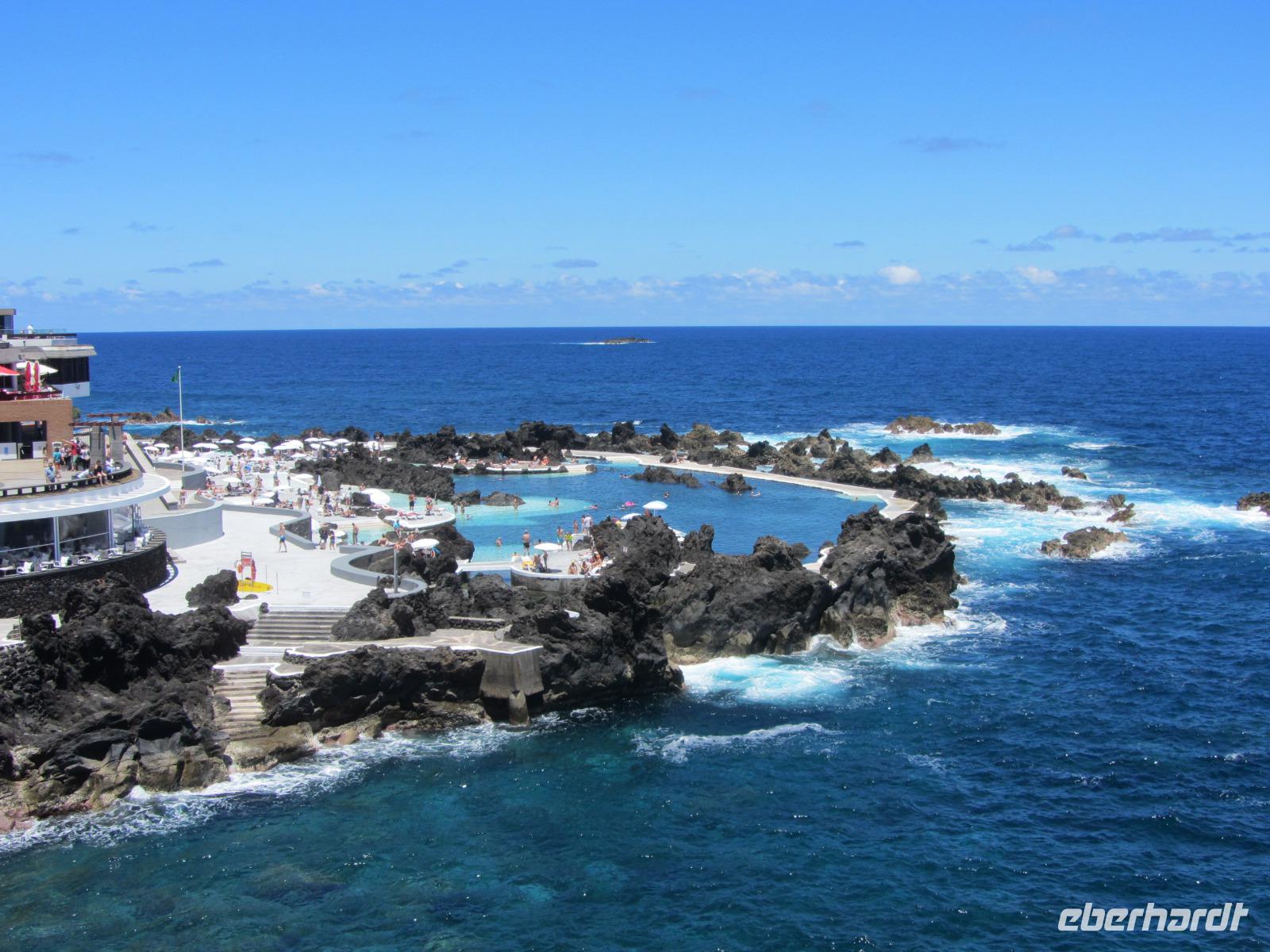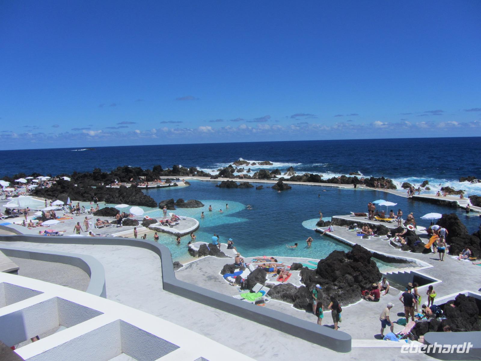 Wir fahren anschließend weiter in die Hochebene Paul da Serra auf ca. 1400m. Hier starten wir mit Ute zu einer leichten Wanderung entlang einer weiteren Levada, die uns durch die panoramische Berglandschaft führt und stärken uns anschließend erneut mit madeirensischem Honigkuchen - es schmeckt ein wenig wie Weihnachten im Sommer. Bei strahlendem Sonnenschein fahren wir weiter nach Porto Moniz, das berühmt ist für seine natürlichen Meerespools. Da wir hier eine Weile verweilen, nutzen einige Gäste die Chance, sich bei einem kühlen Bad in den Meerespools zu erfrischen. Aber auch die "Nicht-Wasserraten" kommen in Porto Moniz voll auf ihre Kosten, denn der Ort hat eine wunderschöne Promenade, von der aus man die schroffe Küstenlandschaft bewundern kann und in zahlreichen Cafes und Restaurants einkehren kann.
