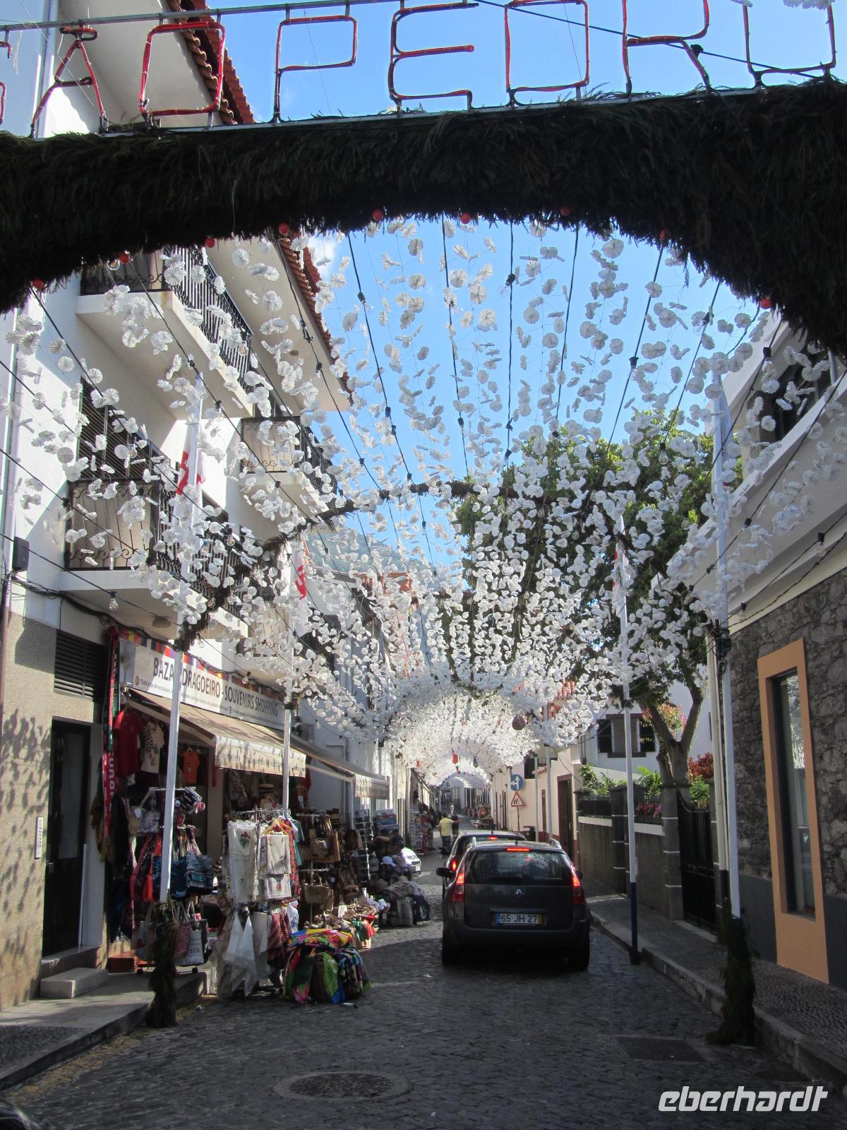 Nach der Wanderung setzen wir unsere Reise nach Santana fort. Der Ort ist berühmt für seine traditionellen, farbenfrohen mit Stroh gedeckten Häuser, in denen heutzutage viele madeirische Spezialitäten zum Verkauf angeboten werden. Wir nutzen die Chance und verbringen an diesem Ort eine entspannte Mittagspause - da in Santana heute Markt ist, haben wir u.a. eine große Auswahl von lokalem Obst von lokalen Händlern als Imbiss zur Auswahl.