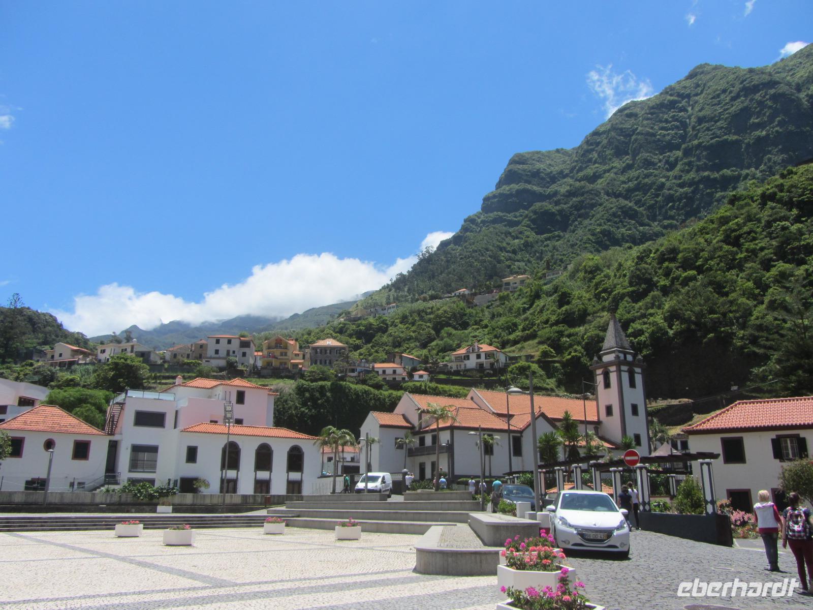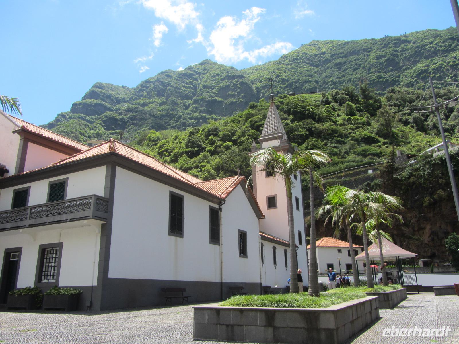Es ist so weit! Eine wunderschöne neigt sich langsam dem Ende und so brechen wir ein letztes Mal gemeinsam mit Ute morgens mit Ute auf, um Madeira zu erkunden. Unser heutiges Programm führt uns in den Westen der Insel, den wir zuvor noch nicht besucht hatten. Wir passieren Funchal, das wir heute jedoch links liegen lassen, und fahren weter bis in das kleine Küstenörtchen Ribeira Brava. Auch hier ist anlässlich der Feierlichkeiten um Sao Pedro der Orte feierlich und farbenfroh geschmückt. Bei einem kleinen Spaziergang erkunden wir den ort und sehen unter anderem einen kleinen Turm direkt an der Promenade. Der Turm hat eine faszinierende Geschichte: Heute dient er als Touristeninformation, früher war er jedoch ein Gefängnis - Fassungsvermögen: Ein Insasse!