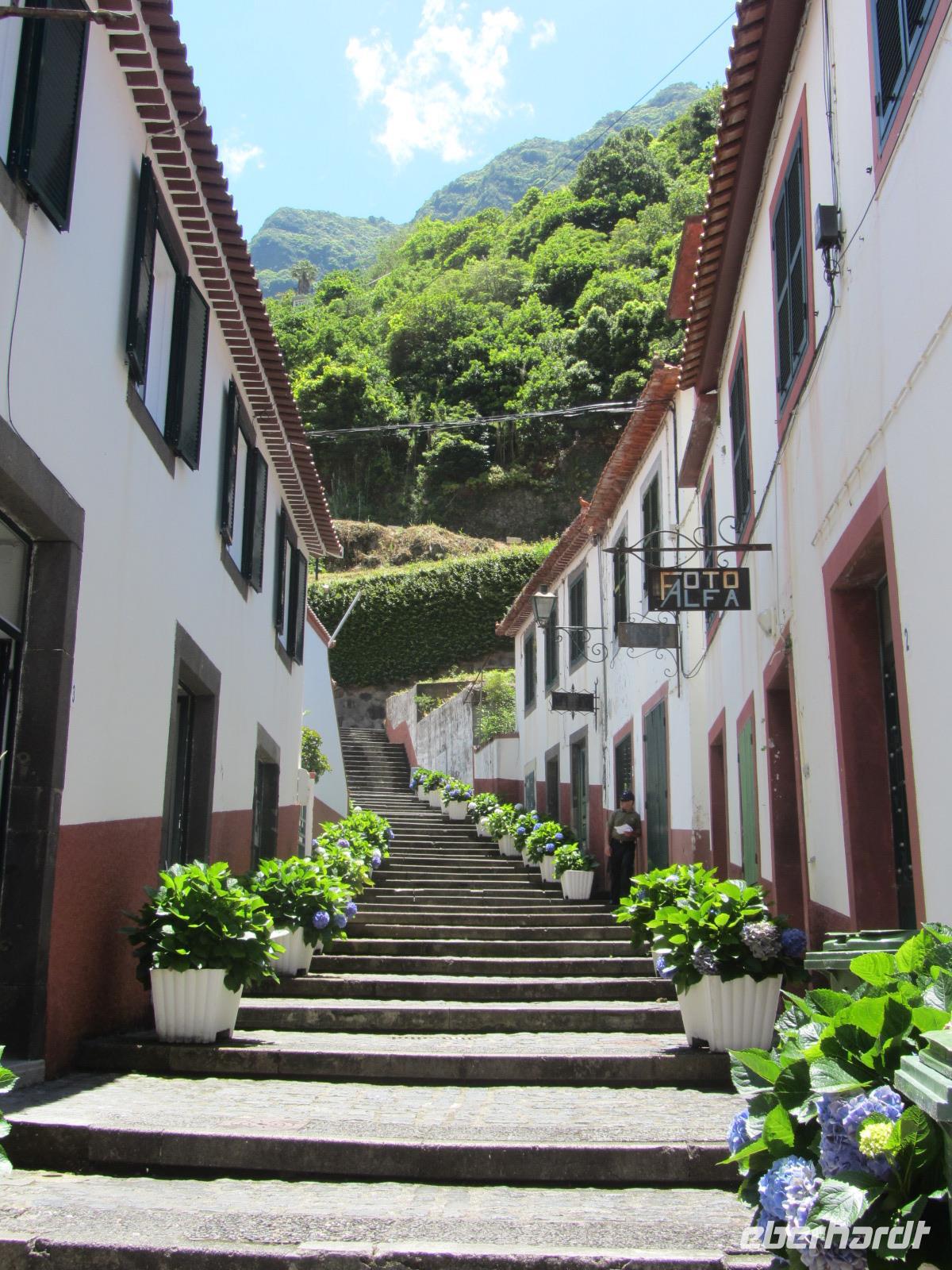 Nach diesem ausgiebigen Mittagsstop zeigt Ute uns einen weiteren idyllischen Ort Madeiras - Sao Vicente. Der kleine Ort mit seinen schmalen Gassen ist ideal für einen entspannten Bummel durch die Straßen, den auch wir begehen. Den Abschluss unseres heutigen Ausfluges bildet ein Stopp auf dem Encumeada-Pass - von dem aus man einen tollen Blick auf die umliegenden Berglandschaften der Insel hat. Am Nachmittag machen wir uns dann auf den Weg zurück zum Hotel und verabschieden uns von unserer fantastischen Reiseleiterin Ute und unserem hervorragenden Fahrer Nelson - danke für Alles!