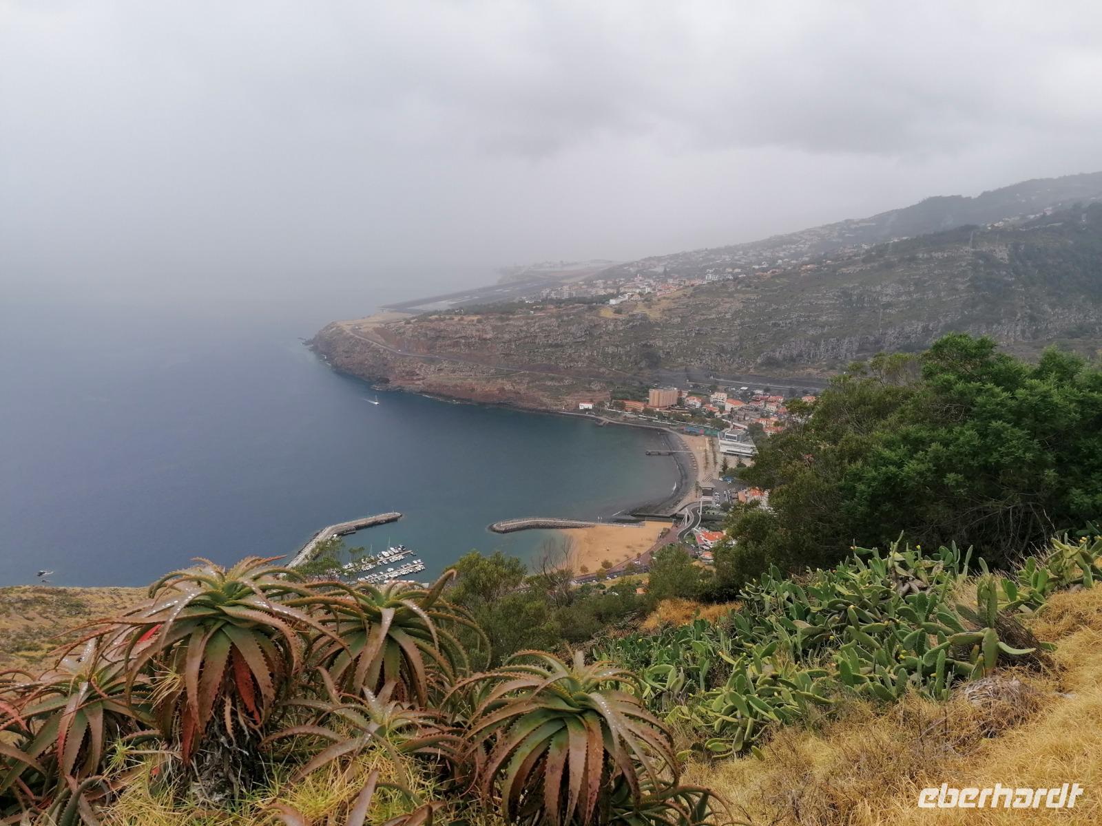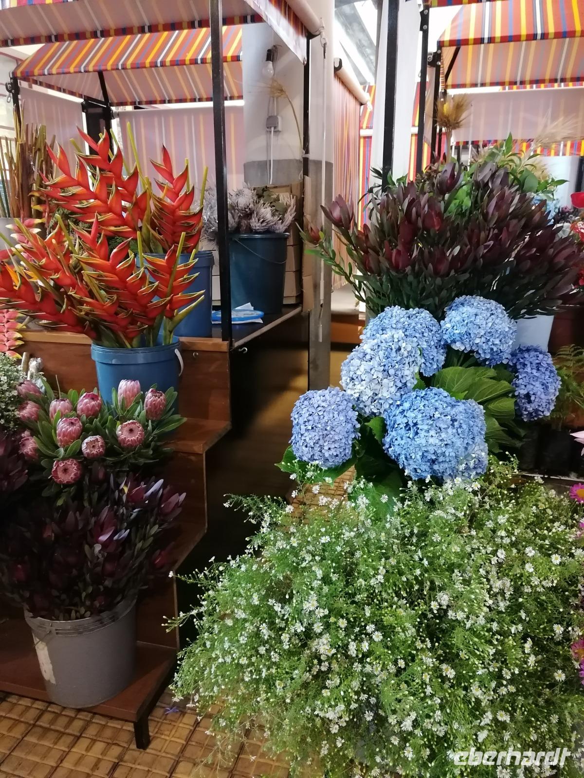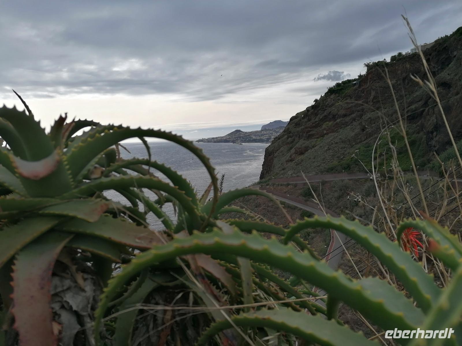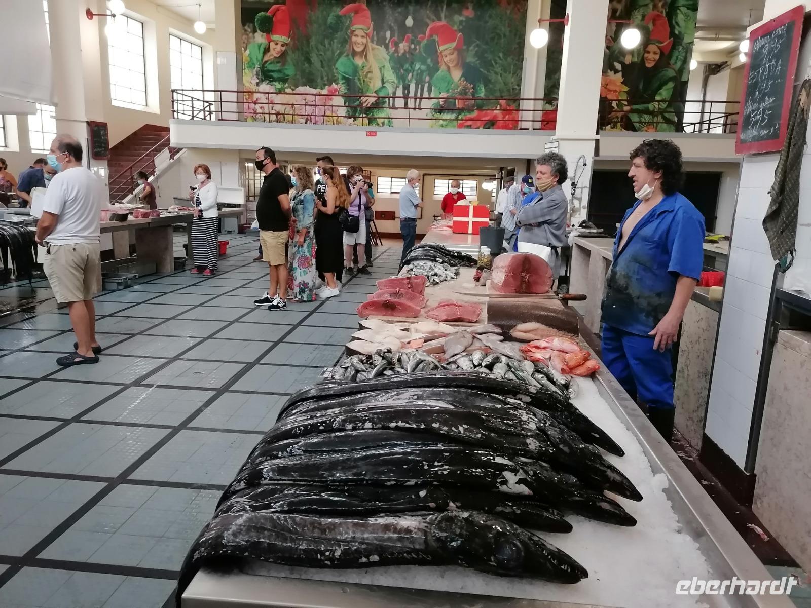 Am frühen Morgen erreichten uns die negativen Testergebnisse und unsere übrigen Reisegäste konnten in Ruhe mit uns frühstücken. Wir genossen das Frühstück a la carte und freuten uns über die Ruhe auf der Terrasse inmitten des Botanischen Garten des Hotels. Um 9 Uhr treffen wir uns dann mit unserer örtlichen Reiseleiterin Teresa. Gemeinsam fuhren wir zur Inselhauptstadt Funchal. An der berühmten Markthalle absolvierten wir unseren ersten Stopp. Mit Audioguides bewaffnet zogen wir in die Markthalle hinein. Donnerstags bis samstags ist der mittlere Teil des Wochenmarktes für Einheimische Obsthändler reserviert, so dass heute ein reges Treiben herrschte. Teresa zeigte uns viele außergewöhnliche heimische Blumen und frische exotische Früchte, die auf der Insel wachsen. Im hinteren Teil der Markthalle machten wir zum ersten Mal Bekanntschaft mit den berüchtigten schwarzen Degenfisch. Im Anschluss spazierten wir am ehemaligen Fort vorbei zur Blandy's wine Lodge. Im Museum des Weingutes erklärte uns Teresa eine Menge über die Herstellung des Madeira Weins und die Besonderheiten der bekanntesten Köstlichkeit der Insel. Nach der Führung durften wir selbstverständlich auch den Madeira Wein kosten, den es auch in den Geschmacksrichtungen süß, halbsüß, halbtrocken und trocken zu kaufen gab. Oberhalb des Stadtzentrums liegt der Botanische Garten von Funchal. Im Botanischen Garten Blüten allerlei einheimische Pflanzen wie die Strelitzie, Orchidee oder Protea. Im kleinen Restaurant essen wir eine Kleinigkeit und genossen den Ausblick über Funchal. Am Ende des Gartens erblickten wir noch einen Kakteen Garten und einen Palmengarten. Weiter führte uns unsere Route zum Capo Girao. Die Steilküste ist mit seinen 589 m, die höchste Steilklippe Europas. Auf einer durchsichtigen Plattform lernten wir die Höhe kennen und konnten einige Bilder schießen. Als letzten Tagespunkt wir nach Camara de Lobos. Das bezaubernde Städtchen zog bereits Winston Churchill in seinen Bann. Direkt am Wasser gelegen kann man die bunten Boote der Fischer entdecken, die sich teilweise auf den schwarzen Degenfisch spezialisiert haben. Zurück in Caniço legten wir erstmal unsere Füße hoch. Bevor wir zum Essen gingen, schlenderten wir durch den Botanischen Garten des Hotels und erhielten unser Begrüßungsgetränk mit einem Tag Verspätung. Unser Abendessen nahmen wir in Klenks Café in der Unterstadt ein. Hier konnten wir auch den schwarzen Degenfisch oder die weitere Köstlichkeit Madeiras, die Espetada Spieß probieren. Wohl bekomms!