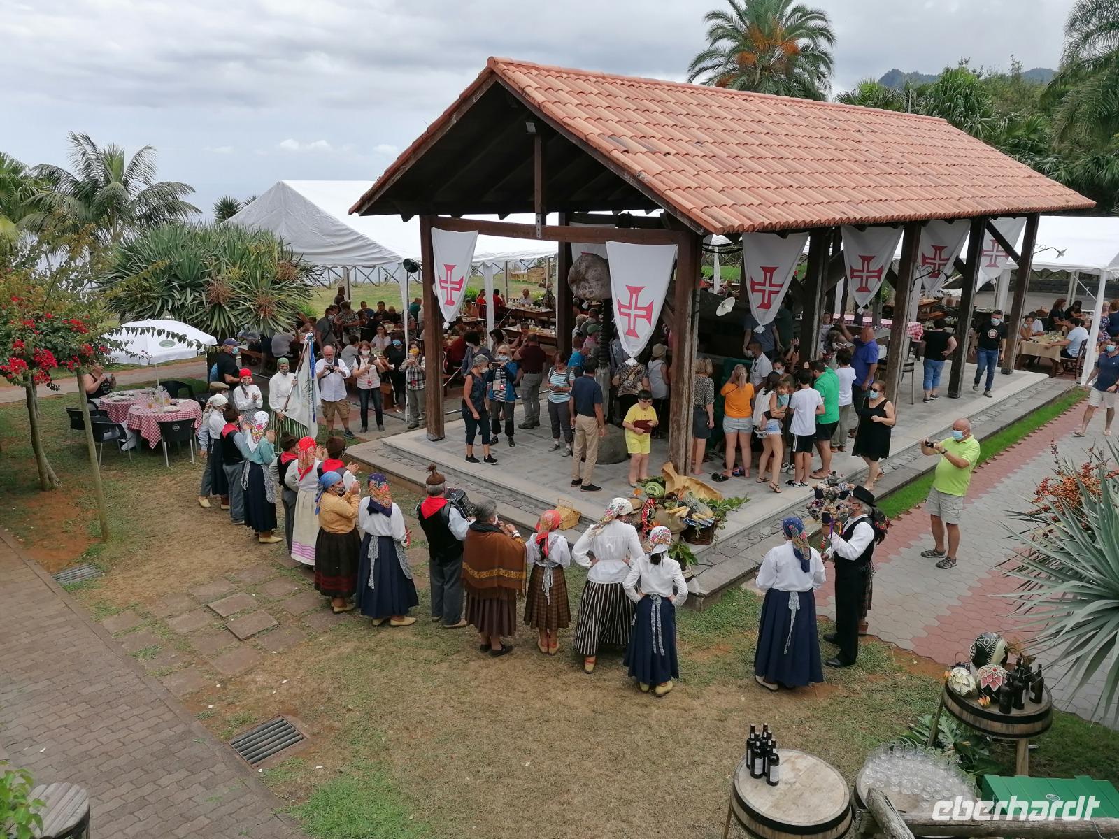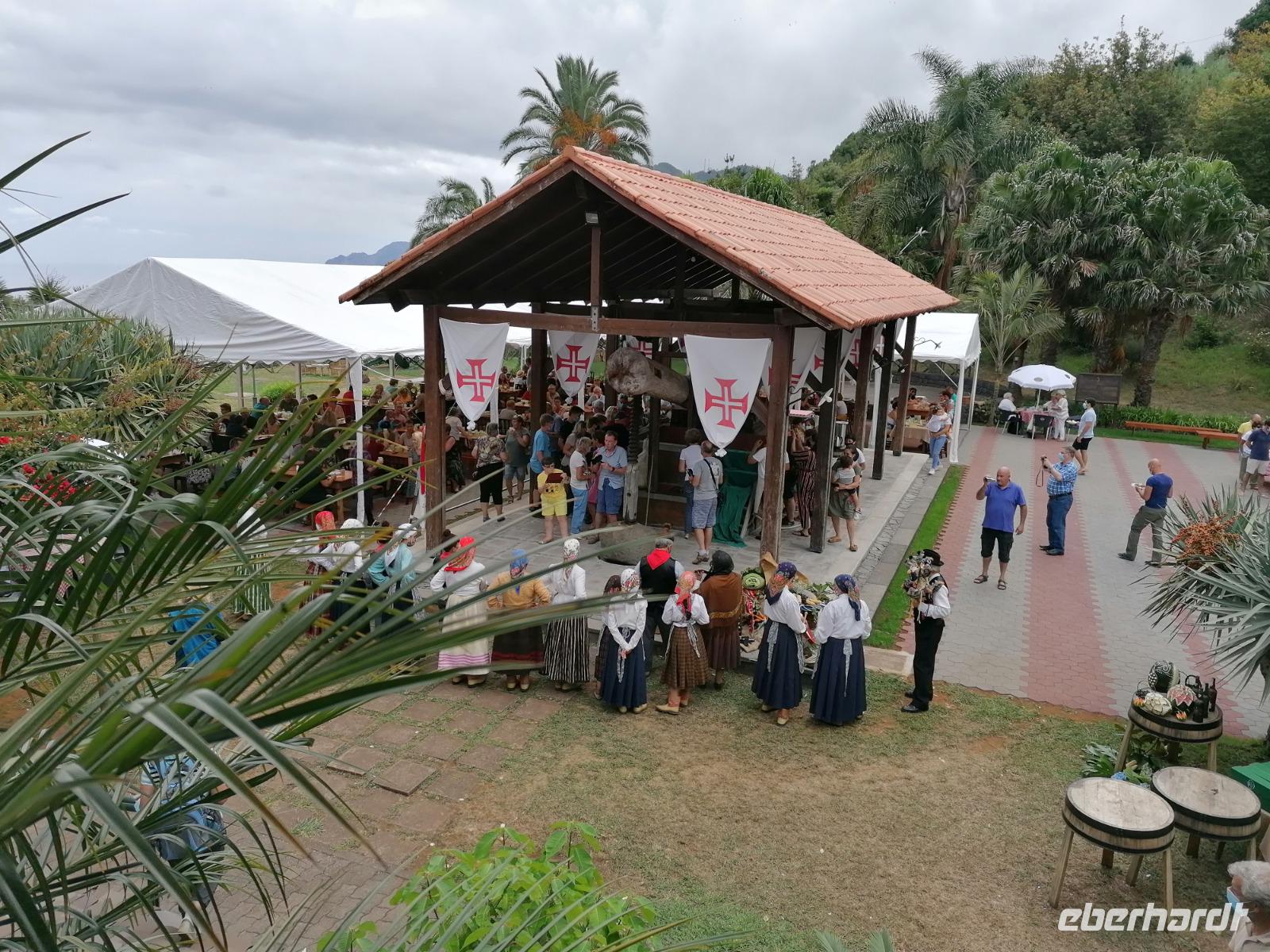 Auch der heutige Tag begann mit einem ausführlichen Frühstück auf der sonnigen Terrasse. Unsere Route führte uns heute in Richtung Osten der Insel. Als erstes stand Camacha auf unserer Agenda. Camacha gilt als das Zentrum der Korbflechterei Madeiras. In einer kleinen Garage erhielten wir einen schönen Einblick über die Kunst der Korbflechterei. Leider waren unsere Koffer zu klein und wir konnten keinen hübschen Korbsessel mitnehmen. Im Anschluss fuhren wir in Richtung Ribero Frio. Neben seiner Levada ist das Dorf bekannt für seine Forellenzucht. Nachdem wir die Forellenzucht besichtigt hatten, stand die erste Levada Wanderung auf unserem Programm. Eine Levada ist ein künstlich angelegter Wasserweg, der von der Hochebene der Insel bis in die Küstenregionen führt. Es wird vermutet, dass insgesamt über 1000 km an Levada die Insel überqueren. Die Levada Furado ist eine kleinere Levada, die die uns durch Mischwald mit einer üppigen Vegetation führt. Unter anderem konnten wir Eukalyptusbäume und weitere Baumarten entdecken. Die Levada führt uns zum Aussichtspunkt Balcoes, der Balkon der hoch über dem Tal im Osten der Insel thront. Da wir den zweiten Samstag im September hatten, war heute ein besonderer Tag, denn heute wird der Wein geehrt. Das Weinfest findet vor allem den Regionen um Santana statt. Auch wir stoppten beim Weinfest. Hier konnten wir einen schönen Eindruck gewinnen, Trauben trampeln oder einfach das Fest und den Wein genießen. Besonders hatten es uns die Folklore Tänzer mit ihrem wunderbaren Trachten angetan. Nach dem Weinfest hier sind wir noch mal in Santana. Das Dorf ist bekannt für seine bunten Madeira Häuser, die im Stadtzentrum stehen und für Besucher zugänglich sind. Im Anschluss konnten wir uns nochmal auf einer Levada Wanderung die Beine vertreten. Aufgrund des schlechten Wetters spazierten wir nicht auf der Hochebene, sondern eine Etage tiefer, entlang der Leveda Queimadas. Nach dem Aufenthalt im Santana fuhren wir weiter nach Machico. Leider machte uns das Wetter einen Strich durch die Rechnung, aber wir genossen den Ausblick über die Ostküste bis hin zum Flughafen. Spät erreichten wir unser Hotel, sodass wir beschlossen in der näheren Umgebung zu Speisen. Im Restaurant Terraca wurden wir köstlich bekocht und empfangen, sodass wir daraufhin beschlossen, dass wir uns noch mal wiedersehen.