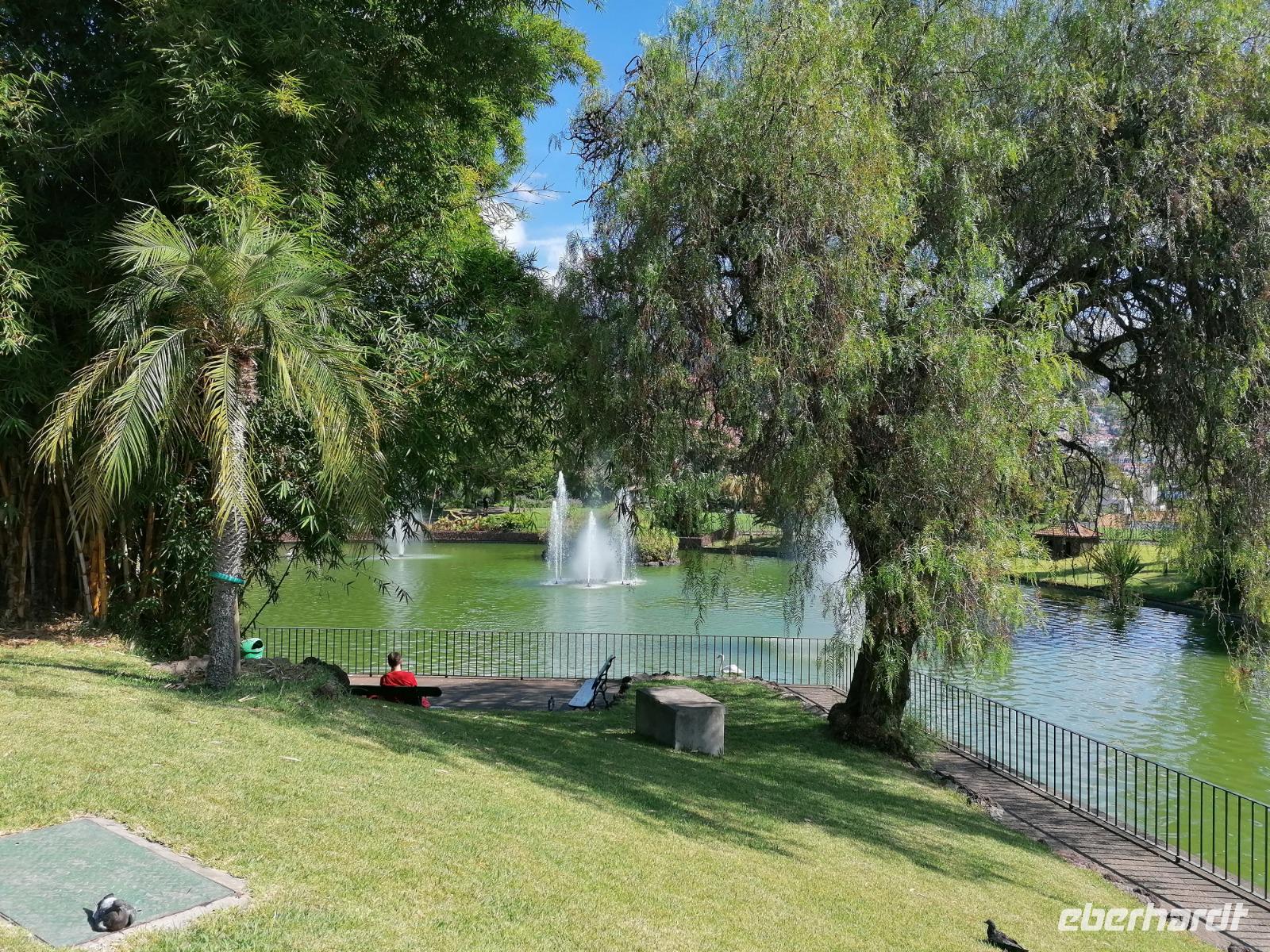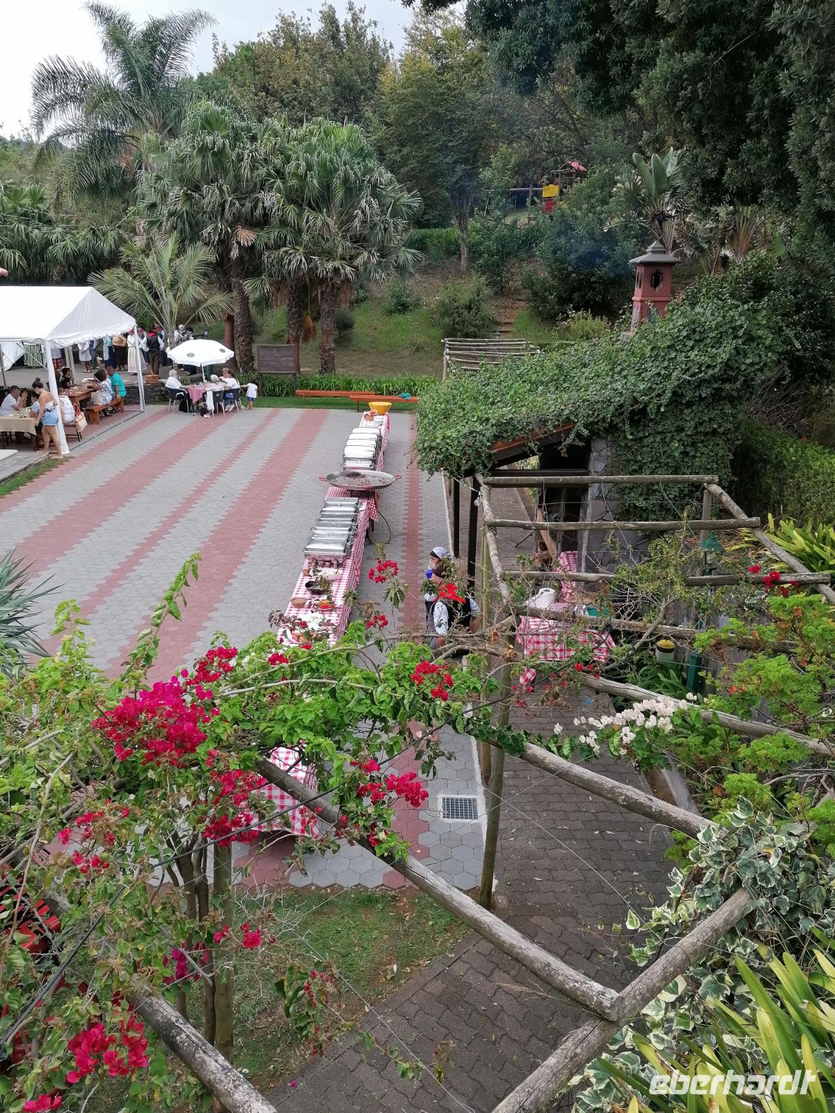 Der heutige Tag stand ganz im Zeichen der wunderschönen Gärten Madeiras. Nach dem Frühstück brachen wir auf um den Blandys Garten, der auch Palheiro Gardens genannt, zu besichtigen. Die ca. 200 alten Gärten der Familie Blandy zeichnen sich durch völlig unterschiedliche Stilrichtungen und Pflanzenarten aus. Das Areal wird durch unzähligen Gärtner gehegt und gepflegt. Unsere Reiseleiterin Teresa erklärte uns ausführlich die einzelnen Blumen und Pflanzenarten. Am unteren Ende des Gartens konnte man zudem den bekanntesten Golfplatz Madeiras sehen, der direkt an den Garten angrenzt. Einige Golfer nutzen auch die Gelegenheit und übernachten im Landhaus der Familie Blandy. Leider war aufgrund von Corona das Teehaus des Anwesens geschlossen. Wir sind fasziniert von dieser Gartenanlage mit der barocken Kapelle und das prächtige Herrenhaus aus dem 18.Jahrhundert und gehen an üppigen Büschen, Seerosenbecken, exotischen Blumen und mächtigen Farnen entlang. Nach der ausgiebigen Besichtigung ging es weiter zur Stadtgarten Santa Catarina. Doch zunächst konnten wir erstmal die Statue von Sissi begutachten. Der Stadtpark Santa Catarina liegt idyllisch am Hafen der Hauptstadt und hat eine Gesamtfläche von 36.000 Quadratmetern. Wir schlenderten durch den unteren Teil des Gartens und sahen schön angelegte Blumenbeete, Grünflächen, ein Café, viele Schatten spendende Bäume, fantastische Aussichten auf die Bucht von Funchal. Im Anschluss blieb ein Großteil der Gruppe in Funchal und nutzte die Zeit zum Bummeln. Ein paar wagemutige Gäste testeten auch die Seilbahn und fuhren hinauf nach Monte. Mit dem öffentlichen Bus ging es dann wieder zurück nach Canico, wo wir abends im bereits bekannten Restaurant Terecca zu Abend aßen.