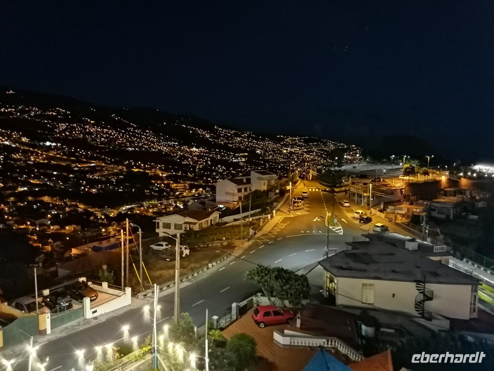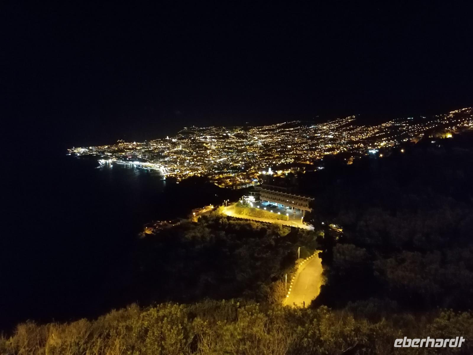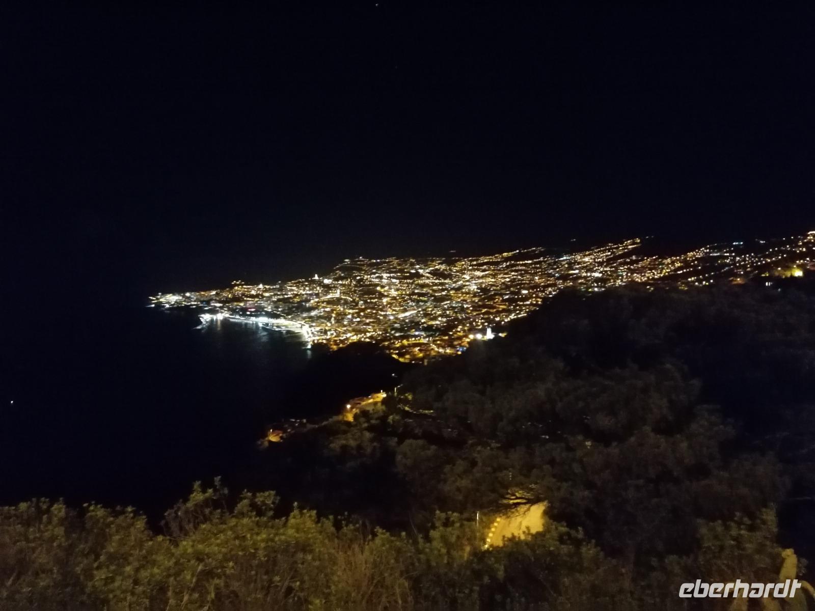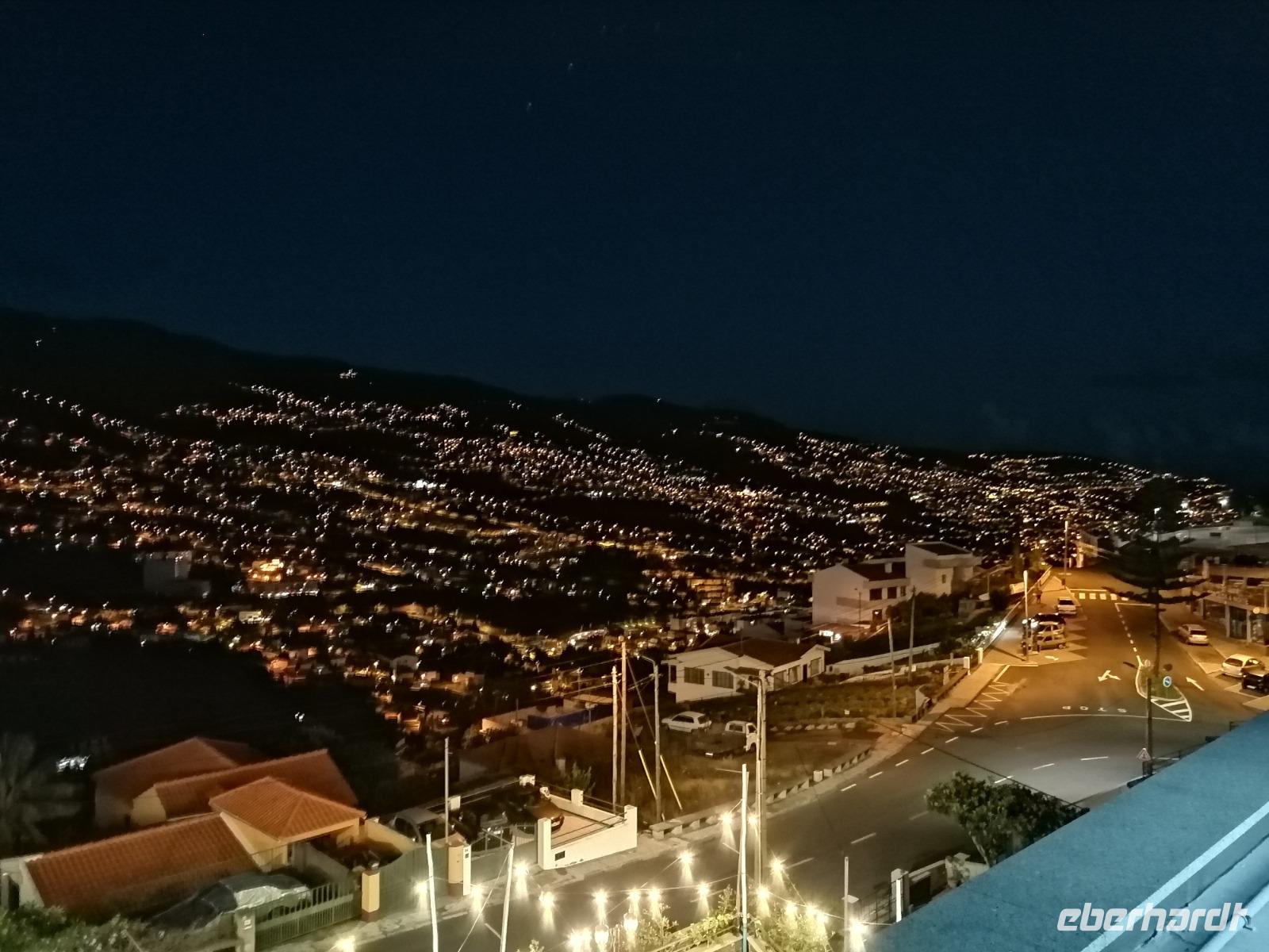 Heute stand nach dem Frühstück eine fakultative Wanderung entlang der Levada von Marocos auf dem Programm. Bei herrlichem Wetter wollten alle Gäste dabei sein und als Belohnung dürften wir sogar länger frühstücken als sonst. Die Levada von Marocos liegt im Osten der Insel. Oberhalb von Machico startete unsere Wanderung. Wir schlenderten entlang der Leveda und durchliefen kleine Ortschaften, wanderten entlang vieler Felder und bestaunten den wundervollen Ausblick. Immer wieder machten wir einen kurzen Halt und Teresa erklärte uns die heimische Pflanzenwelt. Wieder wurden wir von der zahlreichen Vielfalt überrascht und kamen aus unserem Staunen nicht herraus. Neben der heimischen Pflanzenwelt lernten wir auch Ziegen, Salamander und Hunde kennen. Ansonsten war es eine sehr erholsame Wanderung, bei der wir wenige Menschen trafen. Immer im Blick hatten wir den wunderschönen Ausblick auf Machico und die Ostküste der Insel. Nach 7 schönen Kilometer erreichten wir eine kleine Bar. Hier konnten wir uns mit Eis und kühlen Getränken stärken, denn die Sonne strahlte heute mit uns um die Wette. Umberto erwartete uns bereits und fuhr uns zurück nach Canico. Die Wanderung eröffnete uns wieder einmal einen neuen Einblick der Insel und wir konnten die nächsten Tage kaum noch abwarten. Den Nachmittag hatten wir heute zur freien Verfügung. Wir entspannten am Pool, lasen Bücher und genossen die Vorteile unserer Hotelanlage. Am Abend wurden wir wieder von Umberto abgeholt. Unser Ziel war ein gemütliches Restaurant oberhalb von Funchal. Hier durften wir die leckeren Fleischspieße von Madeira - auch Espetata genannt probieren und den Abend mit einem Wein ausklingen lassen. Von der Dachterrasse des Restaurants konnten wir nach dem Abendessen die Inselhauptstadt bei Nacht bestaunen. Auf dem Weg zurück zum Hotel ermöglichte uns Umberto einen weiteren Stopp, wo wir die Stadt von einem anderen Blickwinkel fotografieren konnten.