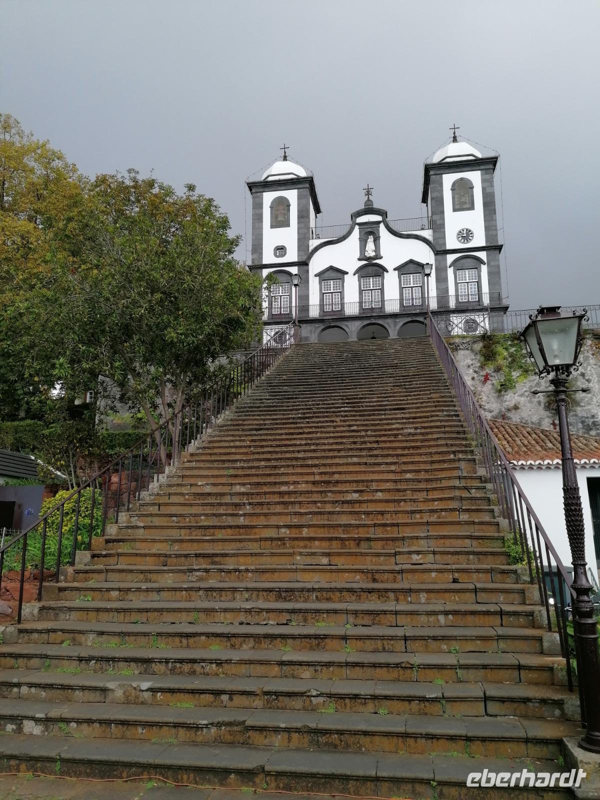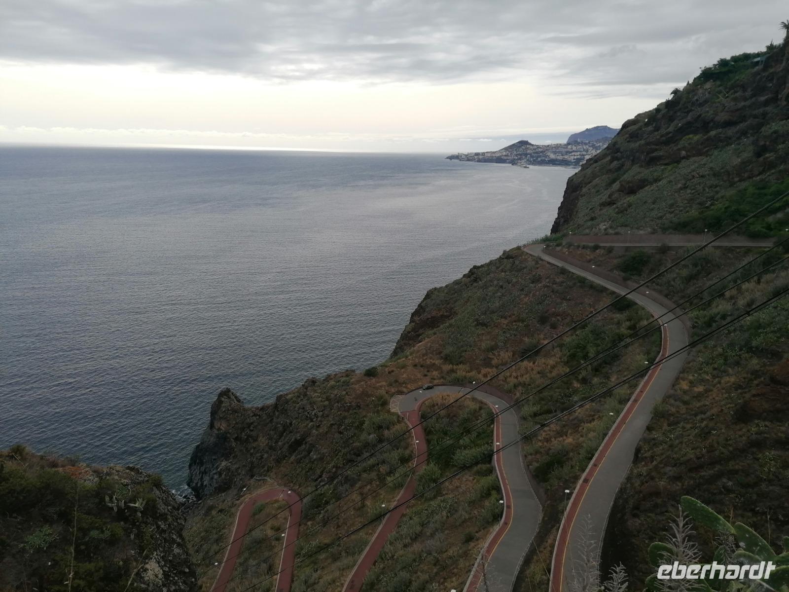 "Wer das Nonnental nicht gesehen hat, hat Madeira nicht gesehen", behaupten einige Stimmen. Das wollten wir nicht auf uns sitzen lassen und starteten in Richtung Westen der Insel. Unseren ersten Stopp machten wir am Aussichtspunkt Miradoura Pico do Barcelos. Von hier aus hatten wir nochmals einen großartigen Blick auf Funchal, was in einem Kessel gelegen uns zu Füßen lag. Doch wir wollten selbstverständlich noch mehr erleben und führten unsere Tagestour fort. Vorbei an Funchal führte uns die Route bis die Straße immer kleiner wurde und uns schließlich immer mehr in Richtung Hochebene brachte. Am Eira do Serrado hielten wir endlich an. Neben dem Hotel und Souvenirshop führte uns ein kleiner Wanderweg zum Aussichtspunkt Eira do Serrado. Der Aussichtspunkt liegt 1.050 m über dem Meeresspiegel und bieten einen atemberaubenden Ausblick ins Nonnental - auch Curral das Freiras genannt. Im Nonnental versteckten sich im 15. Jahrhundert Nonnen, Hirten und Sklaven vor den französischen Piraten und so entstand der Name des Tals. Im Anschluss hatten wir noch genügend Zeit, um ein leckeres Eis zu essen oder Souvenirs für Zuhause zu besorgen. Unser nächstes Ziel war Monte. Über 171 Treppen erreichen 550 Meter über Funchal den Wallfahrtsort Monte. Ein schöner Ort umgab von Gärten und herrschaftlichen Villen. Wir besuchen die Kirche von 1897 in der Kaiser Karl II. die letzten Monate seines Lebens verbrachte beigesetzt wurde. Teresa erzählte uns, dass die Pilger auf den Knien die 74 Treppenstufen zur Kirche hinauf rutschen. Wir bevorzugten aber eine andere Methode. Einige Gäste wagten die Fahrt mit dem berühmten Korbschlitten ins Tal, während andere den alt bekannten Bus nahmen. Nachdem alle wieder an Bord waren, fuhren wir zur Maria Joao. Maria hat einen kleinen Garten in Funchal und stellt selber Schokolade her. Wir probierten die süße Sünde und kombinierten sie mit Madeira Wein oder Likör. Eine schöne, aber kalorienreiche Mittagspause. Im Anschluss wollten wir selbstverständlich noch die Schokolade abtrainieren.