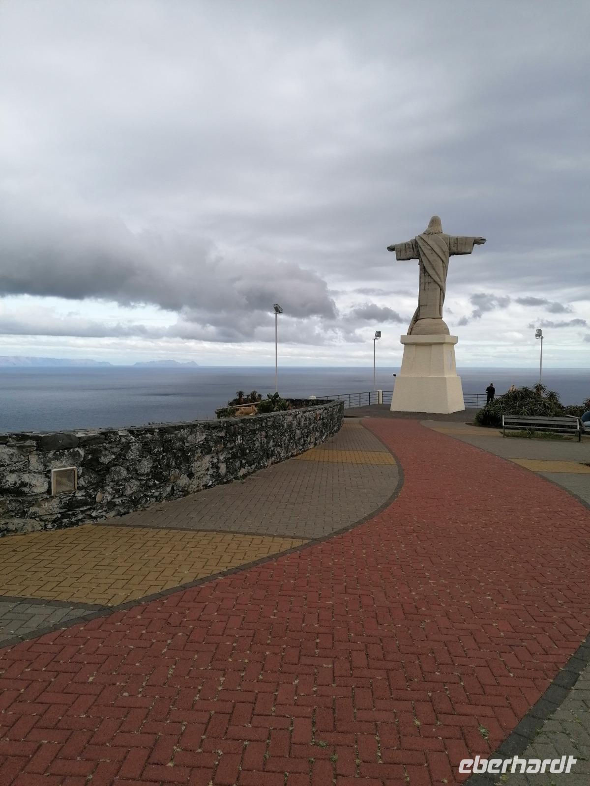 Am heutigen Tag stand der Ausflug in den Nordwesten Madeiras auf dem Programm. Viele der Gäste entschlossen sich an den Ausflug teilzunehmen. Wir fuhren entlang der Südküste bis nach Ribeira Brava. Ribeira Brava ist das kulturelle Zentrum des Westens. Hier spazierten wir durch die Stadt. An der Kirche Igreja Matriz de Sao Bento machten wir einen Halt und konnten anschließend beim hiesigen Bäcker die leckeren Törtchen Pasteis de Nata probieren. Weiter führte uns der Weg über den Encumeada-Pass (1007 m) und über die Hochebene Paul da Serra (1500 m). Leider zog hier das Wetter sehr zu und wir konnten unsere ursprünglich geplante Wanderung im Nebel nicht durchführen. Ein paar Kilometer weiter strahlte uns die Sonne oberhalb des tiefstehenden Nebels an. Auch die Landschaft änderte sich wieder vollständig. Auf der Hochebene genossen wir einen schönen Rundumblick auf die immergrüne Berg- und Tallandschaft. Gegen Mittag erreichten wir die Nordseite der Insel im strömenden Regen. Auch unsere Wanderalternative fiel somit ins Wasser. Unsere Laune wurde dadurch nicht getrübt. Zur Mittagszeit erreichten wir die malerische Fischerdorf Porto Moniz. Hier bekam die Gruppe genügend Zeit zur freien Verfügung. Doch zunächst wärmten wir uns mit einer leckeren Suppe. Porto Moniz ist bekannt für seine natürlichen Meeresschwimmbecken im Vulkangestein. Natürlich durfte auch hier ein Besuch nicht fehlen. Einige mutige schwammen wir durch die schwarzen Lava-Grotten. Wiederum andere nutzten die Freizeit und bestaunten wie die unberechenbare Naturgewalt des Meeres auf die schroffen Felsen der Küste trifft. Wir spazierten entlang der Promenade und ließen die Naturgewalt auf uns herein prasseln. Am Nachmittag fuhren wir entlang der Nordküste zurück. Auf unserem weiteren Weg sahen wir auch den stürmischen Wasserfall - den Brautschleier. Als letzten Programmpunkt der Reise zeigt uns Teresa die Statue Cristo Rei in Garajau. Die bereits 1927 erbaute Jesus-Statue steht an der Südküste und wacht über die Blumeninsel. Am Abend ließen wir die Reise bei einem gemeinsamen Abendessen im Hotel Revue passieren und freuten uns über die schöne Zeit, die wir miteinander verbringen konnten.