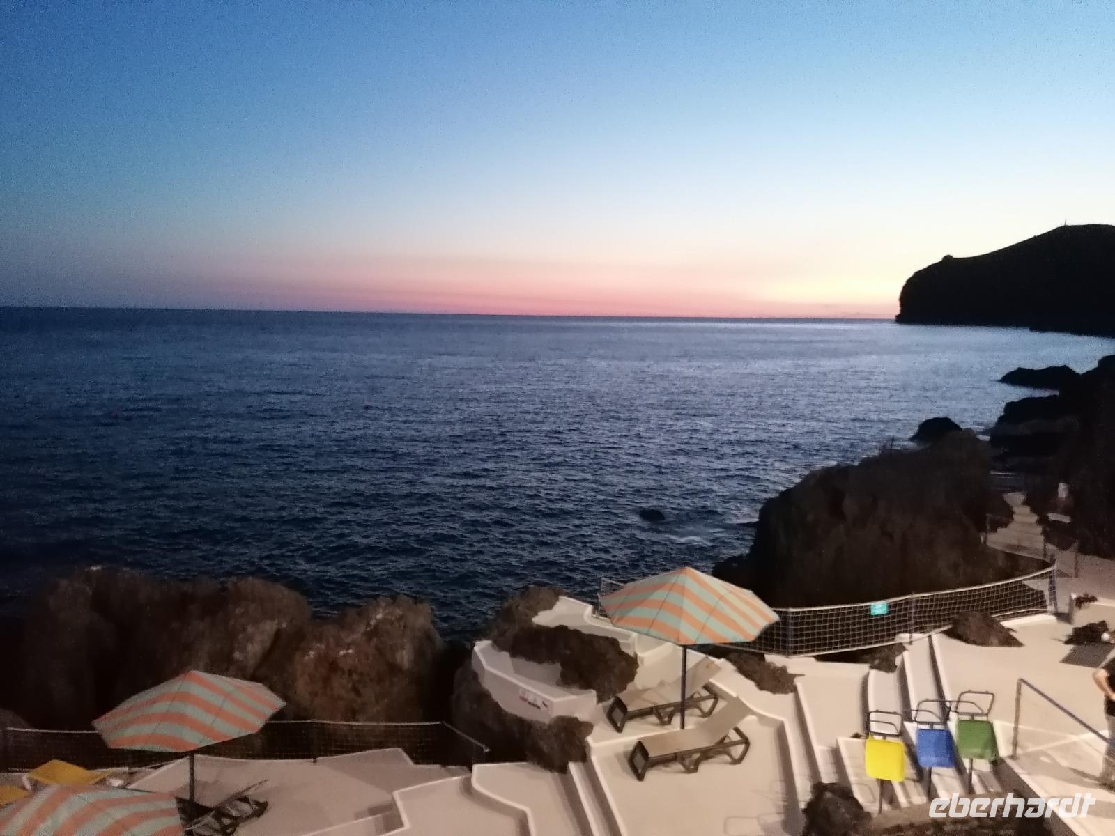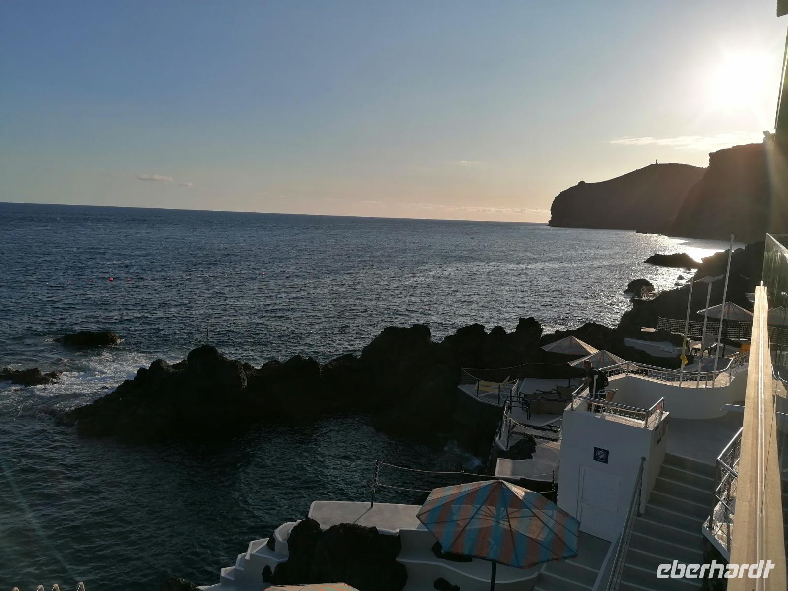 Teresa hat für uns heute die Wanderung entlang der Levada da Serra Faial herausgesucht. Die Strecke führte uns auf einem breiten Weg entlang einer ursprünglichen Levada (aus Stein, Holz oder einfach in die Erde gegraben). Die Ruhe und Landschaft gefallen uns super, denn der breite Weg geht durch einen Urwald und später durch ein kleines Dörfchen. Nach der Wanderung ging es zurück ins Hotel. Am Abend hieß es allerdings nochmal Wanderschuhe an, denn wir hatten unser Abendessen direkt am Meer im Hotel Atlantis. Hier probierten wir erneut den schwarzen Degenfisch und genossen das Ambiente direkt am Wasser.