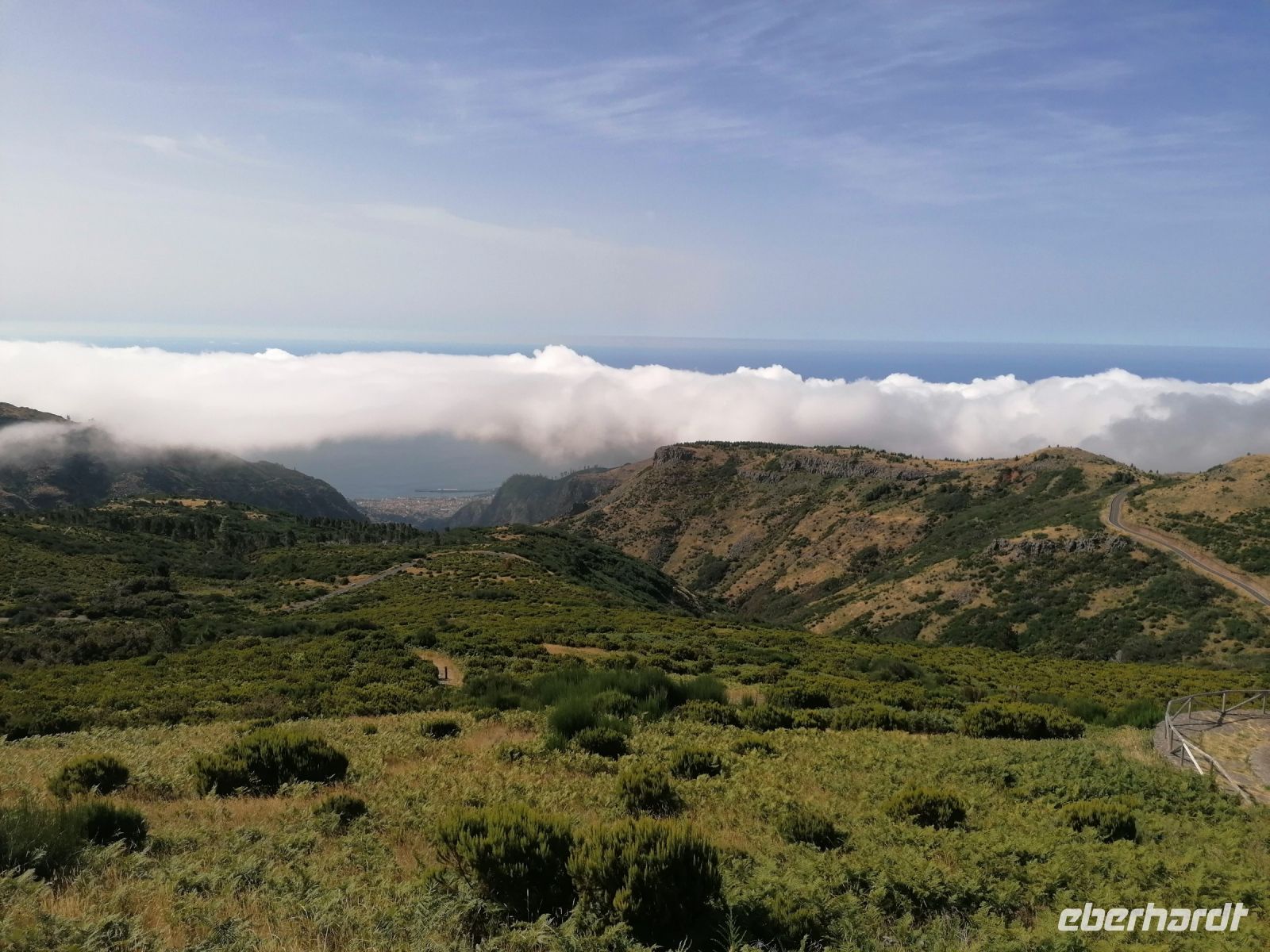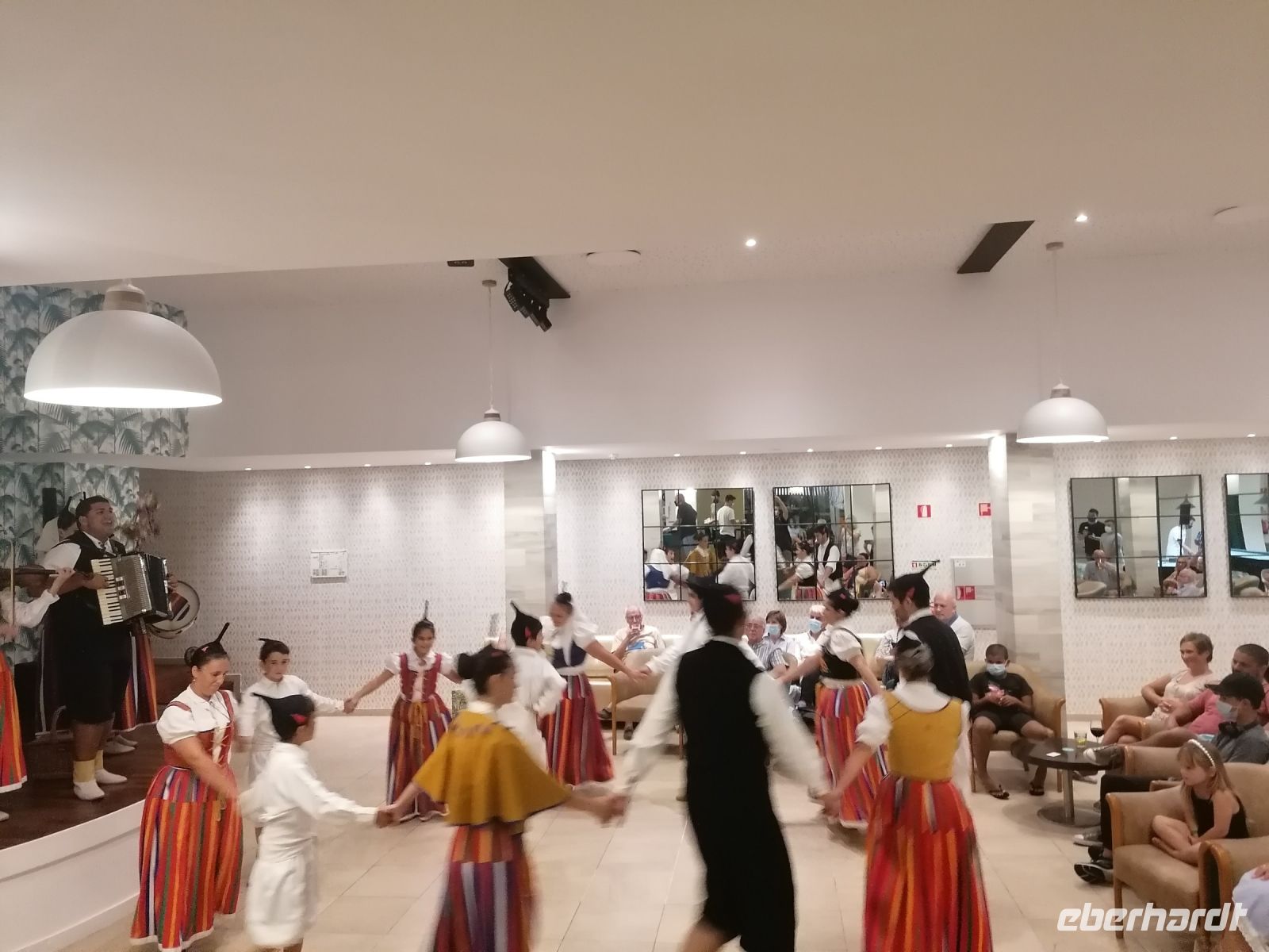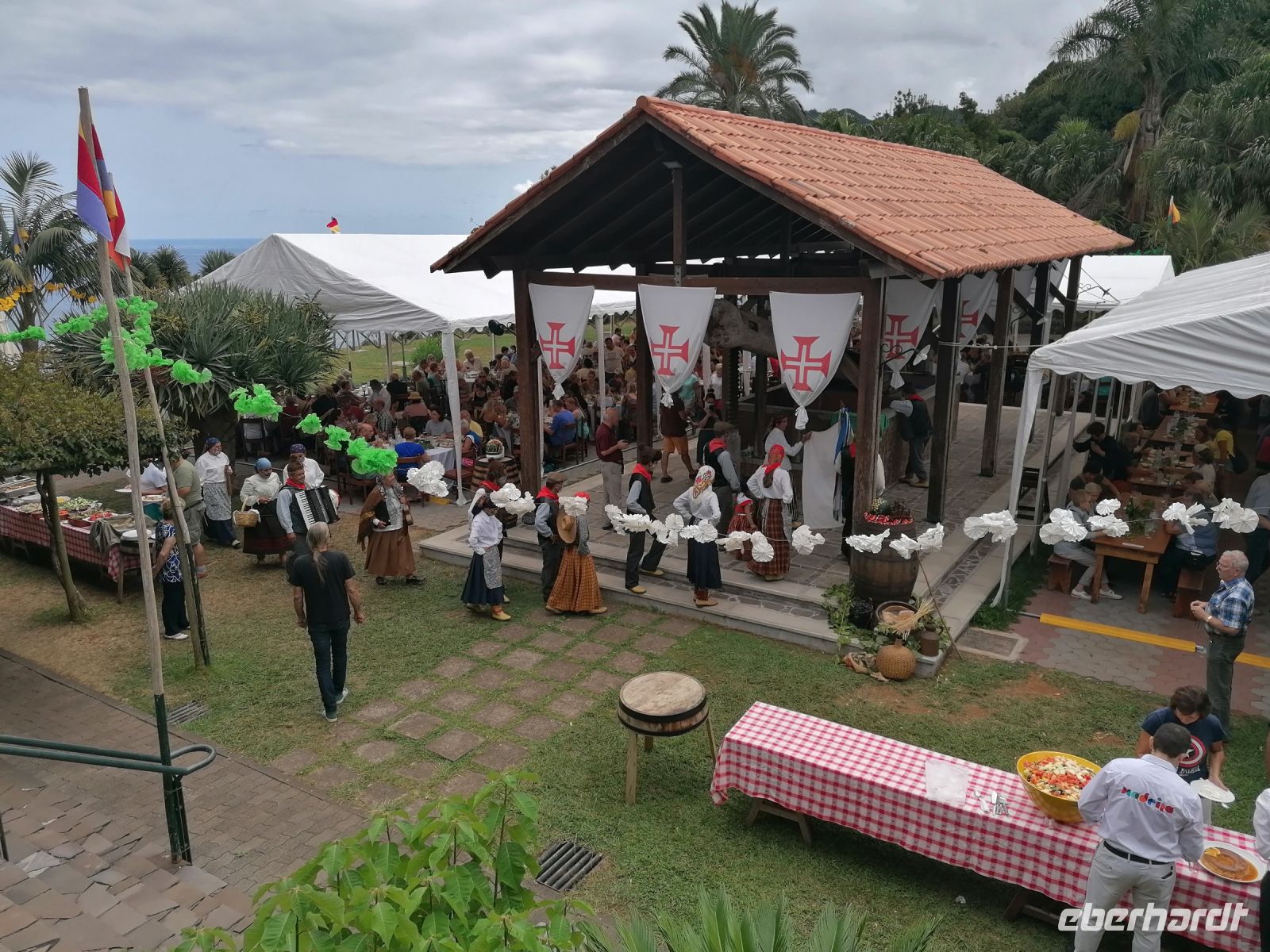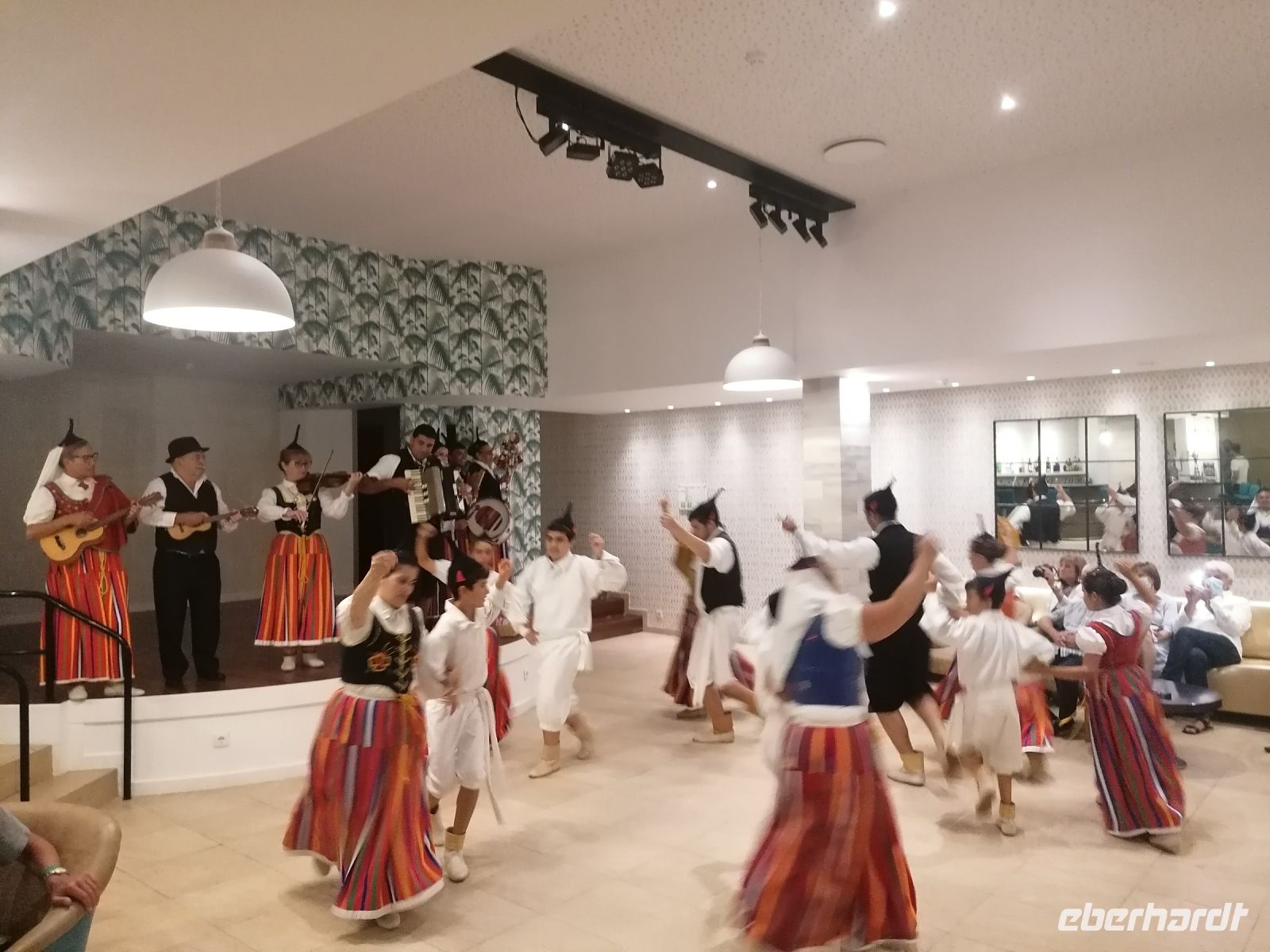 Wir starteten unser erstes gemeinsames Frühstück auf der Terrasse am Hotelpool. Neben warmen Speisen gab es auch leckeres Baguette und frisches Obst. So lässt es sich doch gemütlich und schön in den Tag starten. Nach dem Frühstück starten wir gemeinsam mit Claudio in Richtung Camacha. Camacha wird auch als das Zentrum der Korbflechterei bezeichnet. Unser erster Stopp erfolgte in einer privaten Garage, wo viele Probenstücke der Korbflechterei ausgestellt wurde. Wie immer, war leider unser Koffer zu klein, um die schönen Kunststücke mitzunehmen. Im Anschluss führte uns Claudio zum Aussichtspunkt des Pico do Arieiros. Der Berg ist mit seinen 1818 Meter der drittgrößte Berg der Insel und über den Poiso-Pass erreichbar. Hier oben erlebten wir einen wunderschönen Ausblick auf die Bergwelt Madeiras und konnten in der Ferne sogar die Nachbarinsel Porto Santo erkennen. Nach dem traumhaften Erlebnis oberhalb der Wolkengrenze, fuhren wir zurück ins Tal die kalten Flusses - Ribeiro Frio. Hier gibt es nicht nur eine Forellenzucht zu besichtigen, sondern es stand auch unsere erste kleine Wanderung zum Aussichtspunkt Balcoes auf dem Programm. Auch hier wurden wir wieder mit einer tollen Aussicht belohnt. Im Dorf gab es noch einen Poncha oder Expresso als Stärkung und wir fuhren in Richtung Santana. Santana ist bekannt für seine bunten Madeira-Häuser, die im Stadtzentrum zu finden sind. Einige Bilder später verließen wir auch schon wieder Santana und fuhren zur Quinta do Fruao. Hier findet jährlich das berühmte Weinfest statt. Gemeinsam mit unseren Gästen könnten wir Trauben trampeln und somit selbst Wein produzieren. Besonders die Folklore Tänzer mit ihren wunderbaren Trachten waren immer wieder ein schönes Fotomotiv für unsere Gruppe. Nach dem Weinfest wollten wir noch etwas raus in die einsame Natur. Bei einer Wanderung entlang der Levada do Castelejo könnten wir nochmal den Ausblick auf die Westküste genießen und eine schöne Levada-Wanderung absolvieren. Als letzter Tagespunkt stand nach das Fischerörtchen Machico auf der Agenda. Vom Aussichtspunkt Pico do Facho bestaunten wir die Landebahn des Flughafens und könnten den goldgelben Strand von Machico entdecken. Am Abend ließen wir den langen Tag bei einem Abendessen im örtlichen Restaurant Villa Ventura ausklingen.