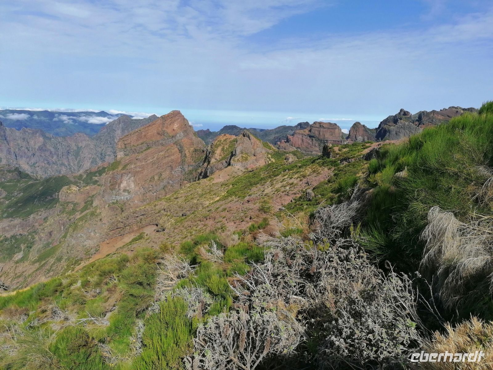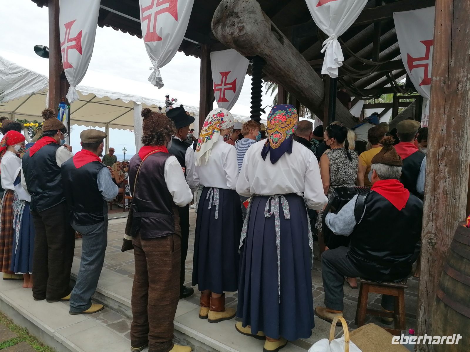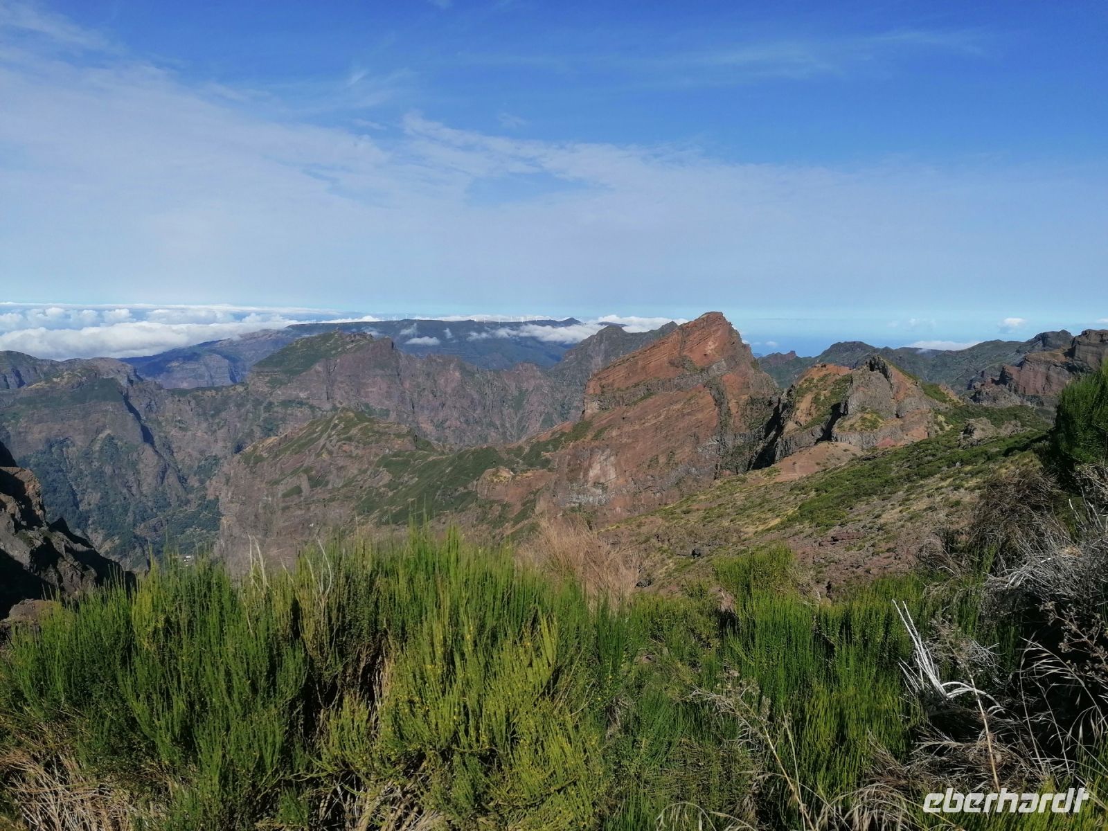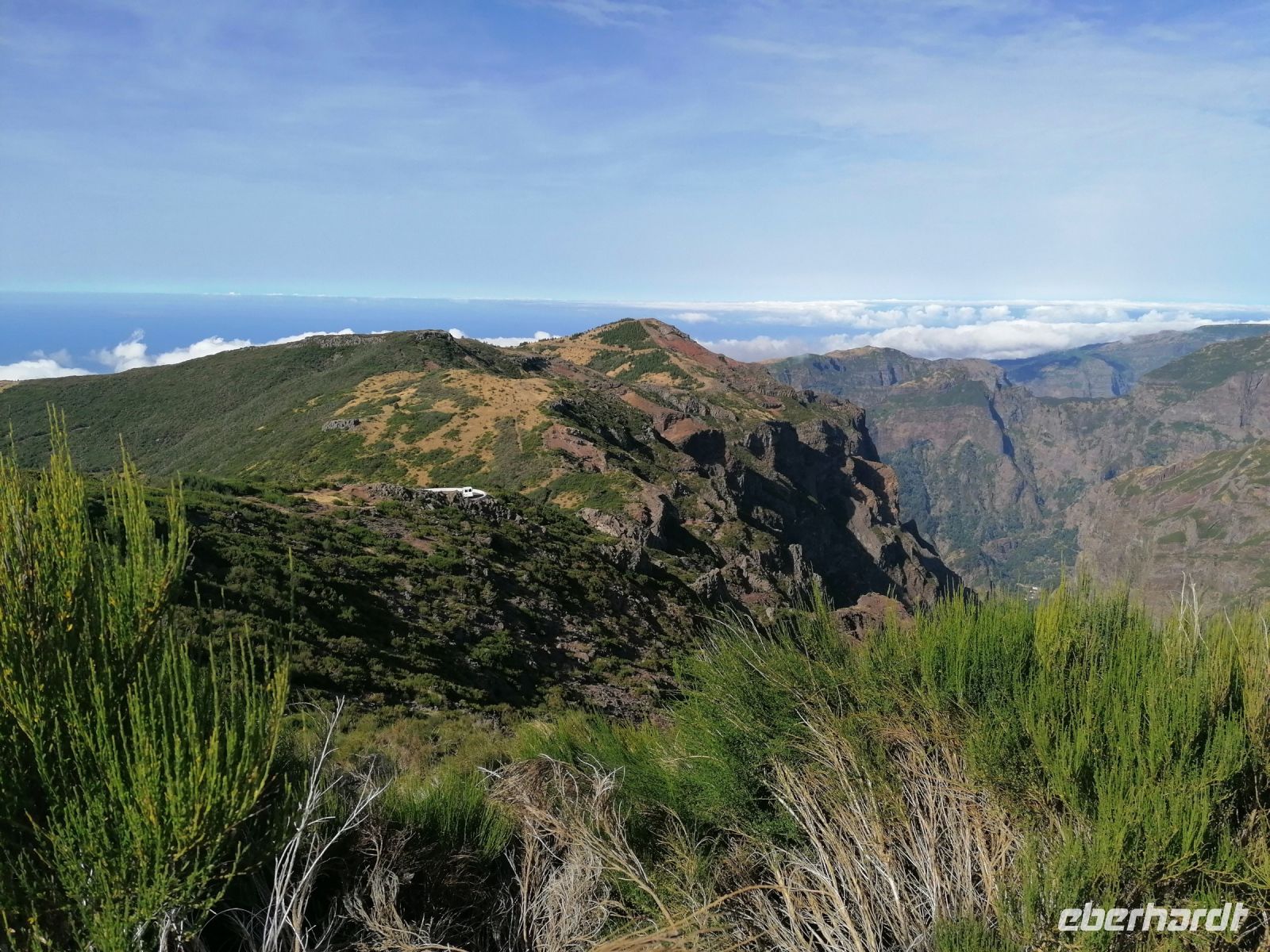 Wir starteten unser erstes gemeinsames Frühstück auf der Terrasse am Hotelpool. Neben warmen Speisen gab es auch leckeres Baguette und frisches Obst. So lässt es sich doch gemütlich und schön in den Tag starten. Nach dem Frühstück starten wir gemeinsam mit Claudio in Richtung Camacha. Camacha wird auch als das Zentrum der Korbflechterei bezeichnet. Unser erster Stopp erfolgte in einer privaten Garage, wo viele Probenstücke der Korbflechterei ausgestellt wurde. Wie immer, war leider unser Koffer zu klein, um die schönen Kunststücke mitzunehmen. Im Anschluss führte uns Claudio zum Aussichtspunkt des Pico do Arieiros. Der Berg ist mit seinen 1818 Meter der drittgrößte Berg der Insel und über den Poiso-Pass erreichbar. Hier oben erlebten wir einen wunderschönen Ausblick auf die Bergwelt Madeiras und konnten in der Ferne sogar die Nachbarinsel Porto Santo erkennen. Nach dem traumhaften Erlebnis oberhalb der Wolkengrenze, fuhren wir zurück ins Tal die kalten Flusses - Ribeiro Frio. Hier gibt es nicht nur eine Forellenzucht zu besichtigen, sondern es stand auch unsere erste kleine Wanderung zum Aussichtspunkt Balcoes auf dem Programm. Auch hier wurden wir wieder mit einer tollen Aussicht belohnt. Im Dorf gab es noch einen Poncha oder Expresso als Stärkung und wir fuhren in Richtung Santana. Santana ist bekannt für seine bunten Madeira-Häuser, die im Stadtzentrum zu finden sind. Einige Bilder später verließen wir auch schon wieder Santana und fuhren zur Quinta do Fruao. Hier findet jährlich das berühmte Weinfest statt. Gemeinsam mit unseren Gästen könnten wir Trauben trampeln und somit selbst Wein produzieren. Besonders die Folklore Tänzer mit ihren wunderbaren Trachten waren immer wieder ein schönes Fotomotiv für unsere Gruppe. Nach dem Weinfest wollten wir noch etwas raus in die einsame Natur. Bei einer Wanderung entlang der Levada do Castelejo könnten wir nochmal den Ausblick auf die Westküste genießen und eine schöne Levada-Wanderung absolvieren. Als letzter Tagespunkt stand nach das Fischerörtchen Machico auf der Agenda. Vom Aussichtspunkt Pico do Facho bestaunten wir die Landebahn des Flughafens und könnten den goldgelben Strand von Machico entdecken. Am Abend ließen wir den langen Tag bei einem Abendessen im örtlichen Restaurant Villa Ventura ausklingen.
