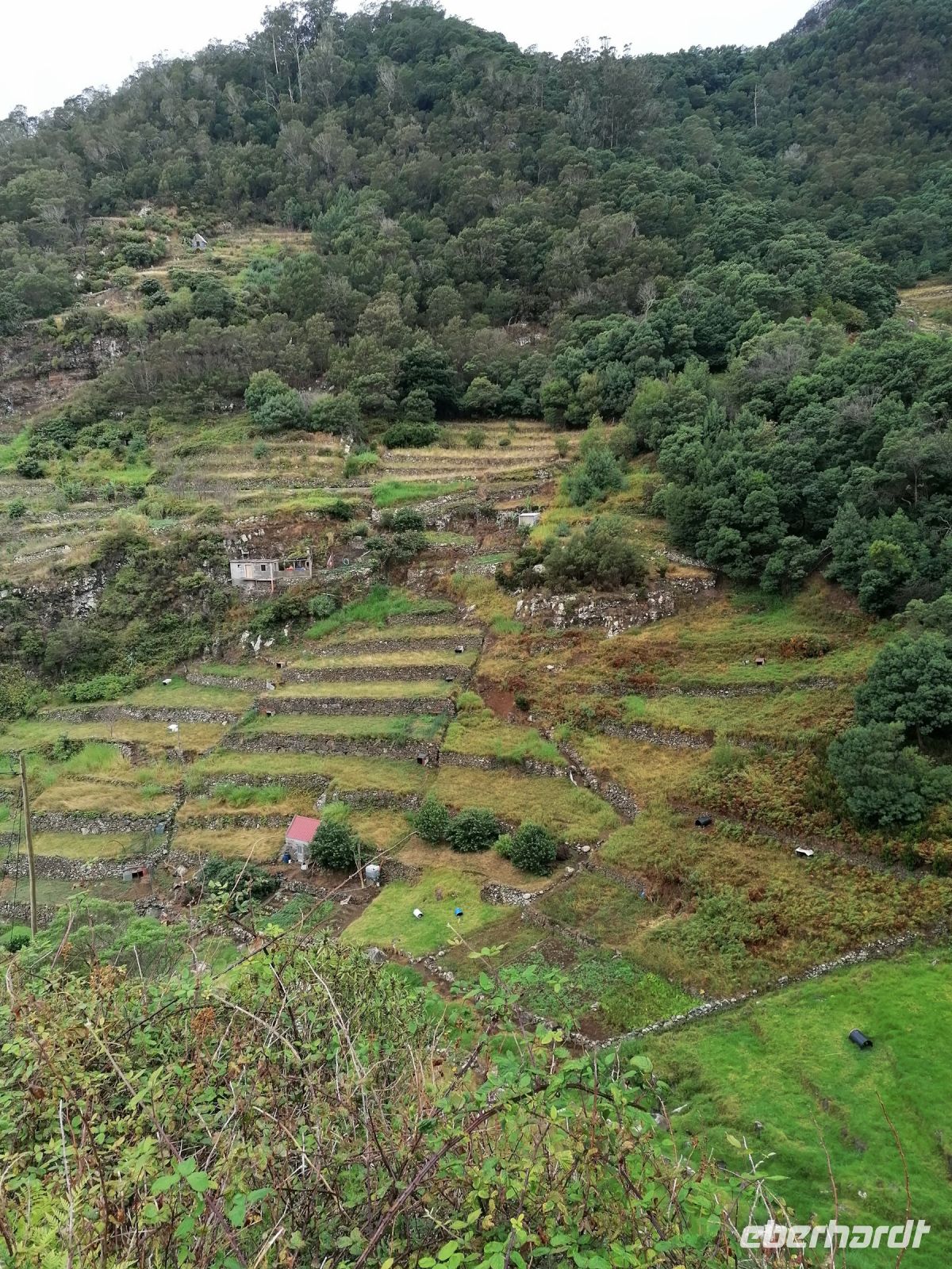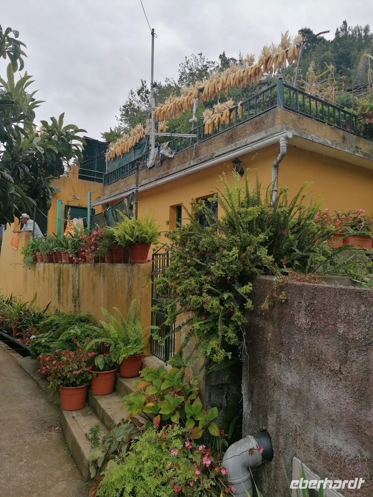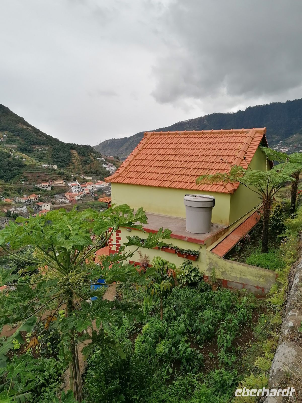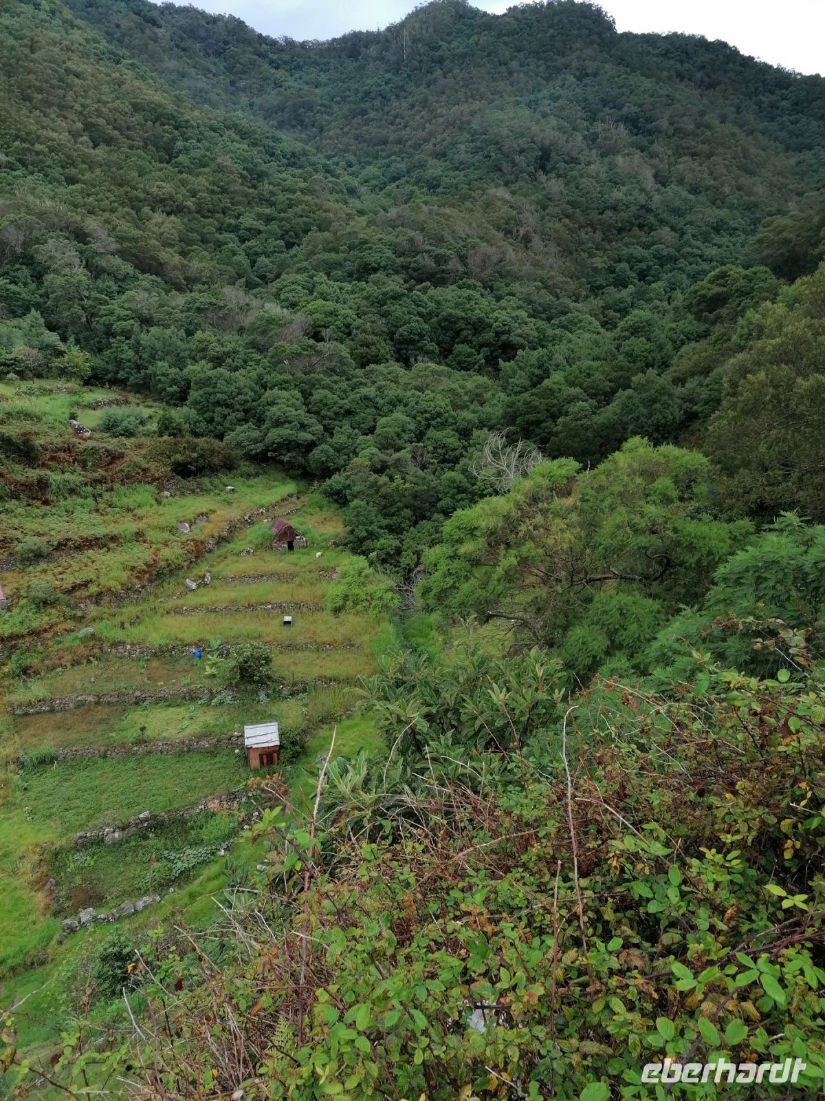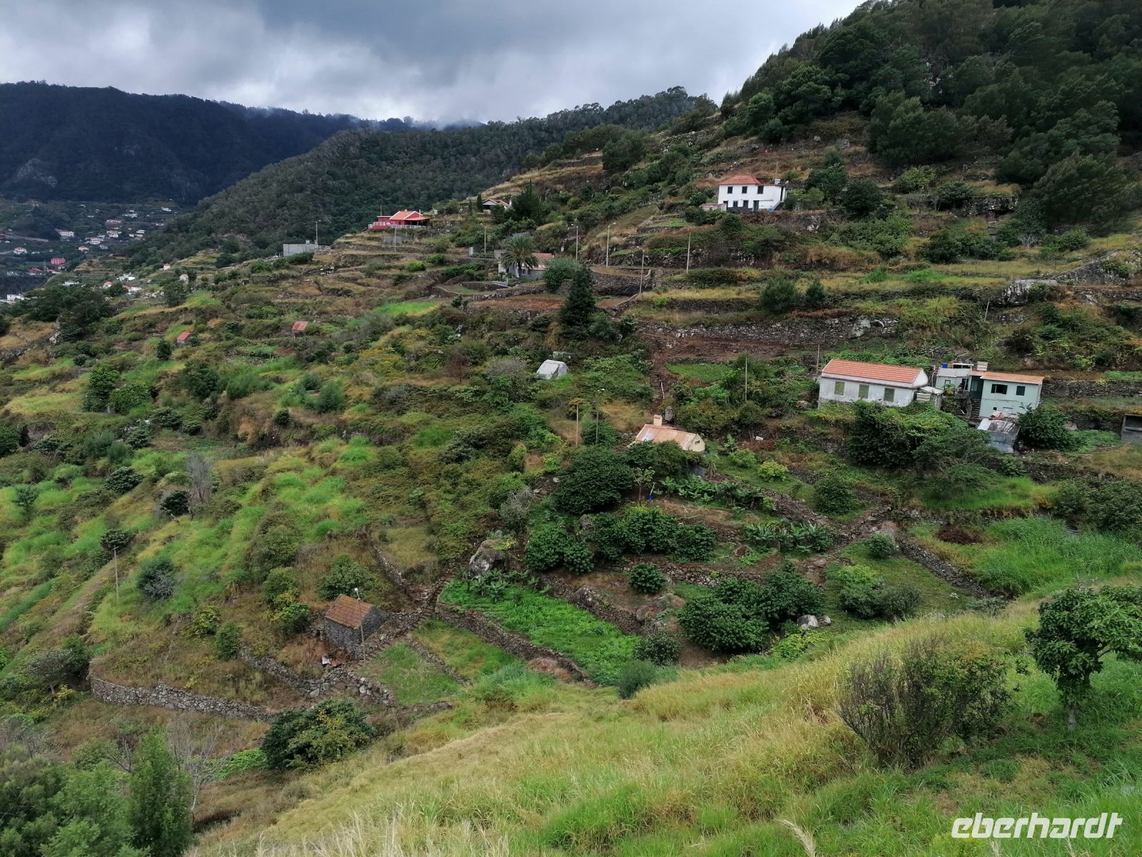 Heute stand fakultativ eine weitere Levada Wanderung auf dem Programm. Die Levada von Marocos gilt als eine der schönsten und typischen Wanderungen der Inseln. Leider war das Wetter uns am Morgen noch nicht so wohlgesonnen. Bei durchwachsenem Wetter erreichten wir die Levada im Osten der Insel. Eine Levada ist ein künstlich angelegter Wasserweg, der von der Hochebene der Insel bis in die Küstenregionen führt. Es wird vermutet, dass insgesamt über 1000 km an Levada die Insel überqueren. Die Levadas führen vom Hochgebirge aus über die ganze Insel und versorgen auch die Felder mit Wasser. Am Haus der Levadeiros (die Arbeit, die sich um die Levada kümmern) liegt unser Startpunkt für die Wanderung ist Marocos. Wir schlenderten entlang der Levada und durchquerten Täler und Ortschaften und entdecken unzählige Felder der Bauern. Immer wieder zeigte und erklärte uns Claudio ist einheimische Pflanzen- und Blumenwelt. Schon erstaunlich wie einfach das Leben manchen Madeirenser geführt wird, die in mühsamer Handarbeit ihre hoch oben in den Gebirgen liegende Felder bearbeiten müssen. Immer weiter entlang der Levada führte uns unser Weg. Wir genossen das milde Klima, die schöne Luft und die wundervolle Landschaft auf der Ostseite der Insel. Am Ende der Wanderung erwartete uns ein kleiner Pub, wo wir uns mit einem Cafe oder anderen Heißgetränk stärken konnten.