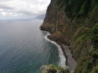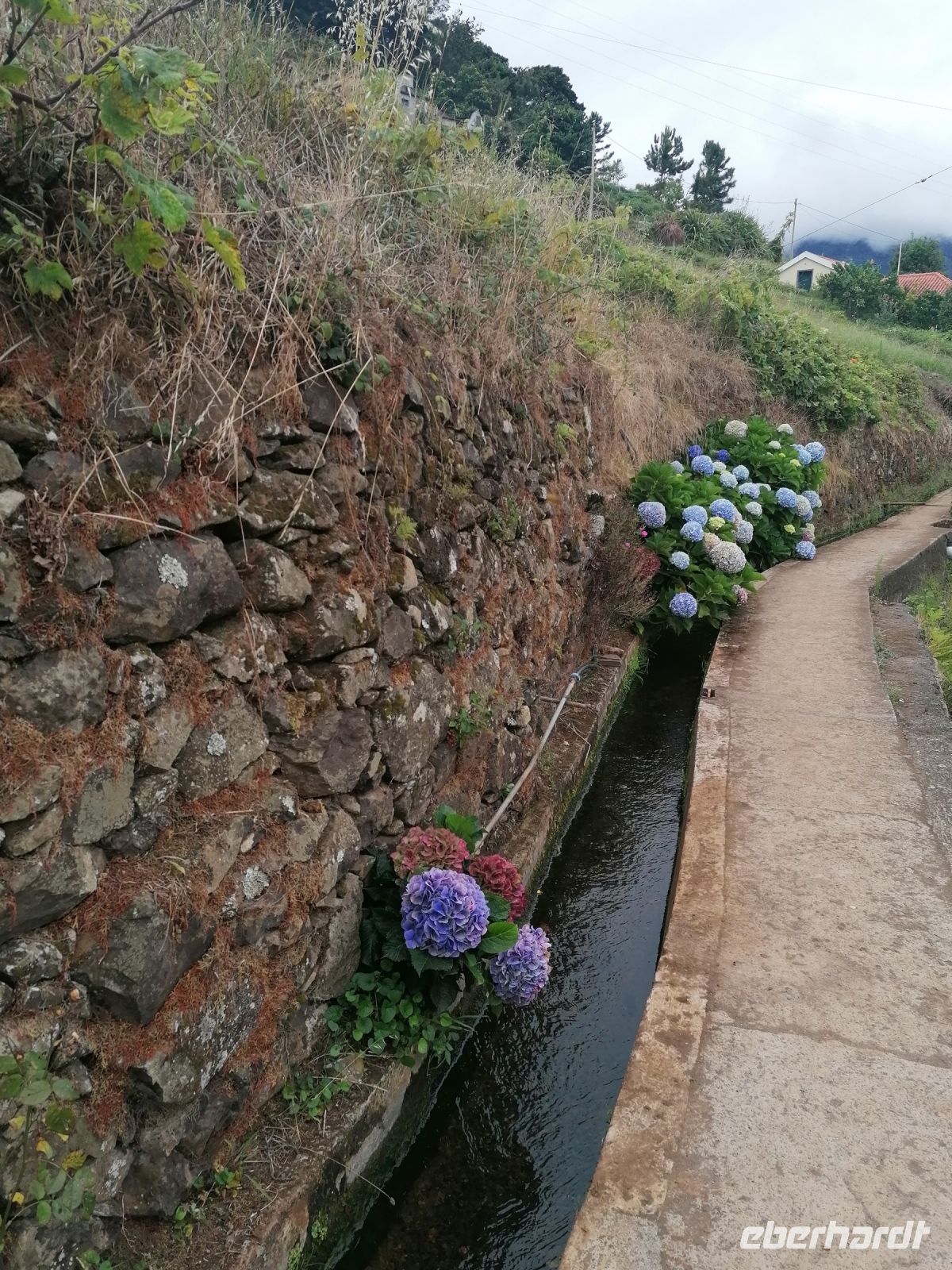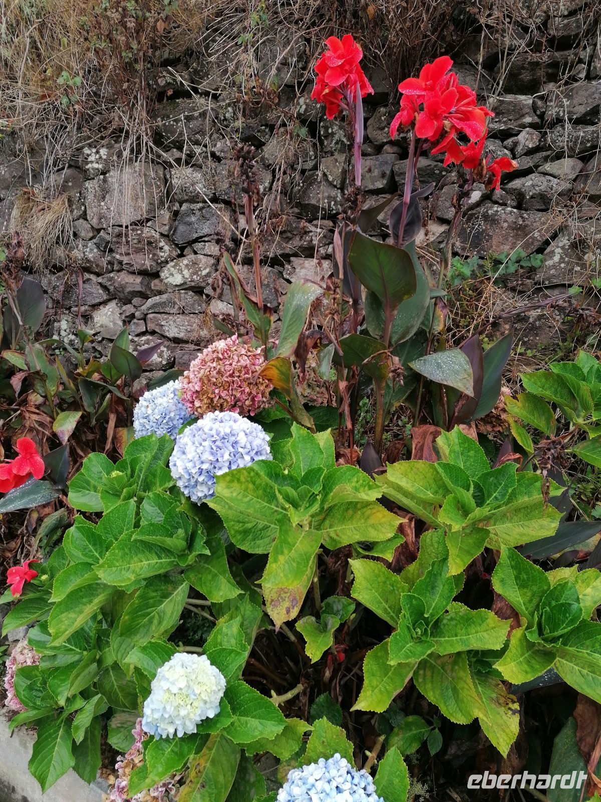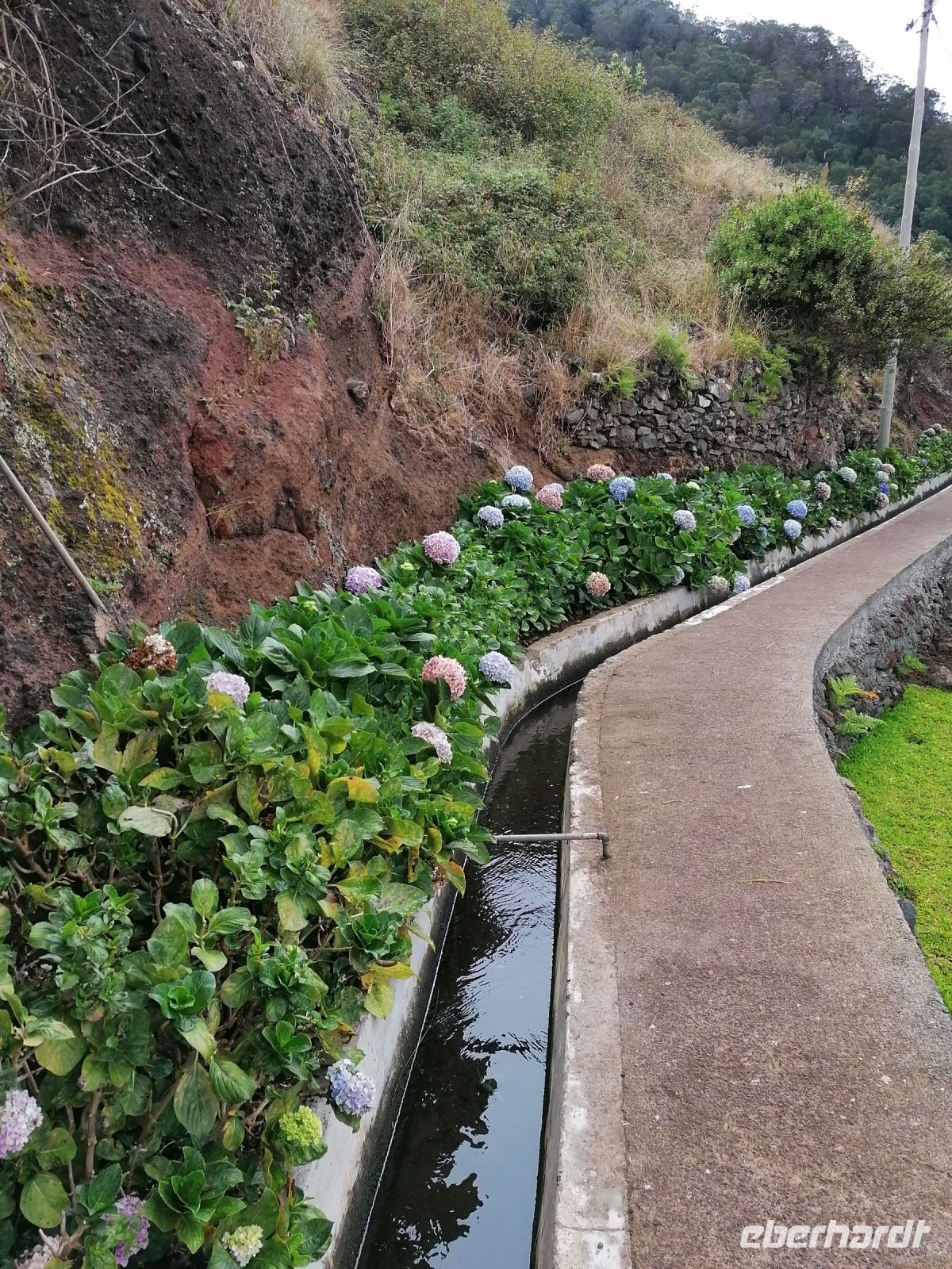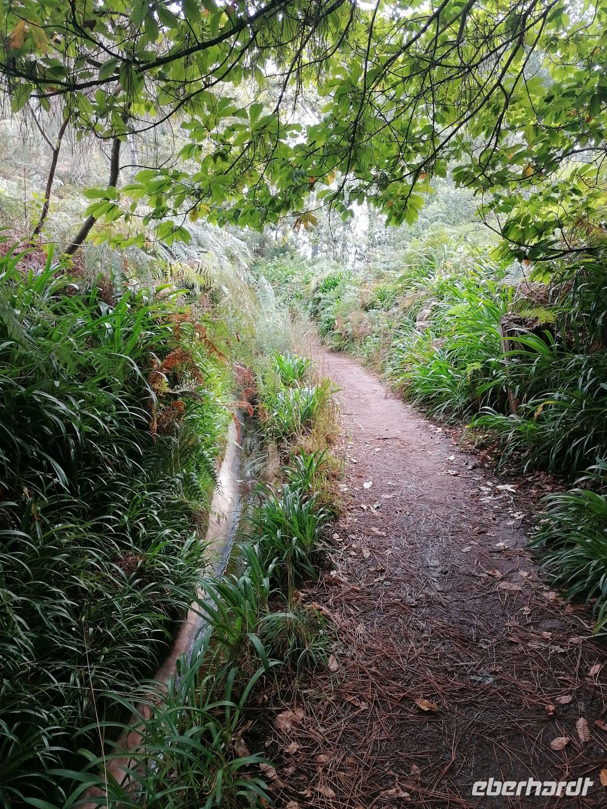 Heute stand fakultativ eine weitere Levada Wanderung auf dem Programm. Die Levada von Marocos gilt als eine der schönsten und typischen Wanderungen der Inseln. Leider war das Wetter uns am Morgen noch nicht so wohlgesonnen. Bei durchwachsenem Wetter erreichten wir die Levada im Osten der Insel. Eine Levada ist ein künstlich angelegter Wasserweg, der von der Hochebene der Insel bis in die Küstenregionen führt. Es wird vermutet, dass insgesamt über 1000 km an Levada die Insel überqueren. Die Levadas führen vom Hochgebirge aus über die ganze Insel und versorgen auch die Felder mit Wasser. Am Haus der Levadeiros (die Arbeit, die sich um die Levada kümmern) liegt unser Startpunkt für die Wanderung ist Marocos. Wir schlenderten entlang der Levada und durchquerten Täler und Ortschaften und entdecken unzählige Felder der Bauern. Immer wieder zeigte und erklärte uns Claudio ist einheimische Pflanzen- und Blumenwelt. Schon erstaunlich wie einfach das Leben manchen Madeirenser geführt wird, die in mühsamer Handarbeit ihre hoch oben in den Gebirgen liegende Felder bearbeiten müssen. Immer weiter entlang der Levada führte uns unser Weg. Wir genossen das milde Klima, die schöne Luft und die wundervolle Landschaft auf der Ostseite der Insel. Am Ende der Wanderung erwartete uns ein kleiner Pub, wo wir uns mit einem Cafe oder anderen Heißgetränk stärken konnten.
