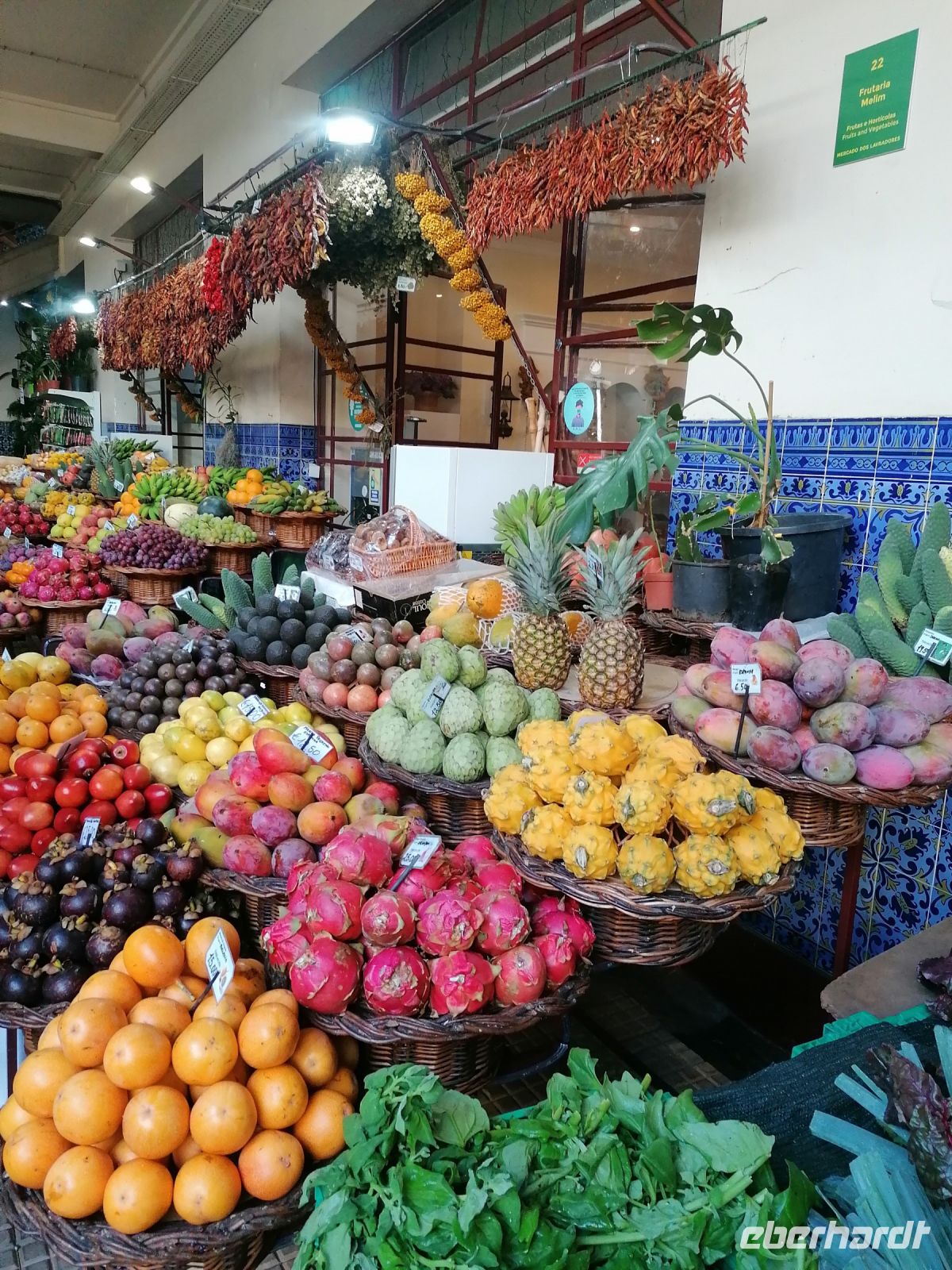 Auch der heutige Tag begann mit einem ausführlichen Frühstück auf der sonnigen Terrasse. Heute steht die Inselhauptstadt Funchal auf unserer Agenda. Unser Bus konnte uns an der berühmten Seilbahn ausladen und wir spazierten durch die Altstadt mit den bunt bemalten Türen bis zur Markthalle. Zwischen Donnerstag und Sonntag werden im mittleren Teil der Markthalle die Stände für die einheimischen Obsthändler reserviert, sodass es auch heute sehr lebendig hergeht. Zu Beginn zeigt uns Claudio die verschiedenen Blumenstände mit den exotischen Blumen wie die Strelitzie. Später schlenderten wir zwischen den Obstständen hindurch und entdecken viele tropische und leckere Früchte. Der hintere Teil der Markthalle ist für die Fische reserviert. Hier machen wir auch zum ersten Mal Bekanntschaft mit dem schwarzen Degenfisch, der meist in der Nähe von Camara do Lobos gefangen wird. Oberhalb des Stadtzentrums liegt der Botanische Garten von Funchal. Im Botanischen Garten kann man allerlei einheimische Pflanzen wie die Strelitzie, Orchidee oder die Protea entdecken. Von einem Aussichtspunkt könnten wir Funchal von oben aus erkunden und genossen den Ausblick über die Stadt. Neben dem berühmten Blumenschriftzug, der jedes Jahr erneuert wird, entdeckten wir weitere Blumen wie Rosen, Magnolien, Bromelien, Palmen und Kakteen, die den Abschluss des Gartens bilden. Insgesamt umfasst der 1960 erbaute Garten über 2.000 Pflanzenarten aus allen Kontinenten und gilt als wichtigste Sehenswürdigkeit der Insel. Nachdem wir durch den Jardin Botanico da Madeira spaziert sind, war es Zeit für eine Pause. Unser Ziel liegt im Zentrum der Hauptstadt und heißt D´Oliveiras. Die charmante Weinkellerei lud uns zur Madeira-Weinverkostung ein. Claudio erläuterte uns die Herstellung und Besonderheiten der bekanntesten Köstlichkeit der Insel. Selbstverständlich dürften wir auch den Madeira-Wein verkosten, den es in den Sorten süß, halbsüß, halbtrocken und trocken zu kaufen gab. Nach der Verkostung fuhren wir in Richtung Camara de Lobos, wo wir in einem Fischrestaurant zu Mittag essen konnten. Das bezaubernde Städtchen zog bereits Winston Churchill in seinen Bann. Direkt am Wasser gelegen kann man die bunten Boote der Fischer entdecken, die sich teilweise auf den schwarzen Degenfisch spezialisiert haben. Oberhalb von Camara de Lobos liegt die höchste Steilklippe Europas, das Cabo Girao. Von der insgesamt 589m hohen Steilklippe hat man einen wunderbaren Blick bis nach Funchal und kann auf einer durchsichtigen Plattform bis zum Meer gucken. Als letzten Tagespunkt fuhren wir zur Christo-Rei-Statue in Garajau. Die Jesusstatue wurde bereits 1920 erbaut und gilt als älteste Jesusstatue der Welt. Am Abend ließen wir wieder den Tag in einheimischen Restaurant A Traineira ausklingen.