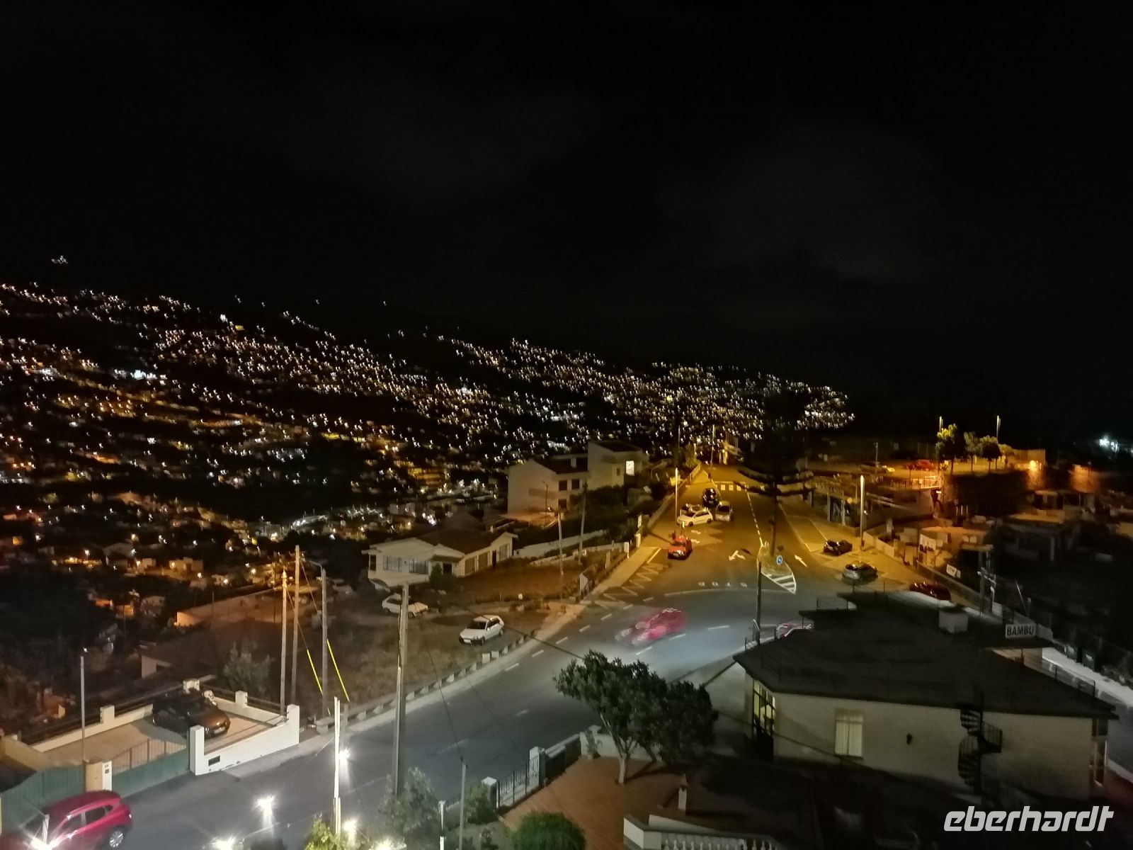 Am Abend wurden wir wieder von Claudio abgeholt. Heuten Abend durften wir die leckeren Fleischspieße von Madeira - auch Espetata genannt probieren. Das Rindfleisch wird auch einem Lorbeerstab gegrillt und auf Spießen serviert. Das schicke Restaurant oberhalb von Funchal bereitete uns einen leckeren und gemütlichen Abend und wir könnten den Abend mit einem Wein ausklingen lassen. Von der Dachterrasse des Restaurants konnten wir nach dem Abendessen die Inselhauptstadt bei Nacht bestaunen und den Tag Revue passieren lassen.