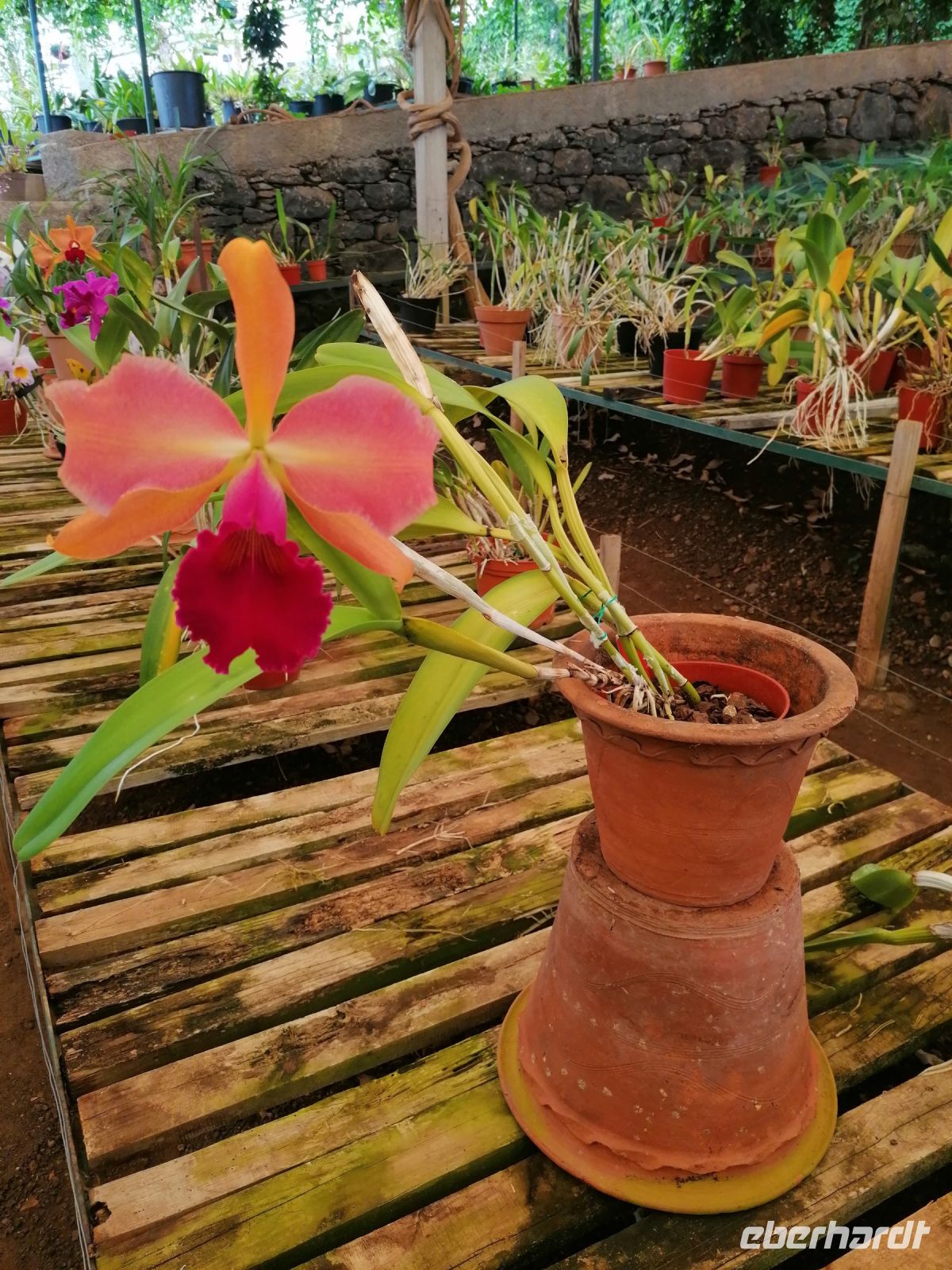 Der heutige Reisetag stand ganz im Zeichen der wunderschönen Gärten Madeiras. Doch zunächst brachen wir in Richtung Camacha auf, denn wir wollten ja noch die Levada Wanderung von gestern nachholen. Der frühe Morgen ist die schönste Zeit, um spazieren zu gehen. Wir schlenderten entlang der Levada da Serra do Faial und genossen die Natur und die Ruhe im Lorbeerwald. Nach der Wanderung starteten wir zum Blandys Garten, der auch Palheiro Gardens genannt. Die ca. 200 alten Gärten der Familie Blandy zeichnen sich durch völlig unterschiedliche Stilrichtungen und Pflanzenarten aus. Das Areal wird durch unzähligen Gärtner gehegt und gepflegt. Unser Reiseleiter Claudio erklärte uns ausführlich die einzelnen Blumen und Pflanzenarten. Besonders schön blühte die Kamelien Allee in voller Pracht. Am unteren Ende des Gartens konnte man zudem den bekanntesten Golfplatz Madeiras sehen, der direkt an den Garten angrenzt. Einige Golfer nutzen auch die Gelegenheit und übernachten im Landhaus der Familie Blandy. Nach der ausgiebigen Besichtigung ging es weiter zum Quinta boa Vista. Der imposante Orchideengarten liegt wunderschön auf einem Hang und mit abermals einem schönen Blick über Funchal. Bei einer Führung erklärte uns Claudio und der englische Besitzer Michael alles über die Züchtung der Orchidee, ihren Lebensraum und Eigenschaften. Den restlichen Tag ließen wir entspannt in Funchal angehen. Nach einem gemeinsamen Mittagessen bummelten wir durch die Hauptstadt und erbeuteten uns Souvenirs für Zuhause. Am Abend speisten wir nochmal im Hotelrestaurant und probierten das heimische Nationalgetränk Poncha.