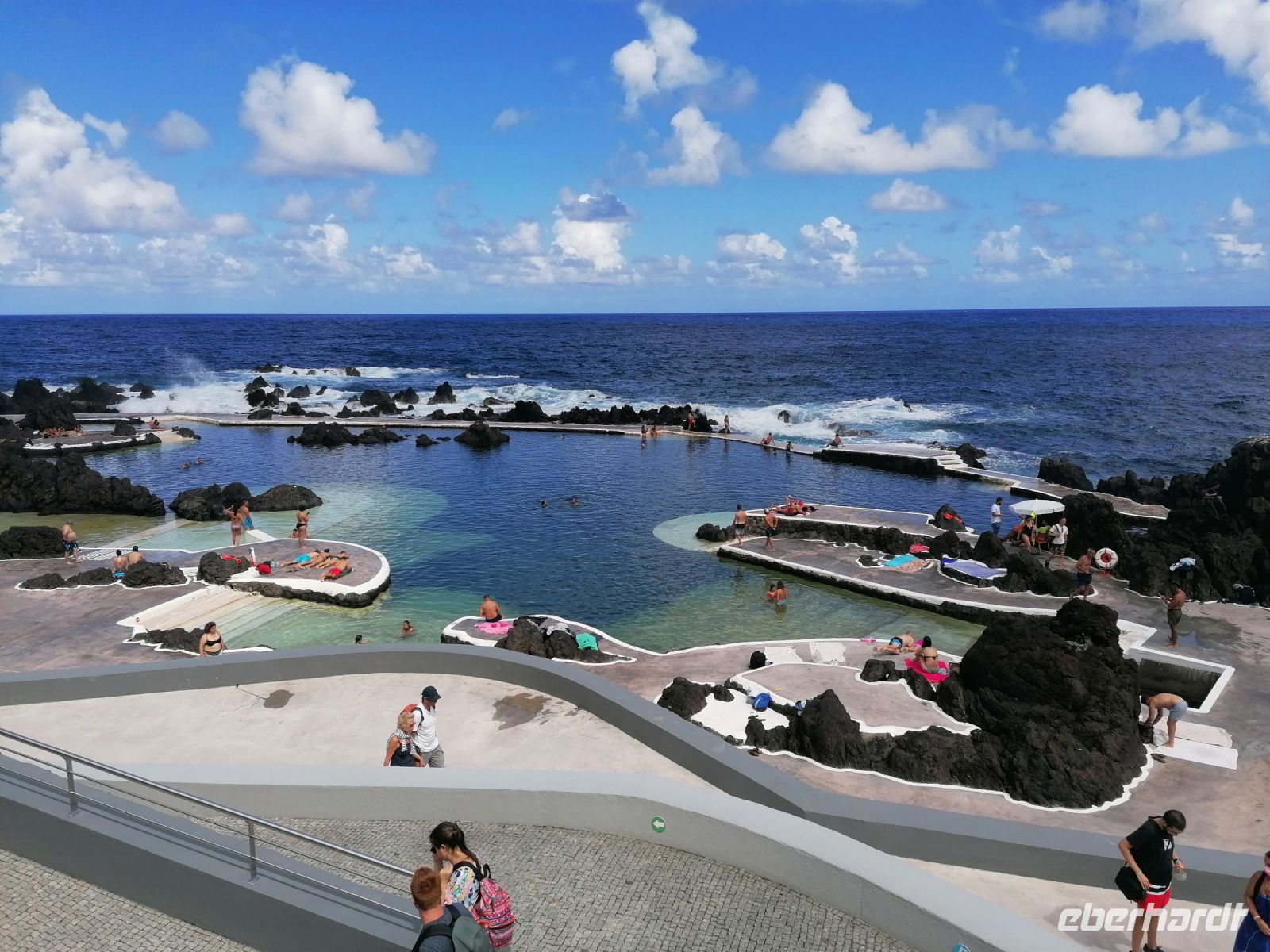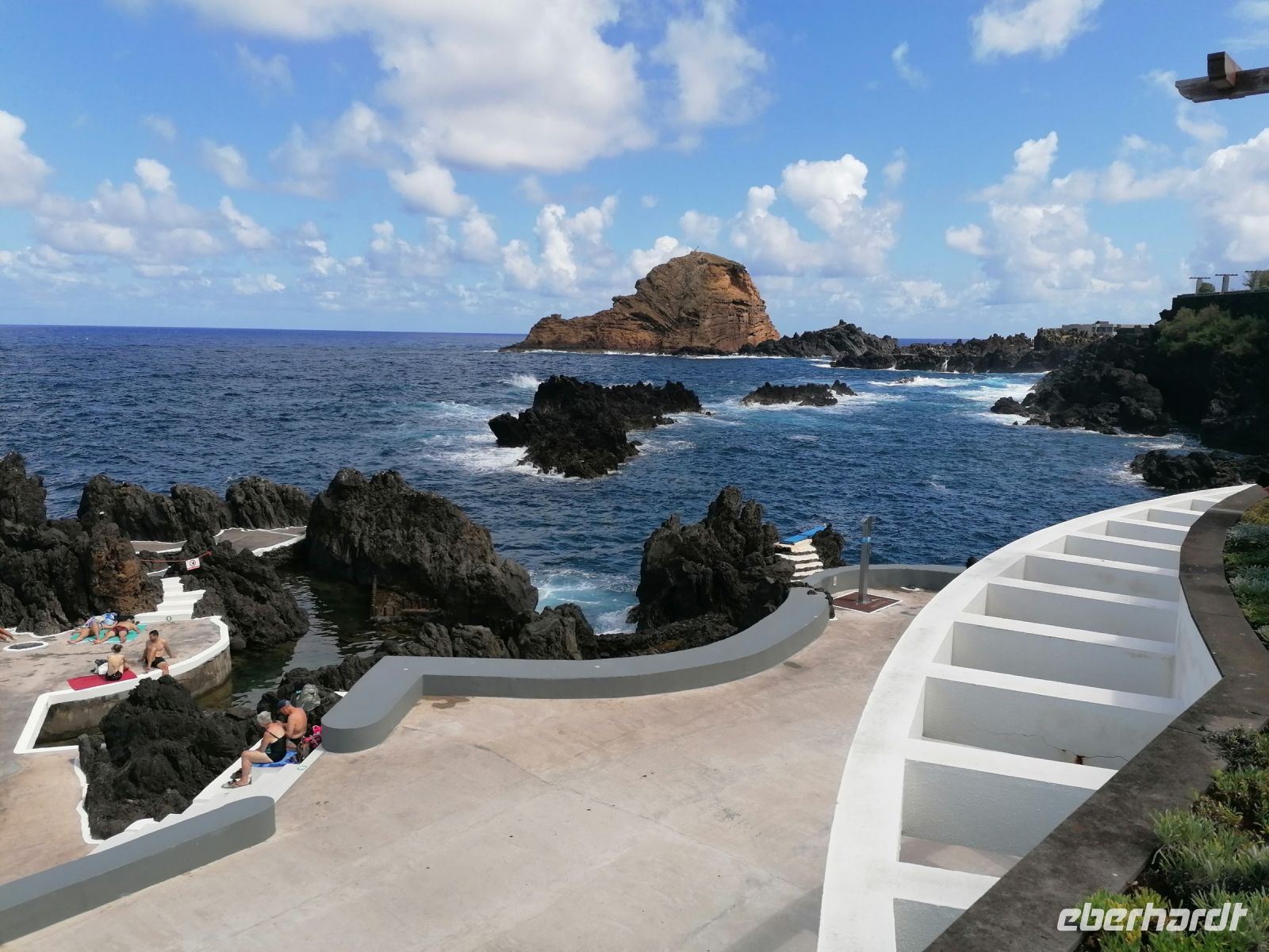 Am heutigen Tag stand der Ausflug in den Nordwesten Madeiras auf dem Programm. Heute hatten wir wieder aller Gäste an Board und wir starten erstmal in Richtung Funchal. Wir fuhren entlang der Südküste bis nach Ribeira Brava. Ribeira Brava ist das kulturelle Zentrum des Westens. Hier spazierten wir durch die Stadt. An der Kirche Igreja Matriz de Sao Bento machten wir einen Halt und konnten anschließend beim hiesigen Bäcker die leckeren Törtchen Pasteis de Nata probieren. Weiter führte uns der Weg über den Encumeada-Pass (1007 m) und über die Hochebene Paul da Serra (1500 m). Leider zog hier das Wetter etwas zu, aber wir konnten unsere Wanderung wie geplant starten. Nach einer kurzen Wanderung begann es allerdings stärker zu regnen. Aber unser toller Guide Claudio hatte ein Ass im Ärmel. Ein befreundeter Kollege holte uns mit seinem Bus ab und brachte uns zurück zu unserem Bus. Eine großartige Idee und eine tolle Geste. Auf der Hochebene wurde das Wetter allerdings nicht besser und wir beschlossen schnell in Richtung Tal zu fahren. Kurz vor Porto Moniz hörte es endlich auf zu gießen und die Sonne kämpfte sich an der Nordseite heraus. Unsere Laune wurde schlagartig besser. Zur Mittagszeit erreichten wir die malerische Fischerdorf Porto Moniz. Hier bekam die Gruppe genügend Zeit zur freien Verfügung. Porto Moniz ist bekannt für seine natürlichen Meeresschwimmbecken im Vulkangestein. Natürlich durfte auch hier ein Besuch nicht fehlen. Einige mutige schwammen wir durch die schwarzen Lava-Grotten. Wiederum andere nutzten die Freizeit und bestaunten wie die unberechenbare Naturgewalt des Meeres auf die schroffen Felsen der Küste trifft. Wir spazierten entlang der Promenade und ließen die Naturgewalt auf uns herein prasseln. Nach dem Schwimmen waren wir hungrig und wir stärken uns bei Suppe, Knoblauchbrot und Wein. Am Nachmittag fuhren wir entlang der Nordküste zurück. Als letzter Stopp hielten wir am Brautschleierwasserfall und konnte einige Bilder des größten Wasserfalls der Insel und auch von der alten Landstraße machen. Am Abend ließen wir die Reise bei einem gemeinsamen Abendessen in unserem Lieblingsrestaurant Villa Ventura Revue passieren und freuten uns über die schöne Zeit, die wir miteinander verbringen konnten.