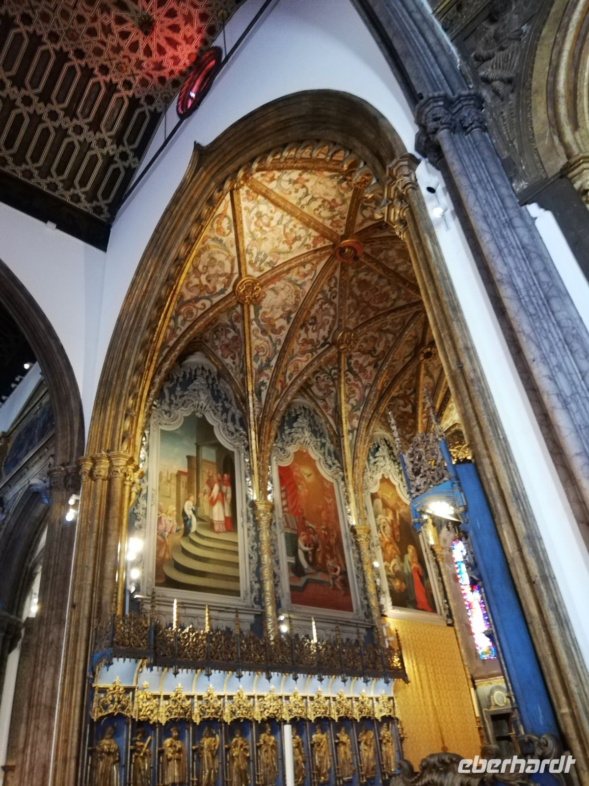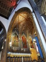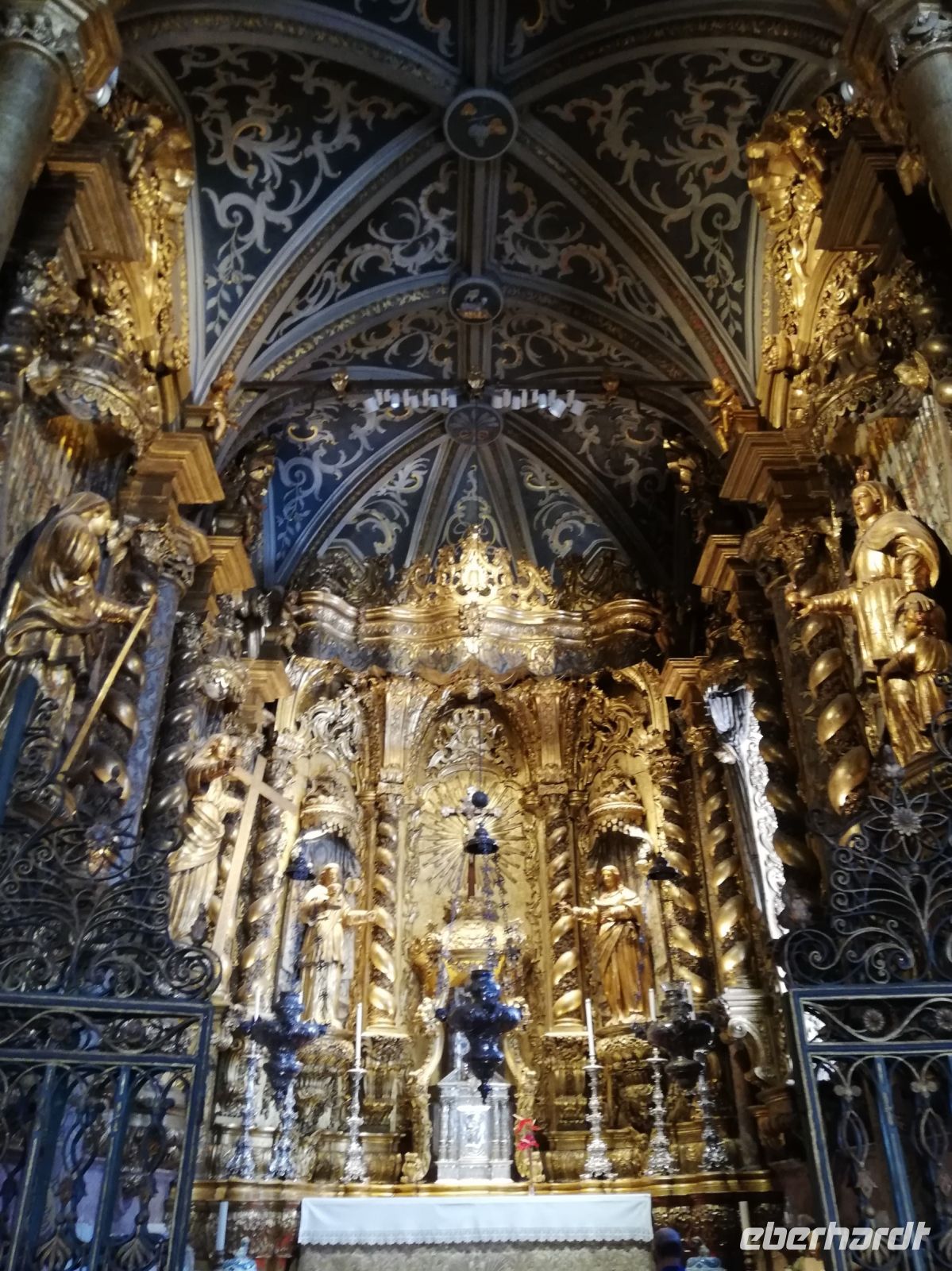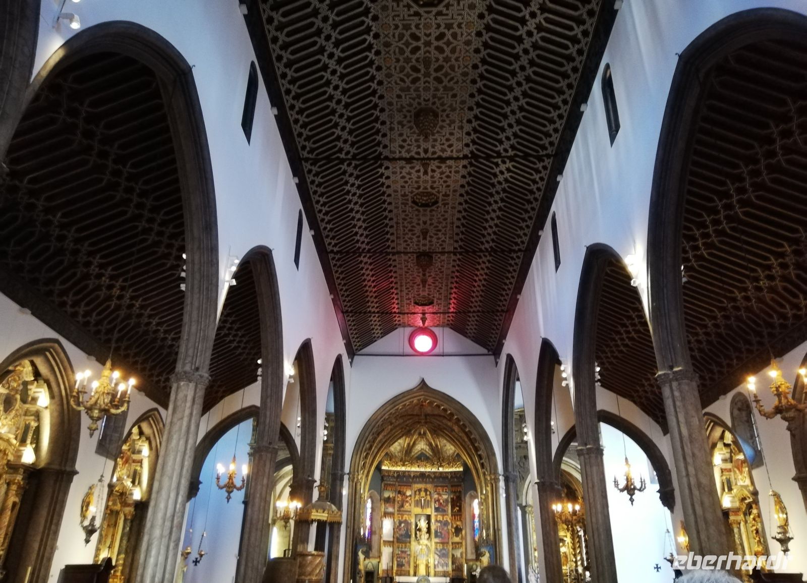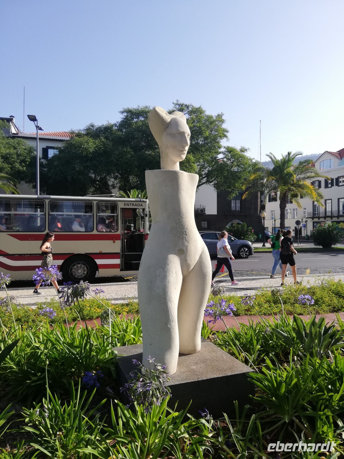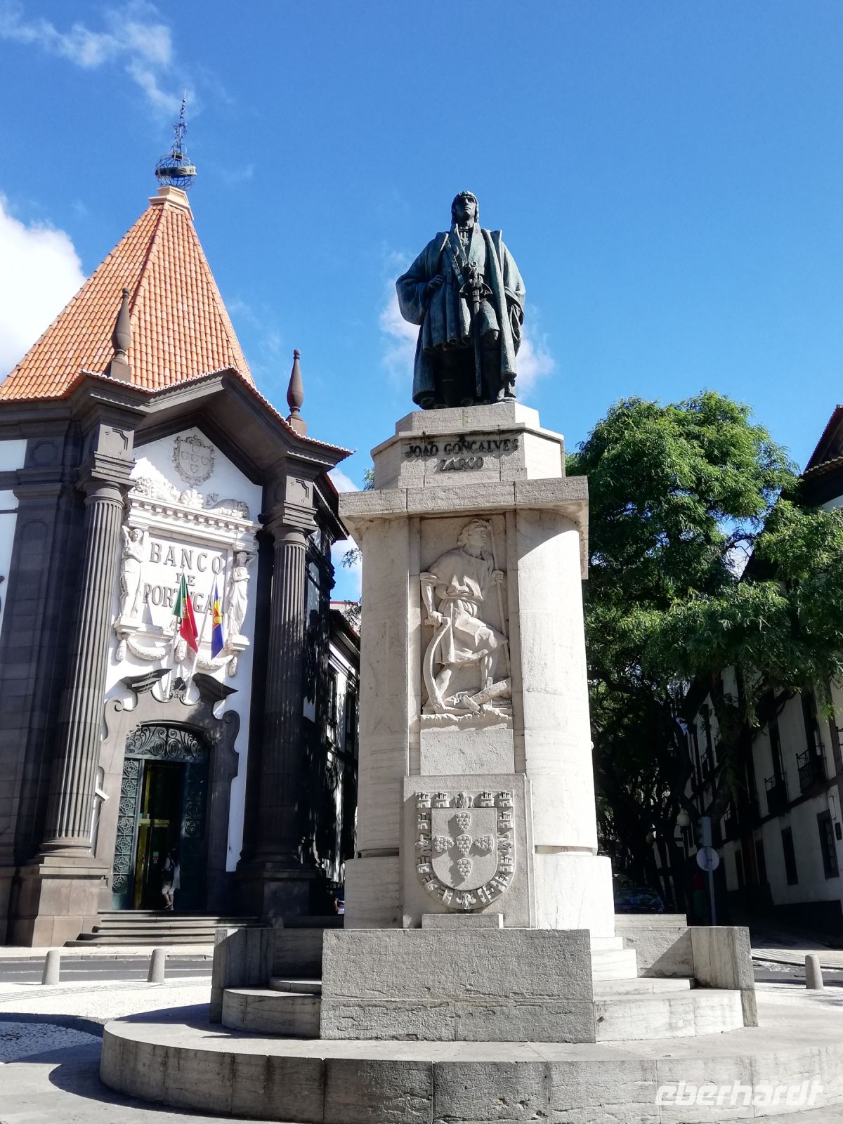 Wir landen vor der Kathedrale Sé – „Sé Catedral de Nossa Senhora da Assunção“ von Funchal, die König Manuel I. bauen ließ und die in 1517 eingeweiht wurde. Wir betreten die Kathedrale und bewundern vor allem die verzierte Holzdecke, den Hauptaltar den Altar in der Kapelle. Verweilen kurz an dem „heiligen Ort“, bevor wir uns wieder in Trubel der Stadt begeben. Vor dem historischen Gebäude der Banco Portugal treffen wir IHN - João Gonçalves Zarco – den Gründer der Stadt als eine Statue auf dem Podest mit Wappen der Stadt. An dem Weg zu dem Weingut Blandy ist gerade eine sehr kreative Kunstausstellung. Diverse Werke sind an den Bäumen oder Säulen des weitläufigen Parks angebracht.