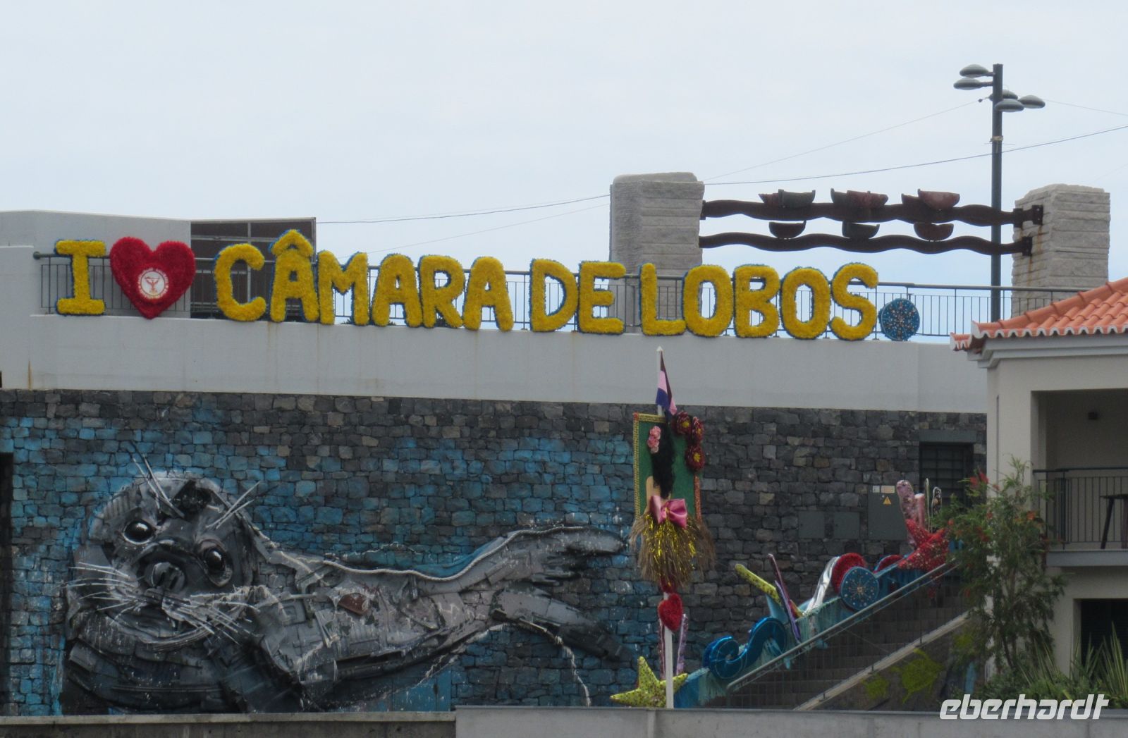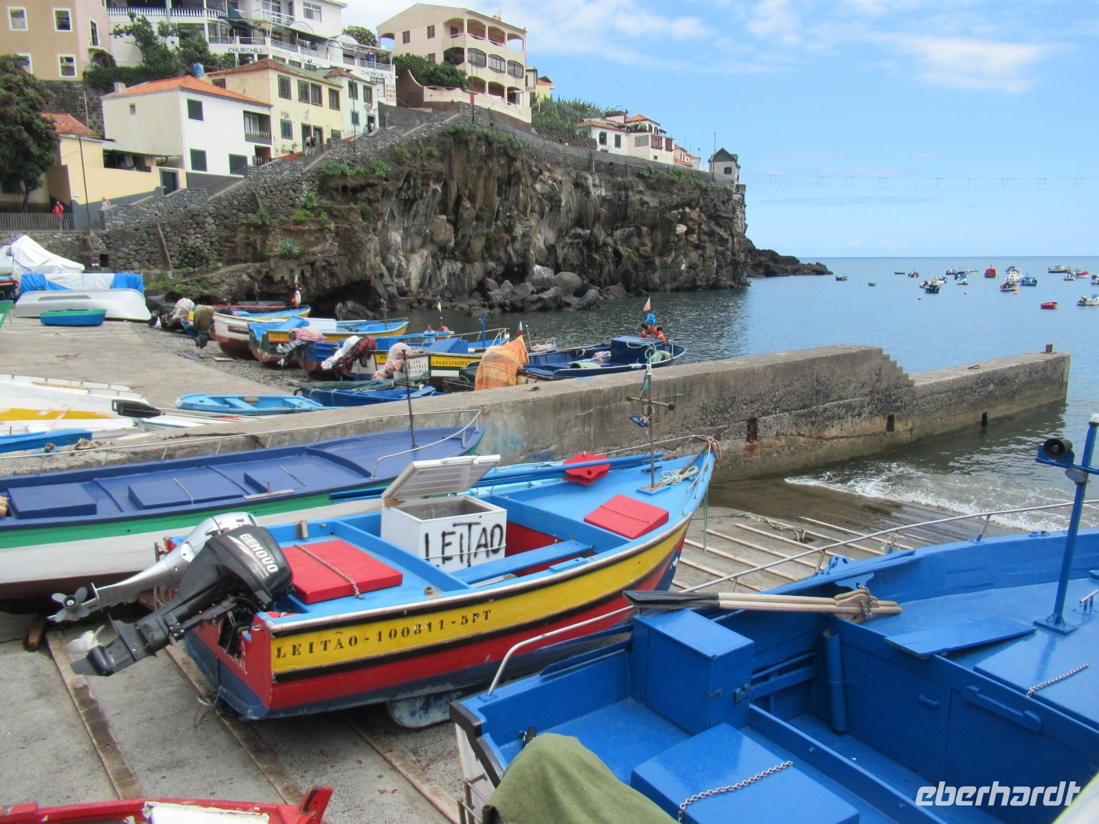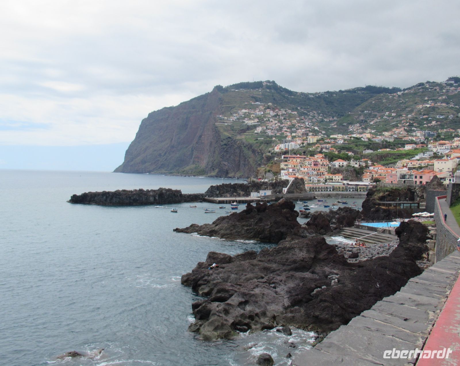 Da beginnt unser Nachmittagsprogramm. Wir fahren nach Camara de Lobos, steigen aber vorher aus und gingen einen sehr schönen kleinen Weg an der Küste bis zum Ort. An der Küste sehen wir auch einen sehr schön angelegtes Meeresschwimmbad mit einem Pool. In der Bucht von Camara de Lobos liegen bunt bemalte Fischerboote – eine wunderbare Kulisse. In einer kleinen Auszeit trinken manche Gäste mit Sergio einen frischen Poncha oder erkunden die bunt dekorierten Straßen für das Johannesfest, das morgen hier stattfindet.
