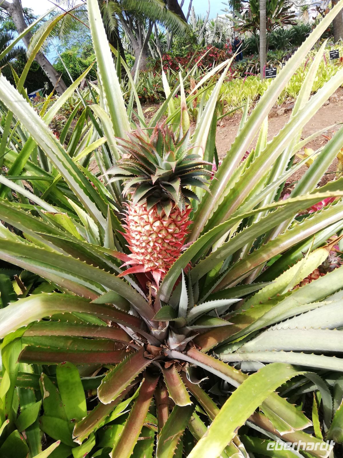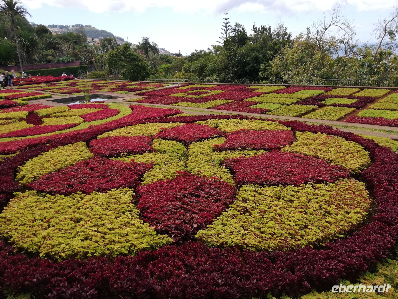Jetzt geht es zum Highlight von Funchal, zu den Botanischen Garten auf der Anhöhe über Funchal. Angelegt wurde er 1960 auf dem Gelände eines Herrenhauses. Auf 35.000 Quadratmetern gedeihen mehr als 2000 verschiedene Pflanzenarten. Nicht weit vom Eingang sehen wir schon das bekannte Bild des großflächigen bunten Pflanzenteppich aus farbigen Blätterpflanzen. Einfach herrlich. Bei wunderbarem Wetter bewundern wir die Vielfalt der Pflanzenwelt hier. Viele Blumen, die wir auch von Zuhause als kleine Topfpflanze kennen, sind hier riesige Büsche. Sergio erklärt einige Pflanzen, viele davon sind endemische Pflanzen Madeiras – wie z. B Baumheide, Strauchheidelbeere, Madeirastolz.