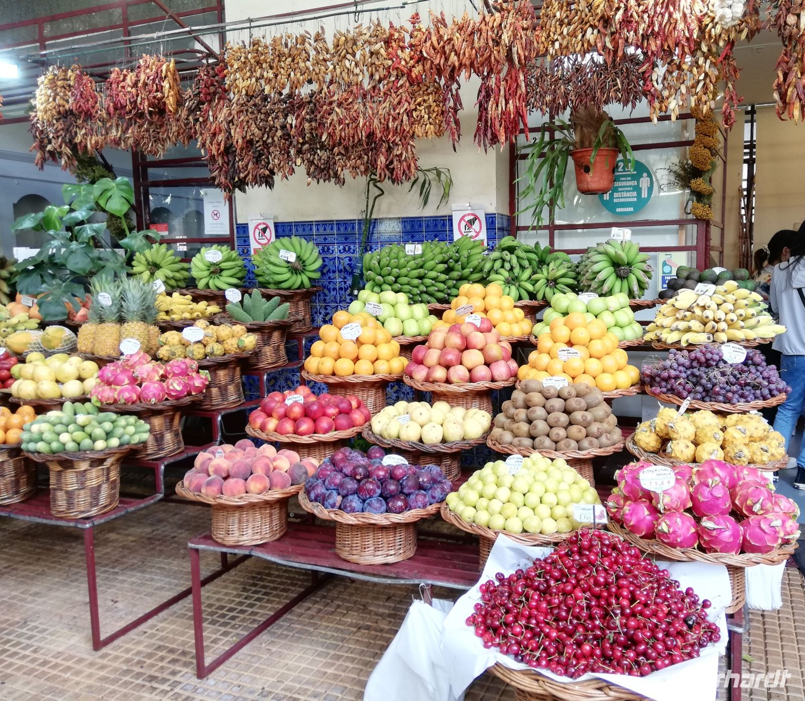 Nach dem Bummel im Botanischen Garten haben wir langsam Hunger, so geht es zunächst durch die berühmte Santa-Maria-Straße, wo wir die bemalten Türen – Kunstwerke bewundern und fotografieren. Dann landen wir bei dem historischen Gebäude der Markthalle mit Fliesenbilder – Azulejos. Hier zeigt uns Sergio nicht nur die exotischen Früchte, sondern auch den Degenfisch, den wir heute Abend probieren werden. Ebenfalls gibt es die Möglichkeiten zum Mittagssnack in der Markthalle oder umliegenden Restaurants. Nach der optischen Augenweide findet dann jeder von uns eine Leckerei für den knurrenden Magen und wir treffen uns um 15 Uhr wieder.