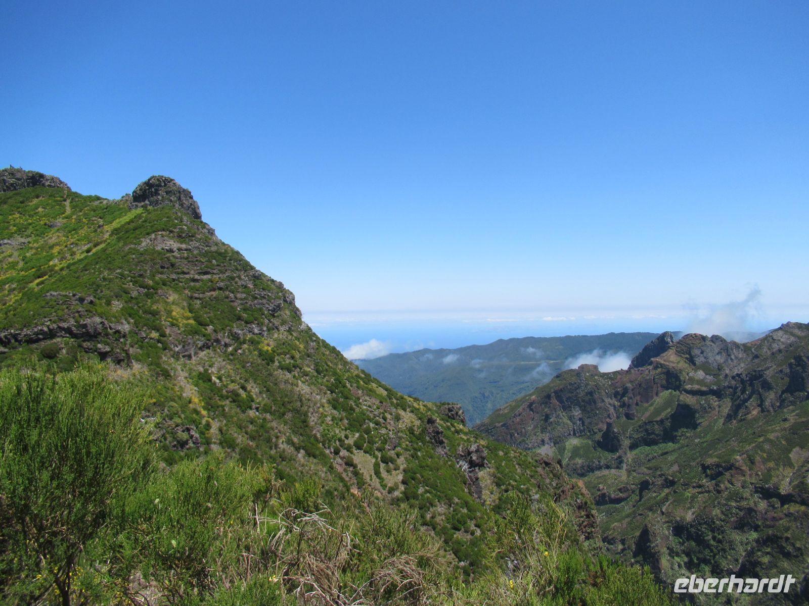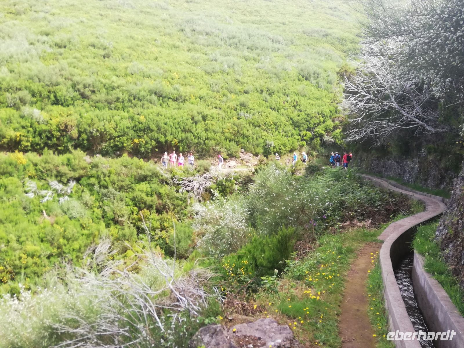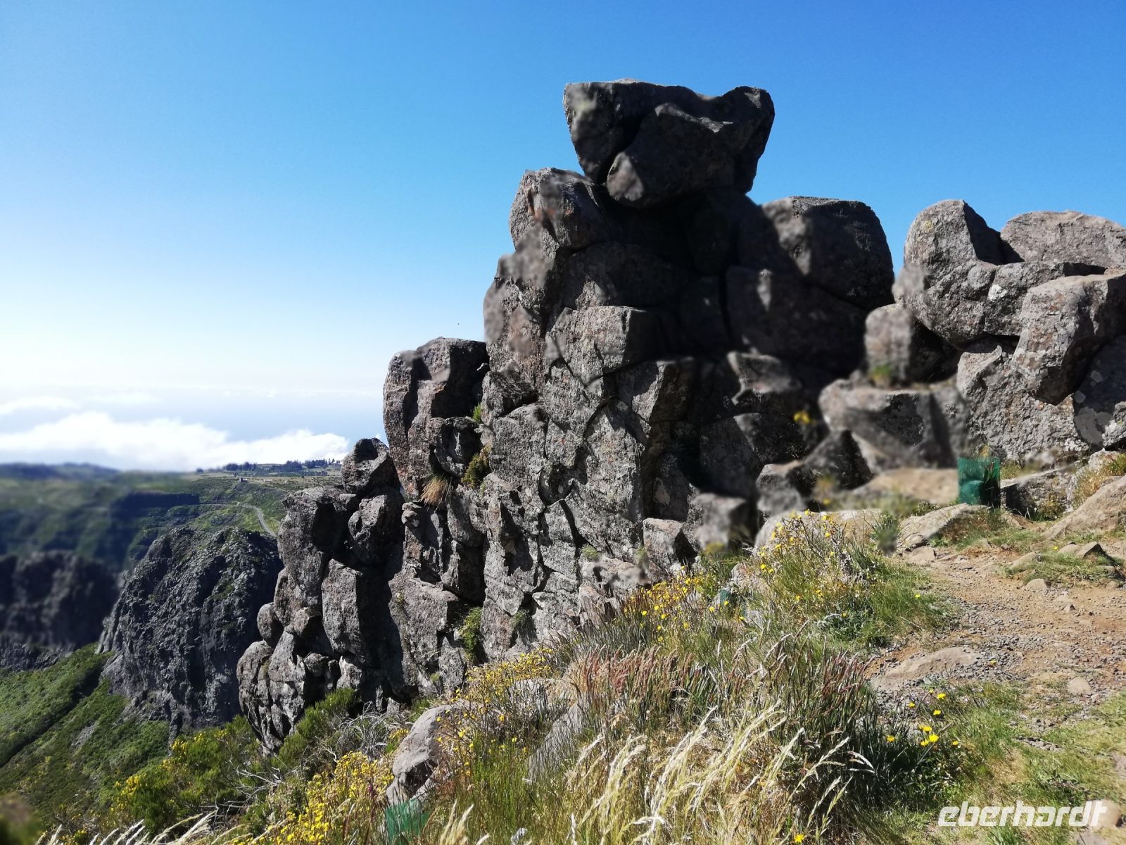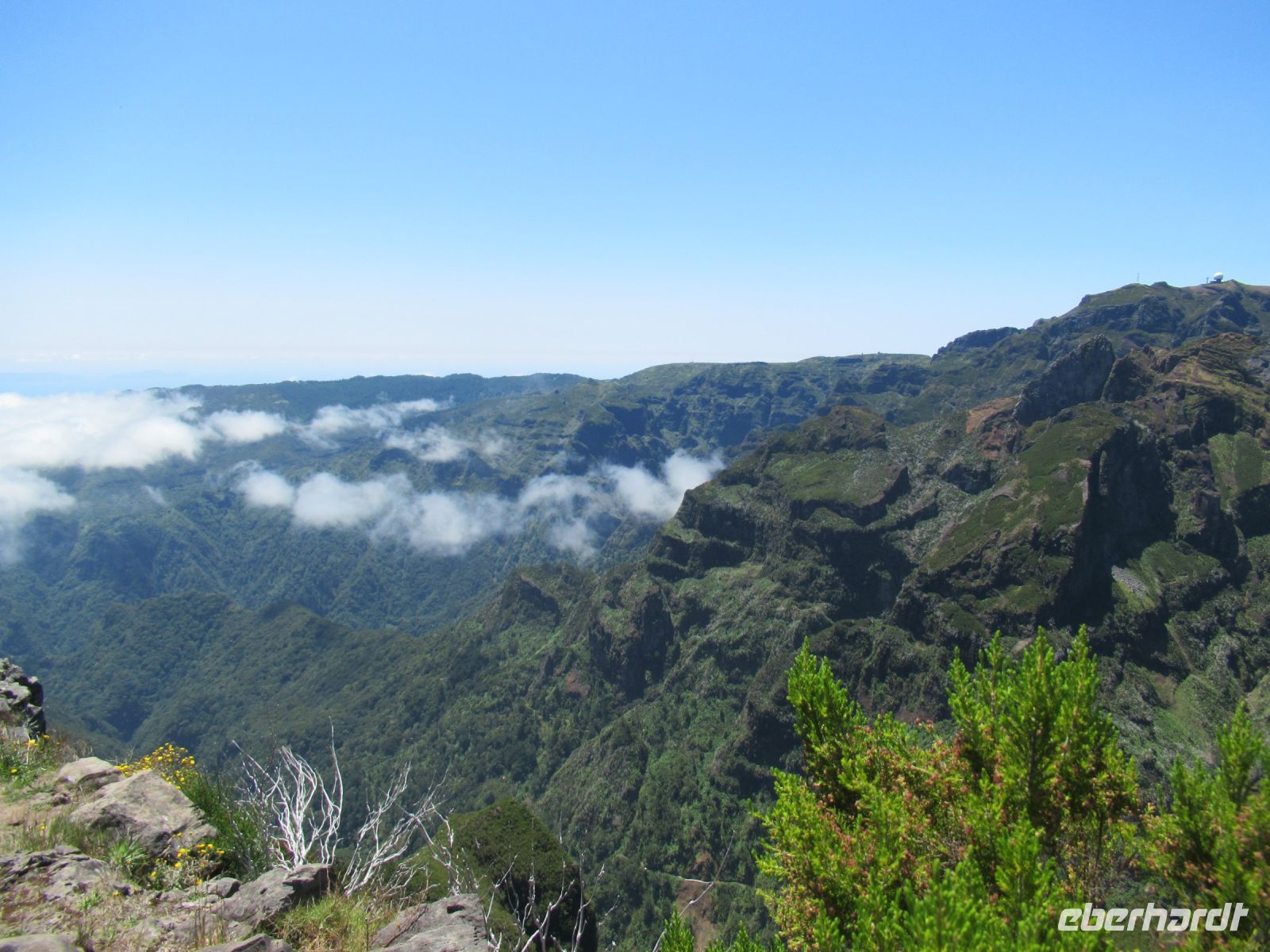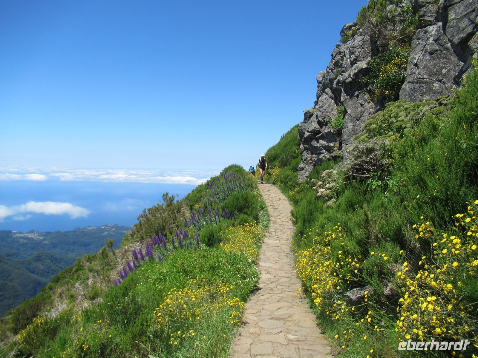 Alle anderen schreiten weiter und an vielen Stellen bewundern wir nicht nur die umliegende Berge, Schluchten aber auch die Vielfalt der Pflanzen – Madeira Stolz, Margeriten, Ginster und viele andere Blümchen schmücken den Weg – und dass in dieser Höhe.