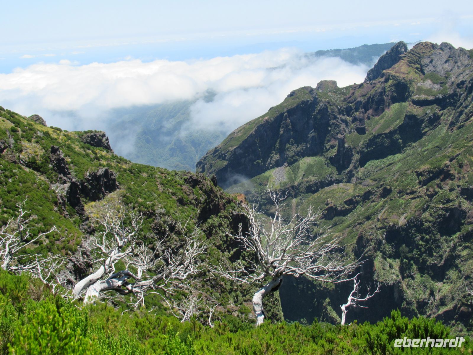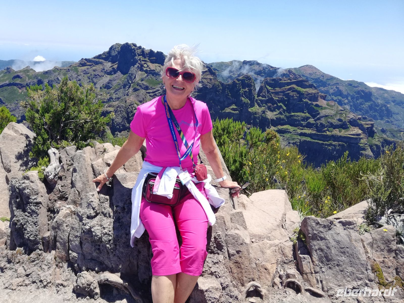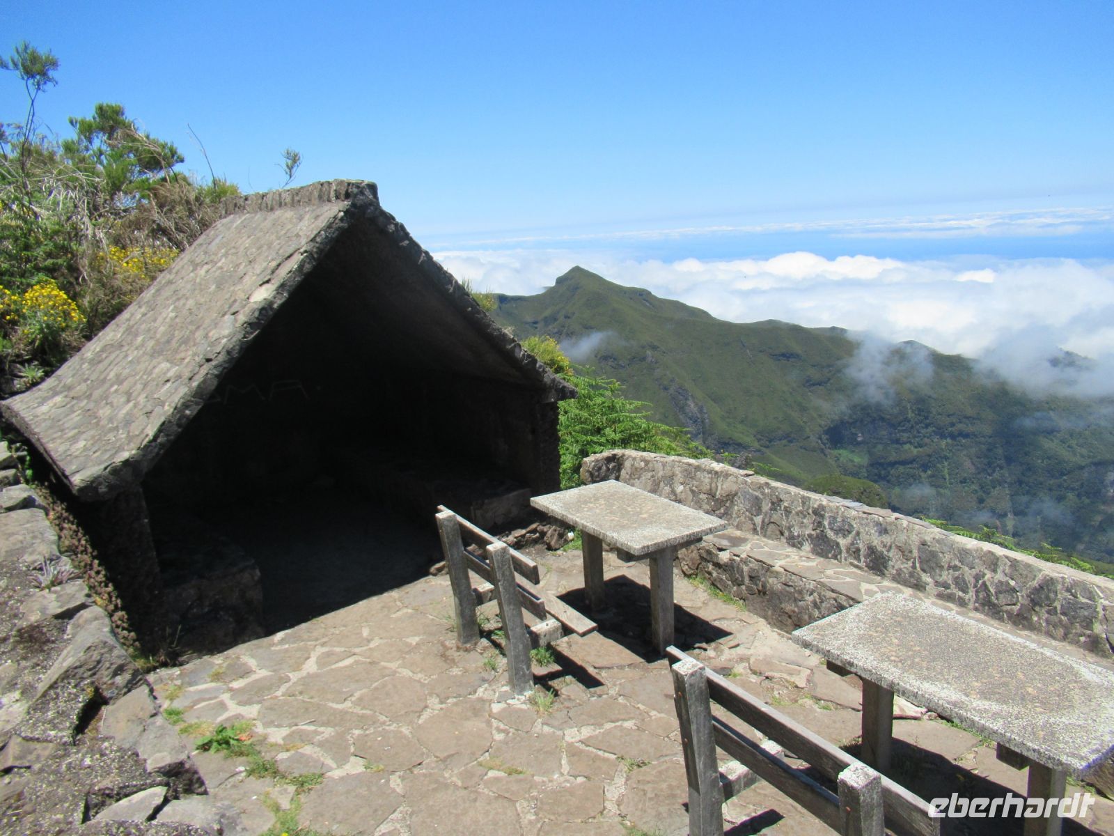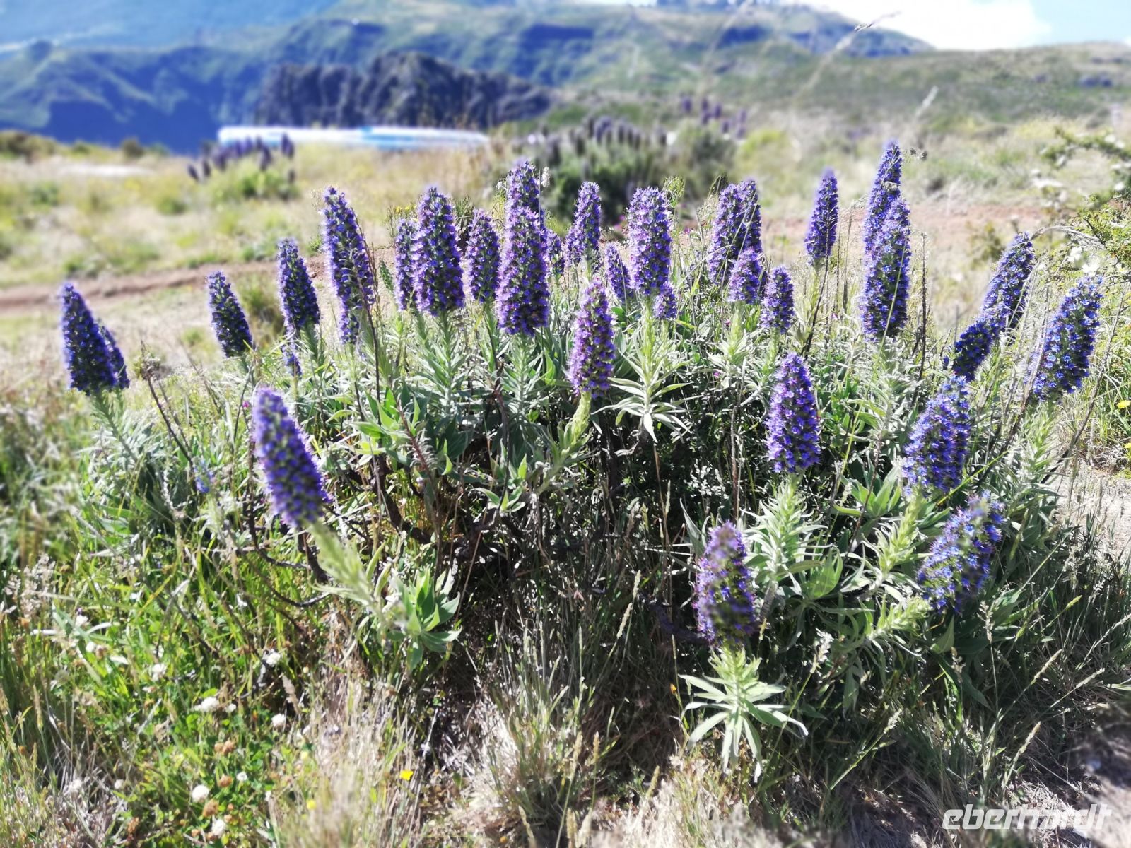Alle anderen schreiten weiter und an vielen Stellen bewundern wir nicht nur die umliegende Berge, Schluchten aber auch die Vielfalt der Pflanzen – Madeira Stolz, Margeriten, Ginster und viele andere Blümchen schmücken den Weg – und dass in dieser Höhe.