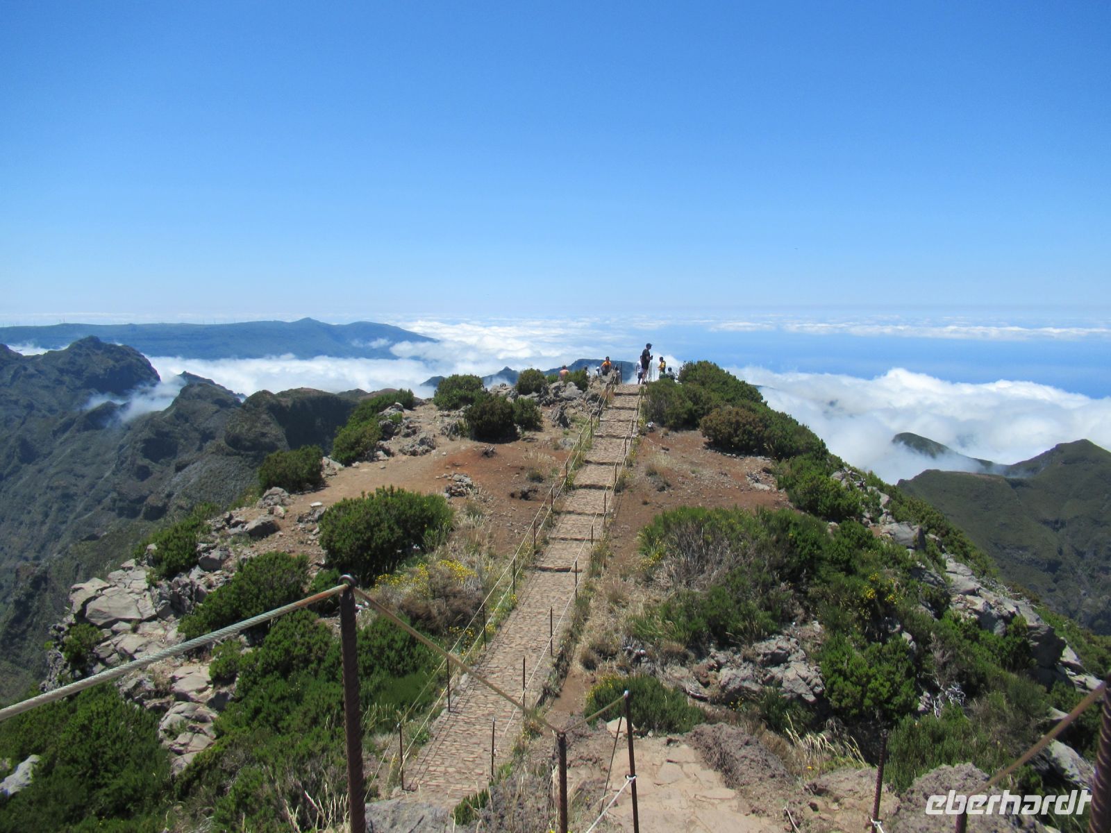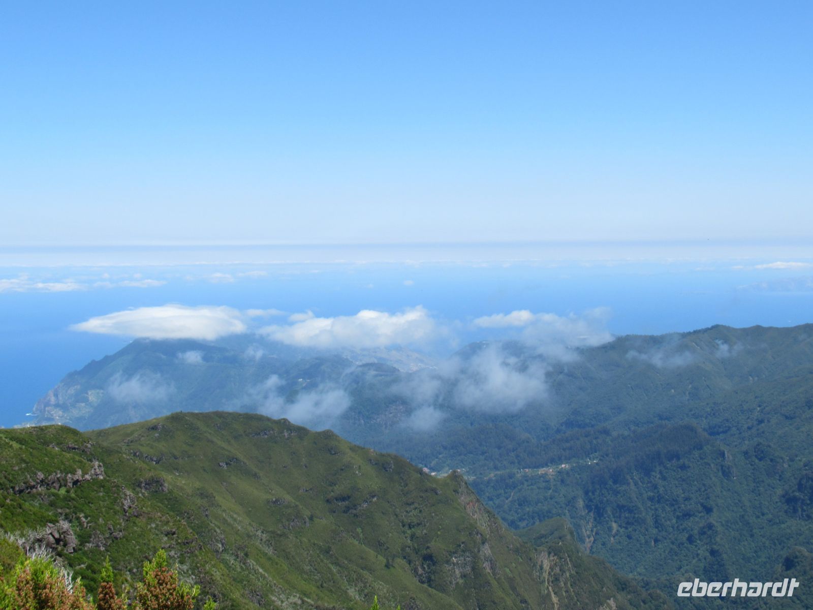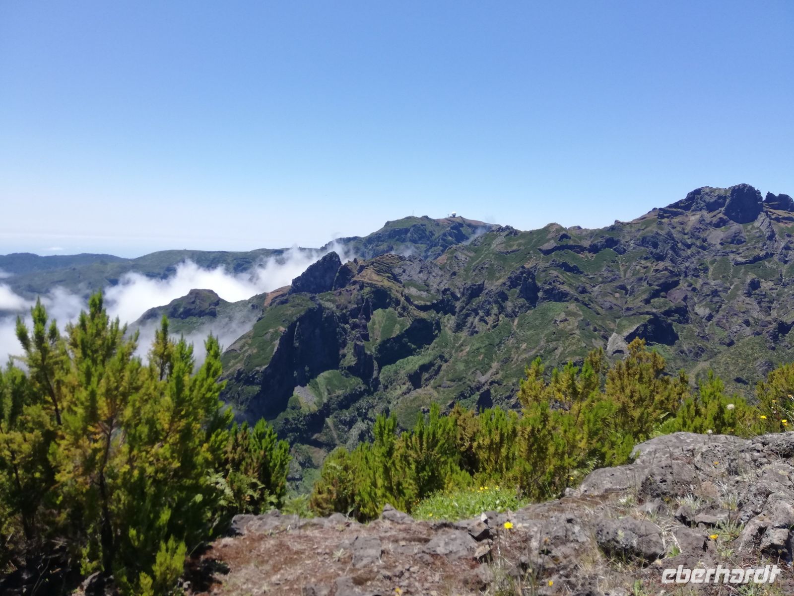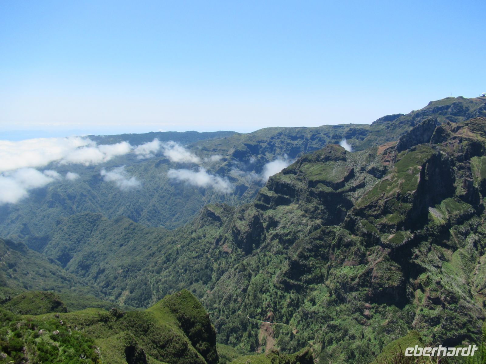 Auf dem höchsten Berg vom Madeira zu stehen ist schon ein Erlebnis und die Aussichten rundum auf die Berge und Täler belohnen uns für den Aufstieg. Ich persönlich war schon oftmals in der Bergen aber so eine klare Sicht, das ist wirklich selten. Wir hatten das Glück! Auf dem Rückweg konnten wir sogar die Wellen im Meer sehen – einfach gigantisch. Voller Faszination steigen wir langsam denselben Weg zurück und treffen an der Talstation die Frauen, die hier ebenfalls die Aussicht genossen und einen Plausch beim Kaffee oder einem kühlen Getränk hielten.