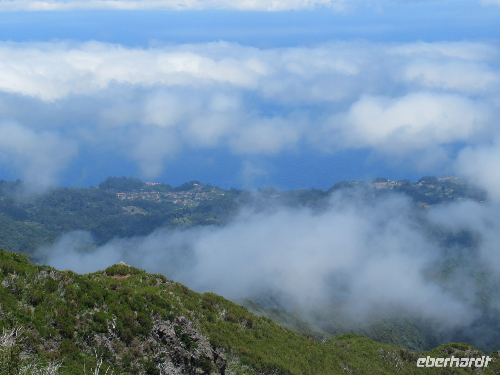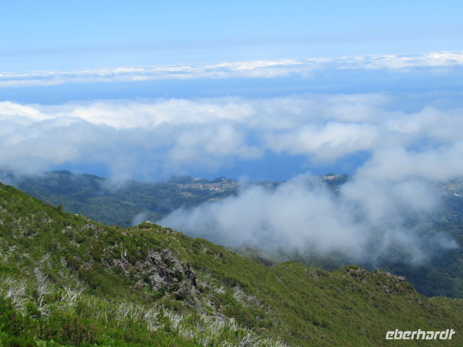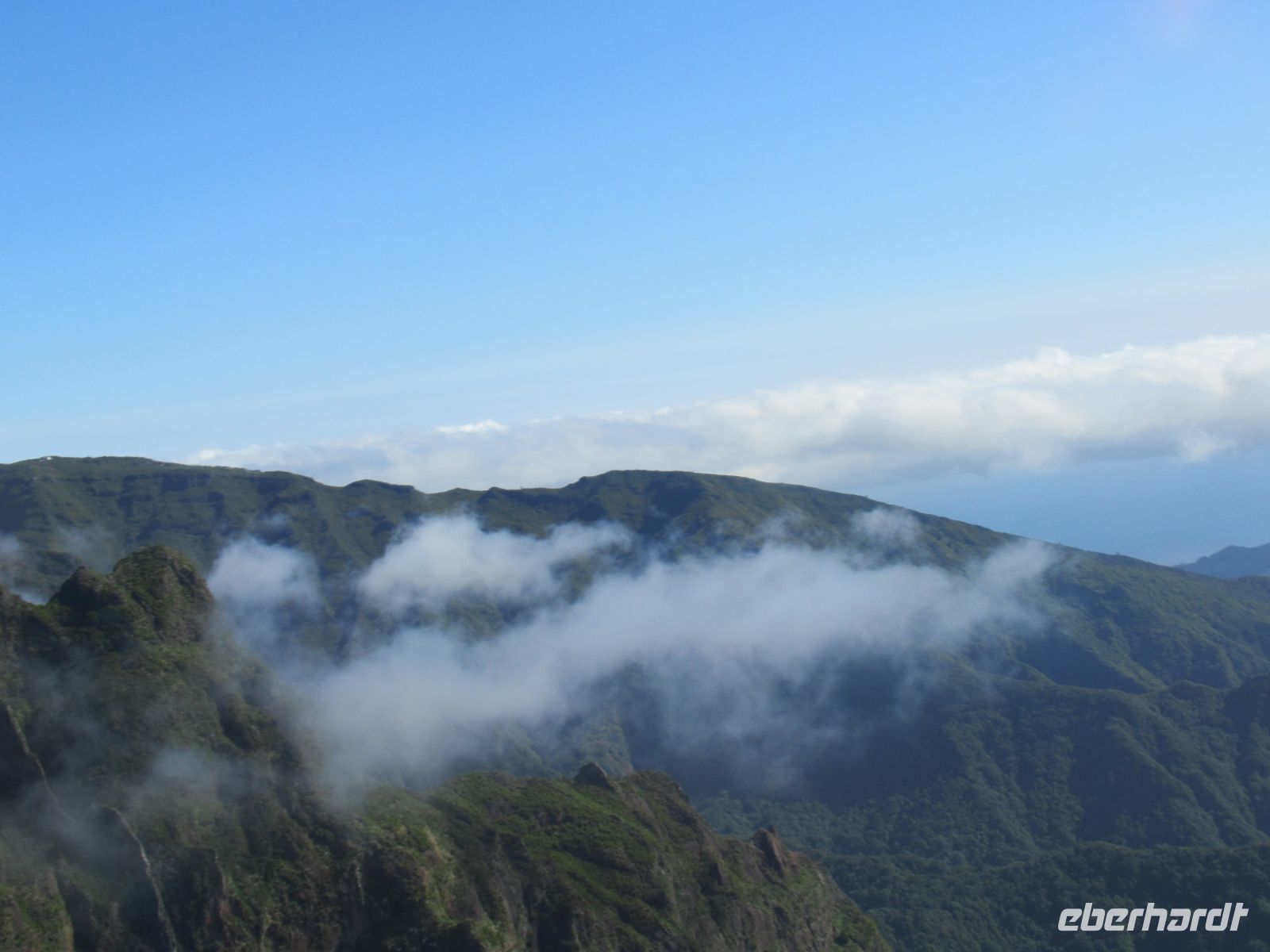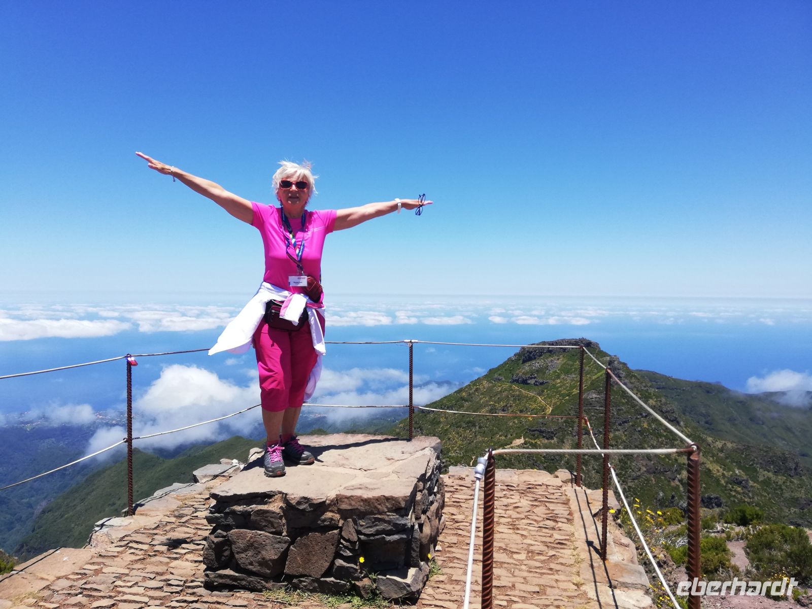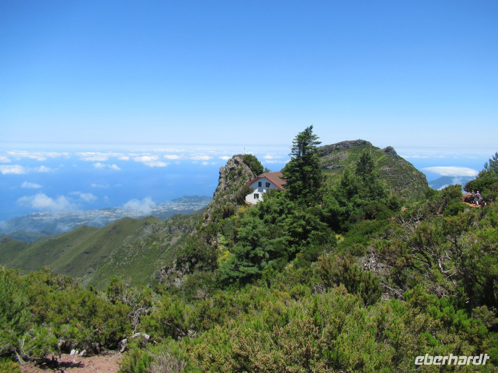 Auf dem höchsten Berg vom Madeira zu stehen ist schon ein Erlebnis und die Aussichten rundum auf die Berge und Täler belohnen uns für den Aufstieg. Ich persönlich war schon oftmals in der Bergen aber so eine klare Sicht, das ist wirklich selten. Wir hatten das Glück! Auf dem Rückweg konnten wir sogar die Wellen im Meer sehen – einfach gigantisch. Voller Faszination steigen wir langsam denselben Weg zurück und treffen an der Talstation die Frauen, die hier ebenfalls die Aussicht genossen und einen Plausch beim Kaffee oder einem kühlen Getränk hielten.