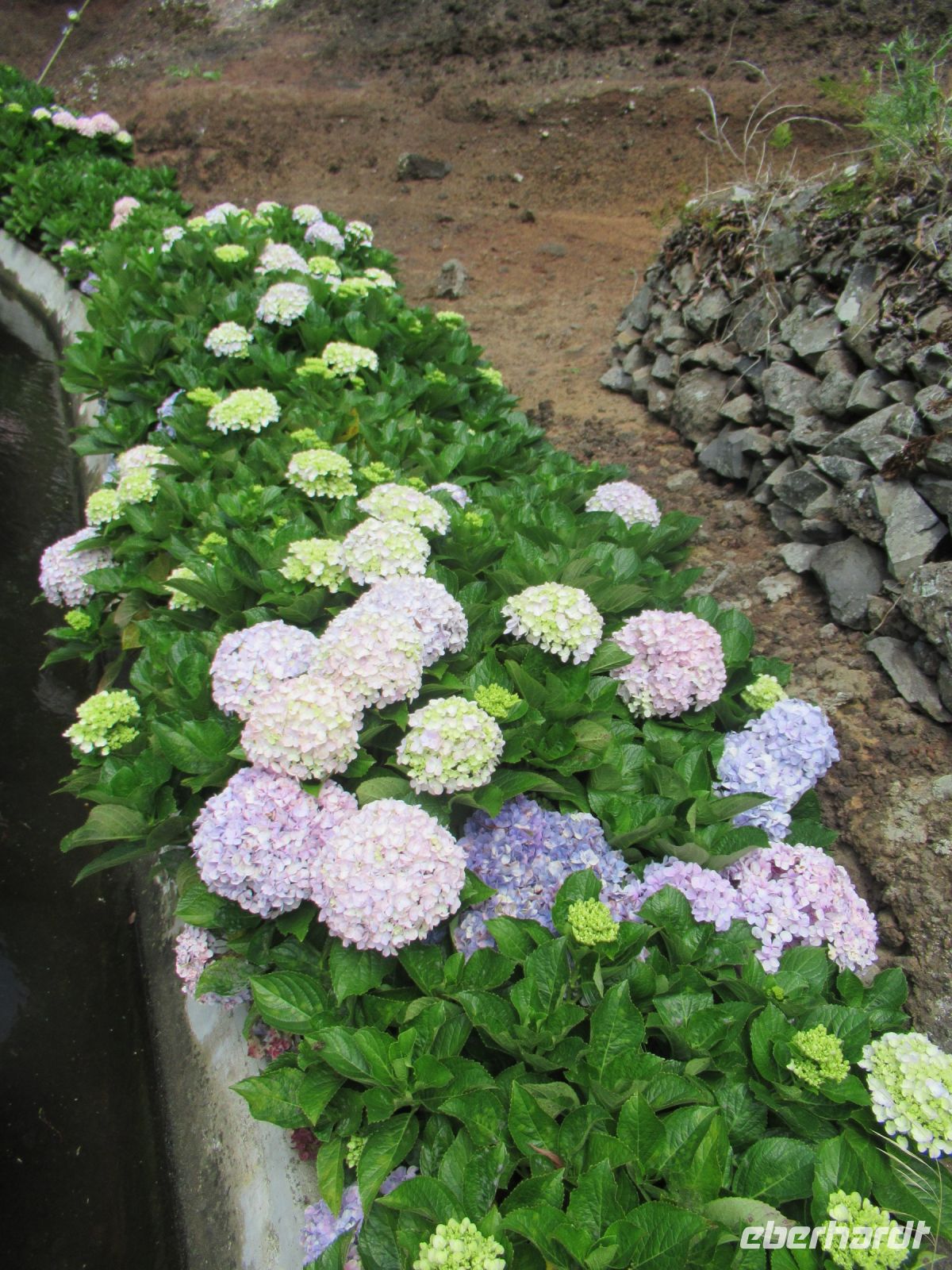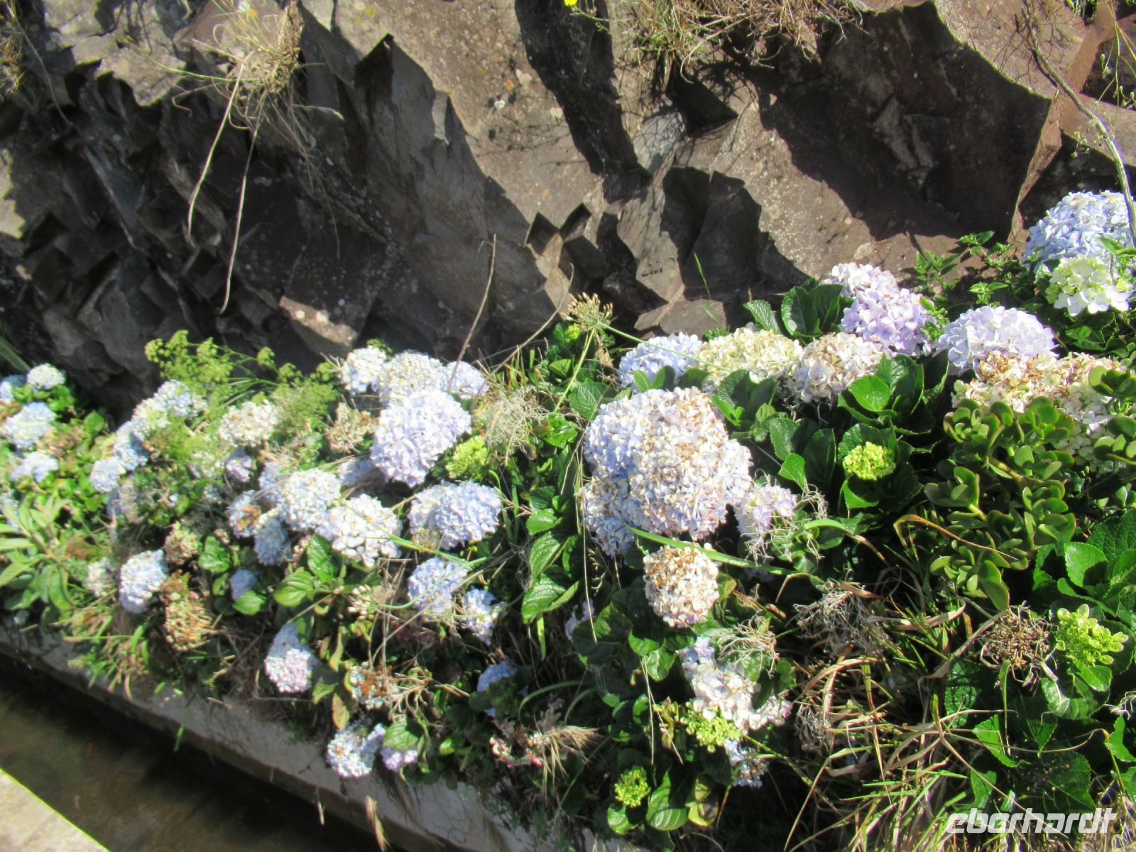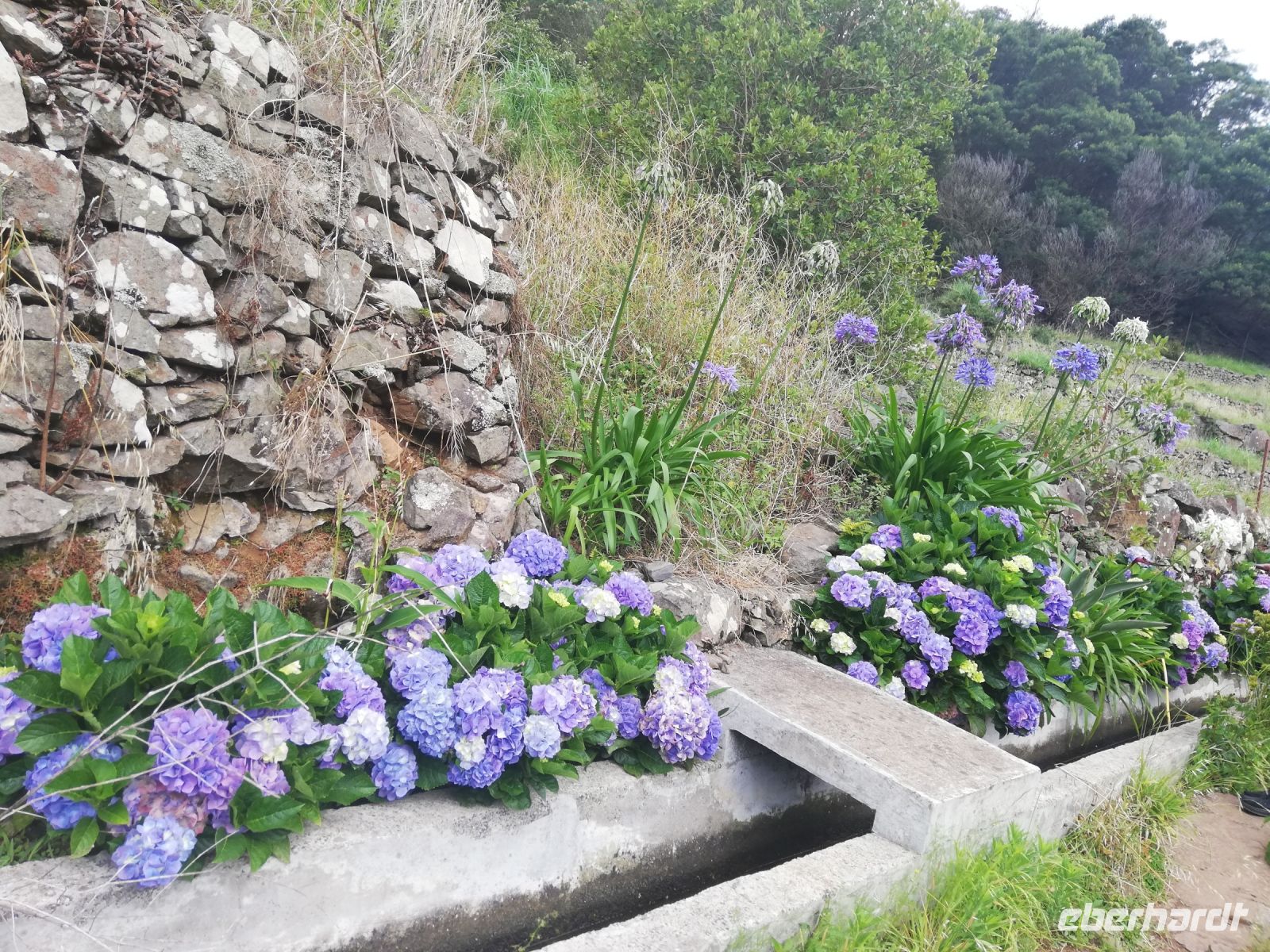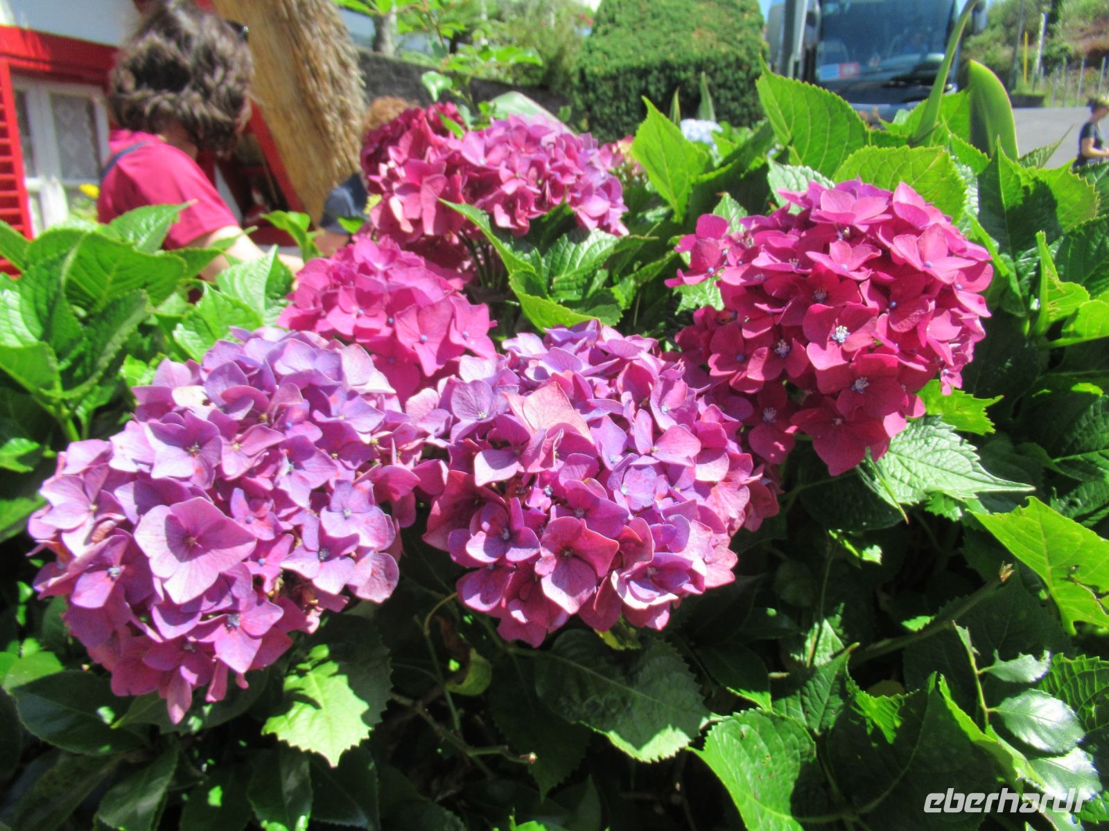 Nun fahren wir die Straßen hinunter Richtung Santana Die Straßen sind von Hortensienbuschen in überdimensionale Größe gesäumt. Die zarte blau-weiß-lila Blüten machen den Weg zu einer Augenweide. Ich persönlich habe mich auf dieser Reise verliebt – in Hortensien.
