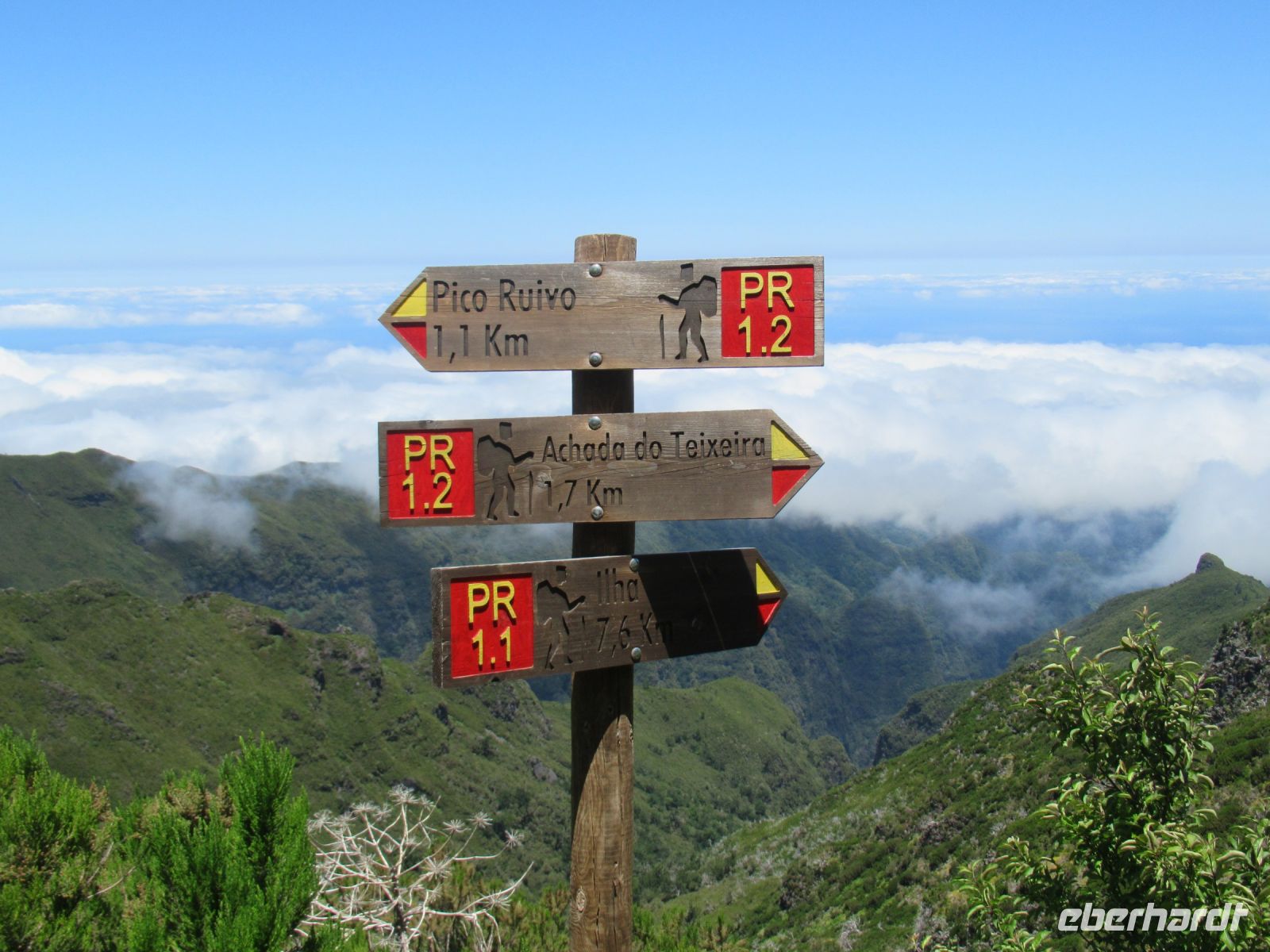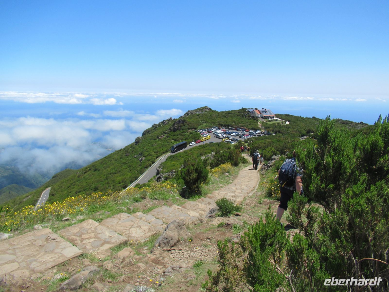 Voller Eindrücke fahren wir zu dem Ausgangspunkt unseres Aufstiegs Achada do Teixtera in 1592 M Höhe bis Pico Ruivo in 1.862 M Höhe. Zwei Damen haben sich entschieden an der Talstation zu bleiben, wir alle wollen den Berg besteigen. Die Sonne scheint und die Sicht ist gestochen scharf.