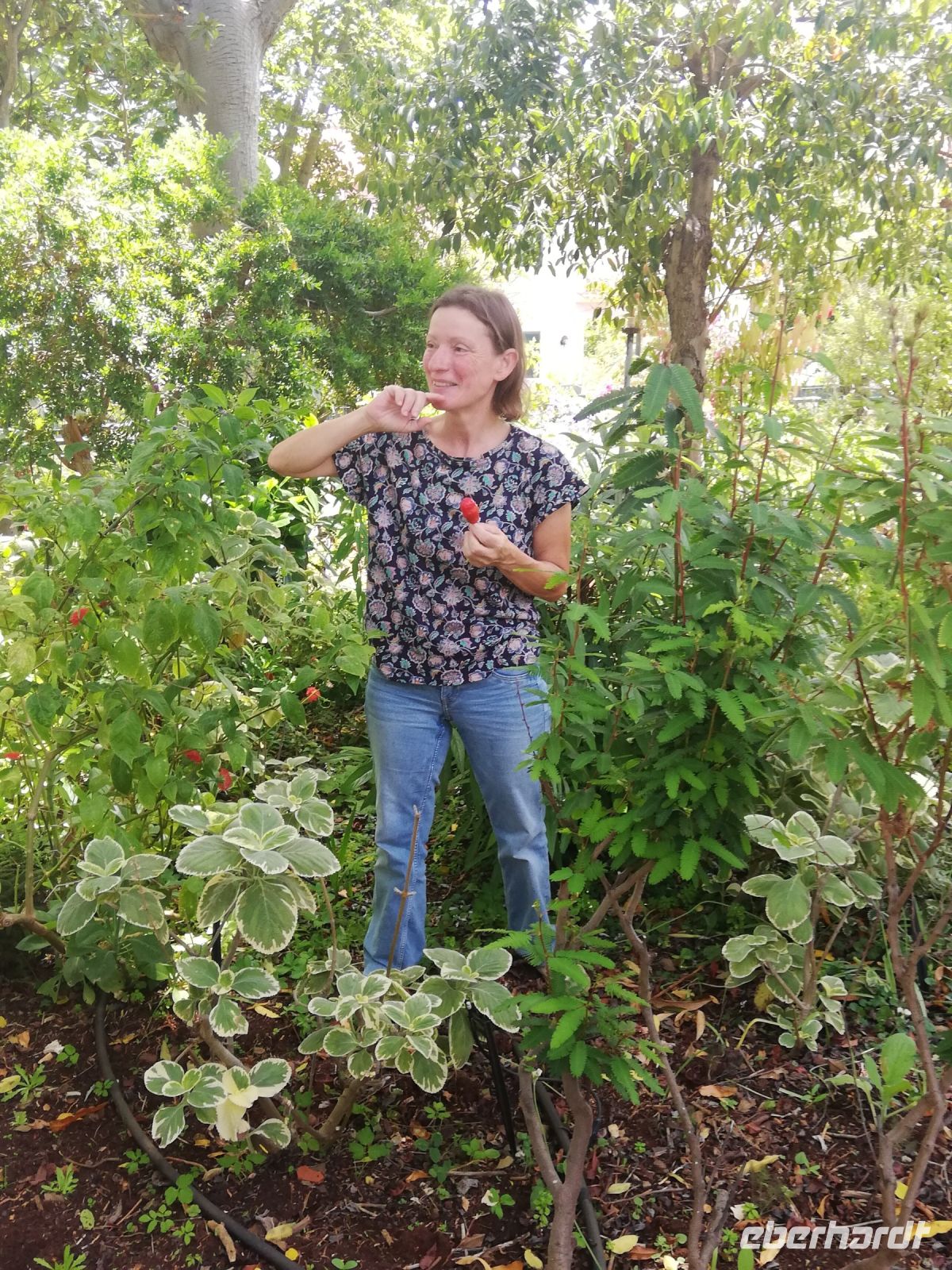 Madeira ist nicht nur Blumeninsel, denn durch das günstige Klima gedeihen hier auch viele nützliche Pflanzen mit Heilwirkung. Diesem Thema hat sich Esmeralda, eine ehemalige Reiseleiterin nach einer Krankheit verschrieben. In ihrem privaten Garten gedeihen außer Blumen vor allem Heilkräuter und Gewürzpflanzen. Sie hat uns in einer sehr interessanten Runde durch Ihren Garten nicht nur die Wirkung, Anwendung und Pflege erklärt, sondern auch Anfassen, Probieren, Schmecken lassen.