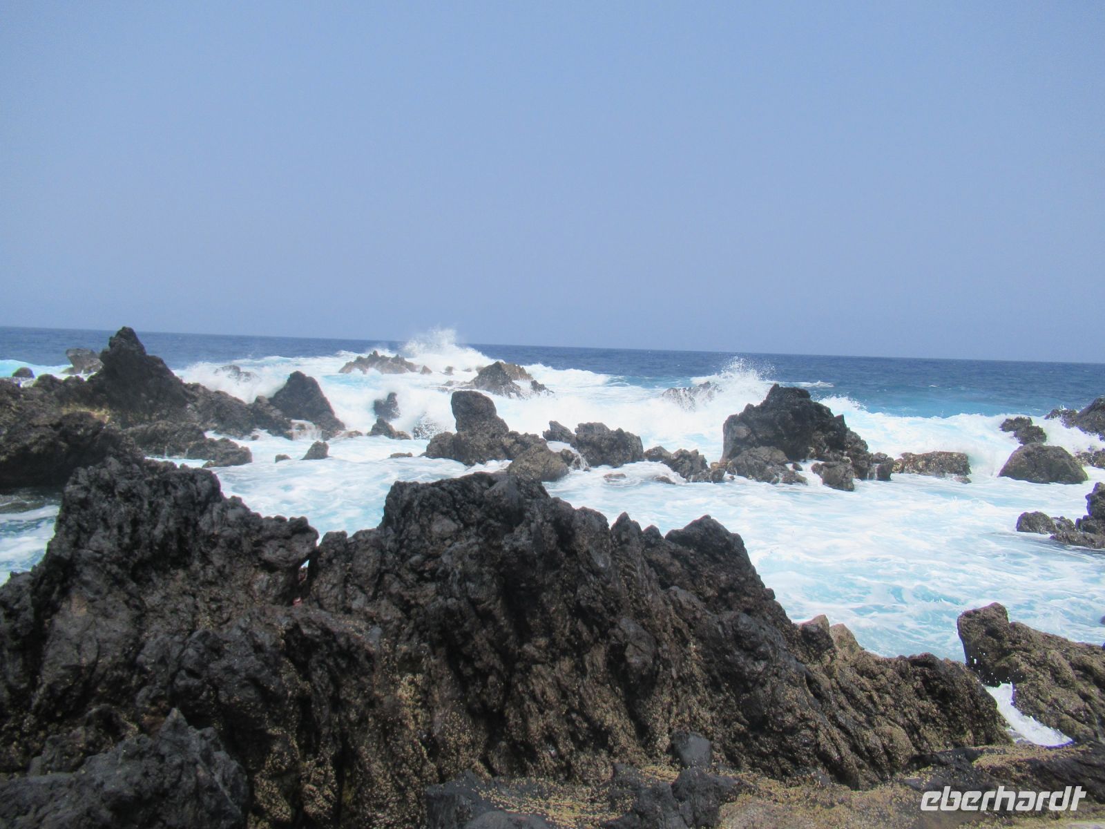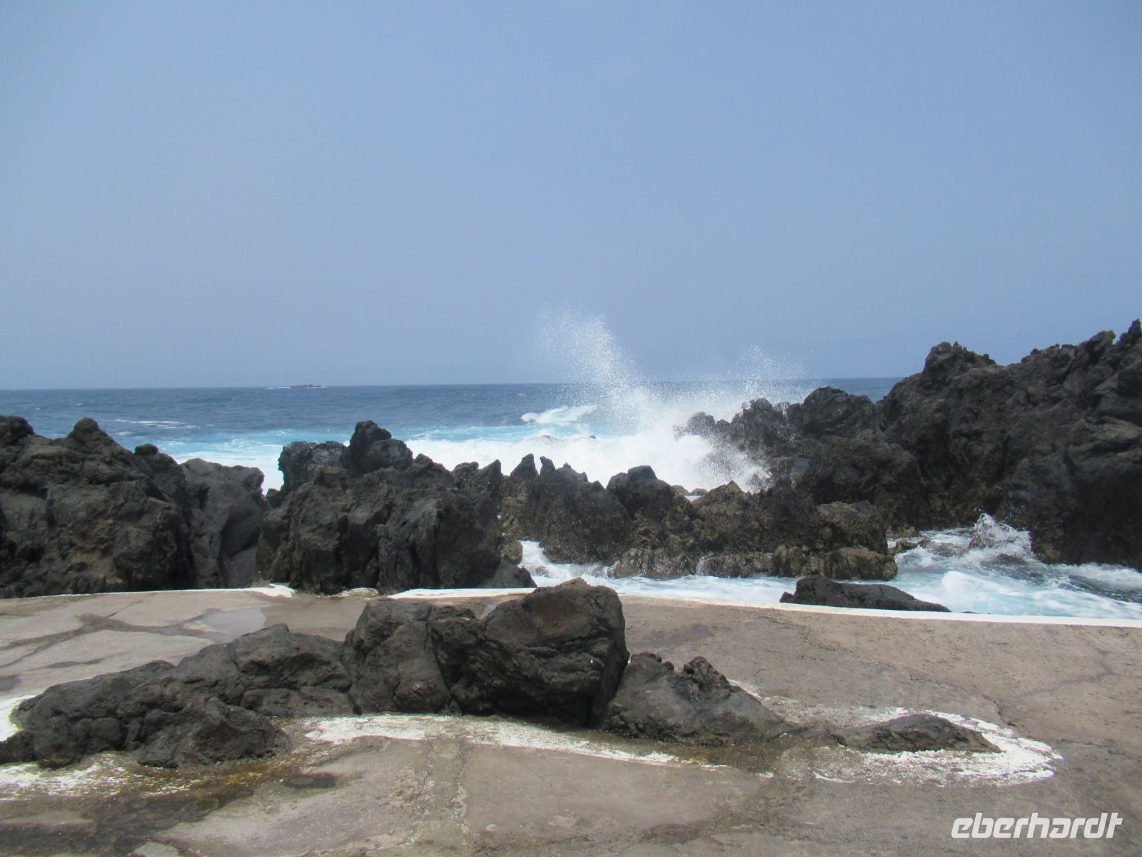Die Wellen schlagen an die umliegenden Felsen und versprühen das Wasser auf die begeisterten Badegäste und Fotografen…