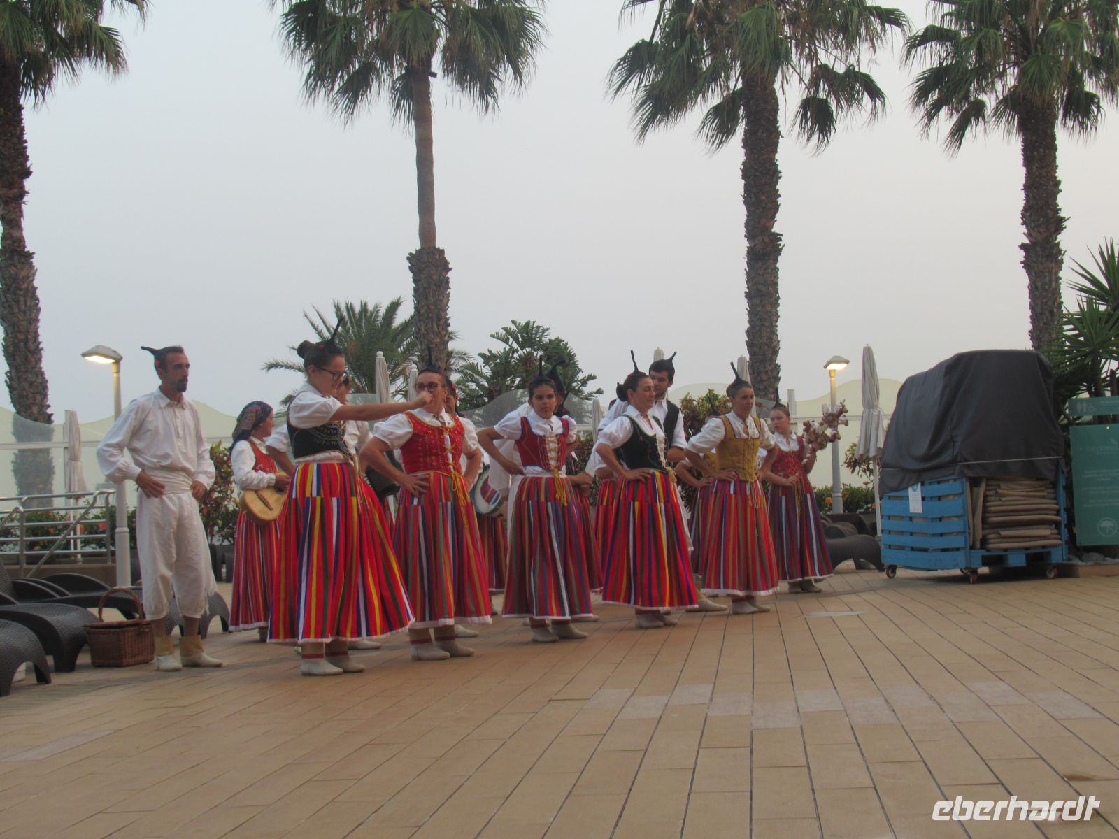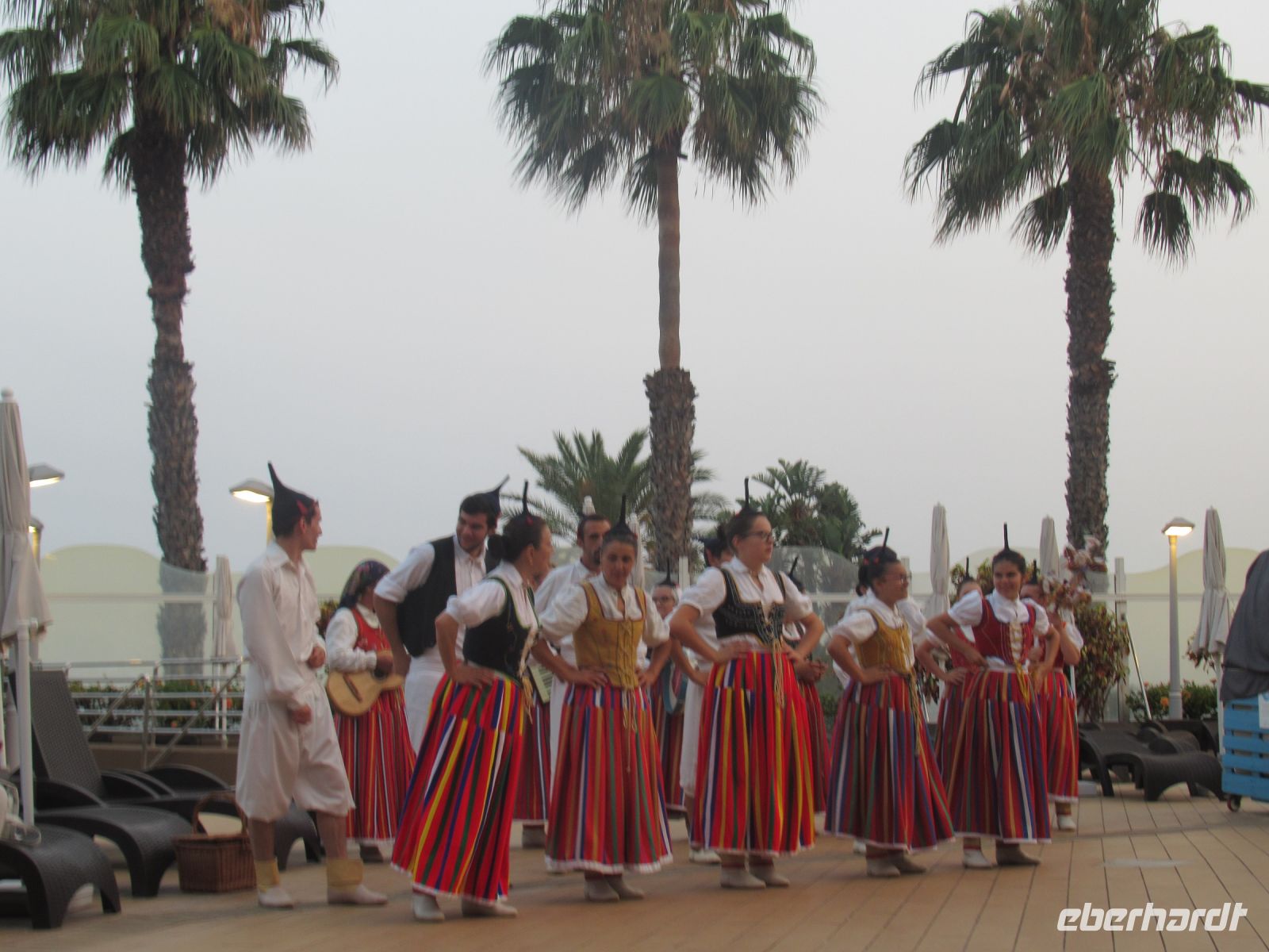 Die Stimmung begleitete erstmal eine Blaskapelle, aber dann kamen die Tänzerinnen und Tänzer mit den traditionellen Instrumenten und Trachten und habe den Gästen die Volkstänze, Musik, Gesang und Trachten präsentiert. Die Freude am Tanzen haben sie auch an die Gäste übertragen, die sie in den Tanzkreis mit eingezogen haben. Lebensfreude pur! So ein schöner Abschluss der Woche auf Madeira!