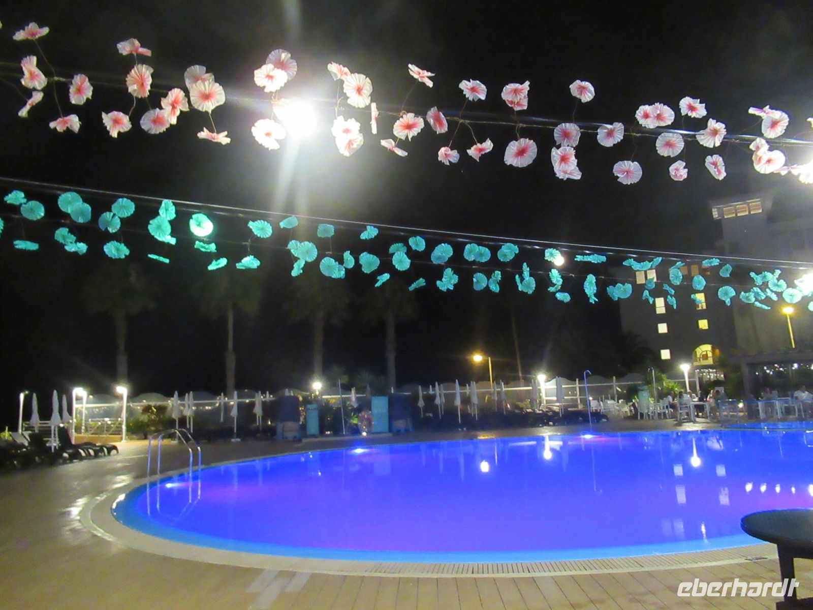 Ein paar Gäste, die nicht baden wollten, spazierten zu dem Schwimmbecken an dem Turm.