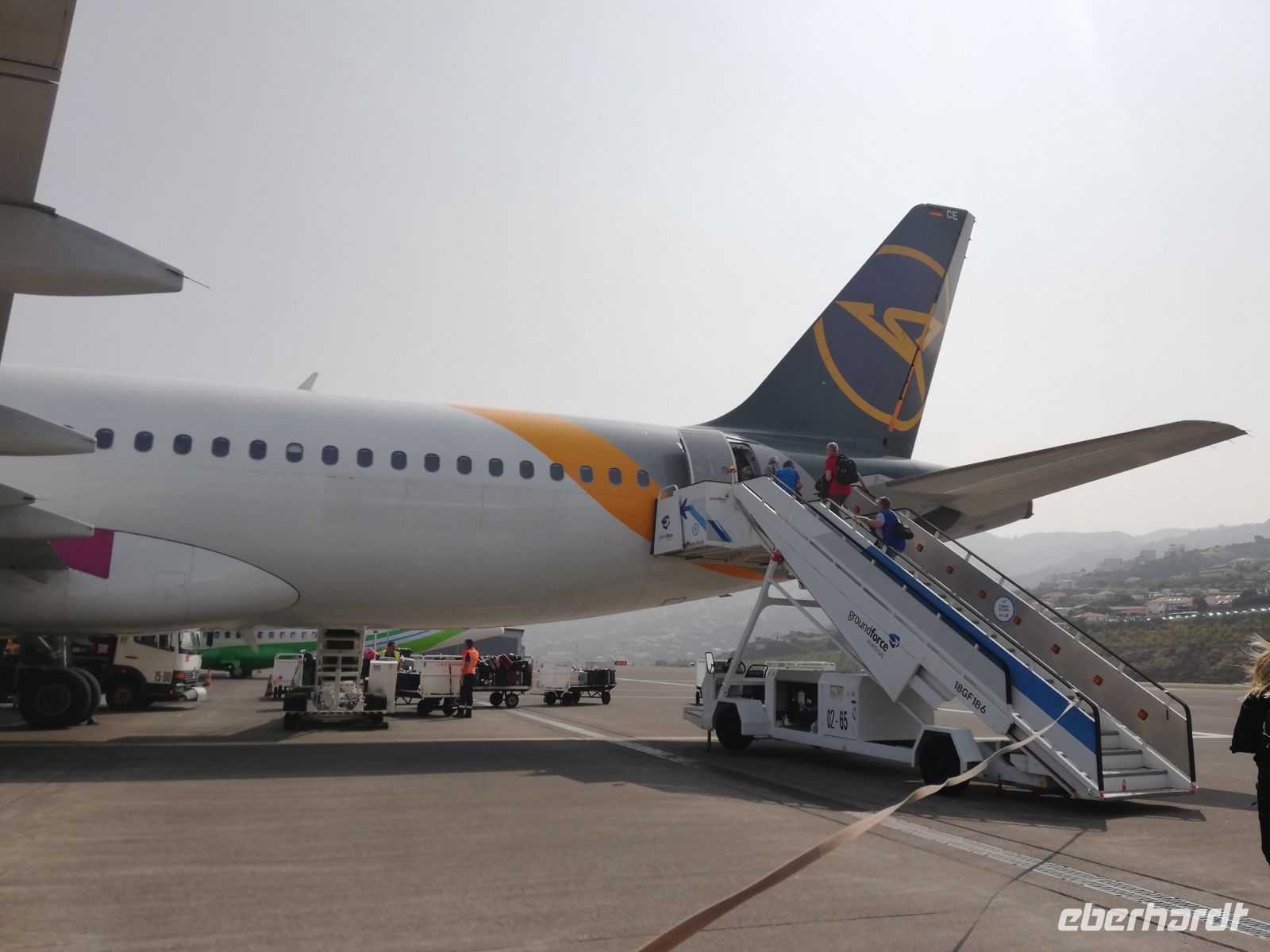 Zwei Gäste und ich trafen sich am Gate und wir fliegen ohne Verzögerung nach Frankfurt. Erst nach der Landung in Frankfurt haben wir erfahren, das der Flieger von Leipzig durch starke Winde in Funchal nicht landen konnte und musste auf Porto Santo zwischenlanden.