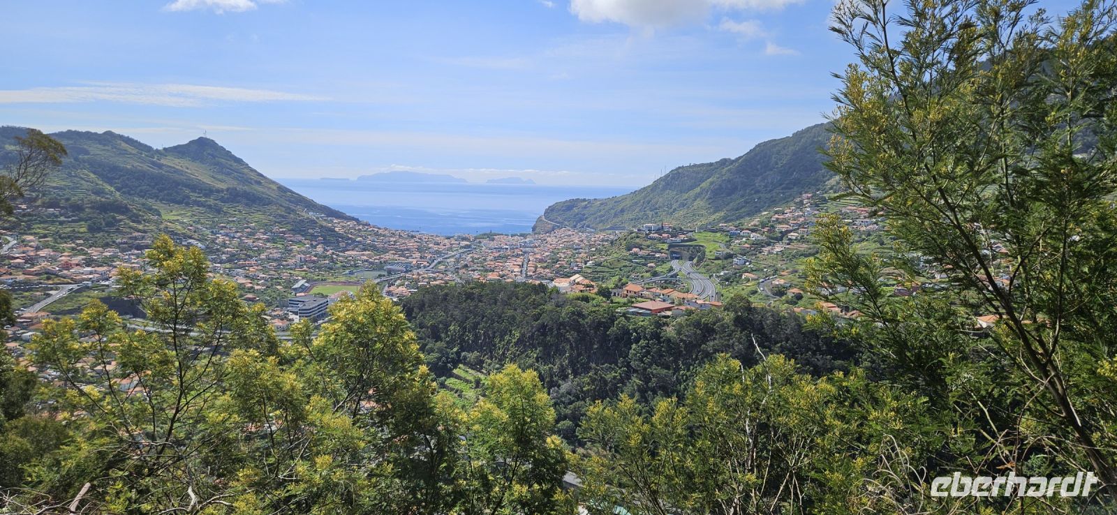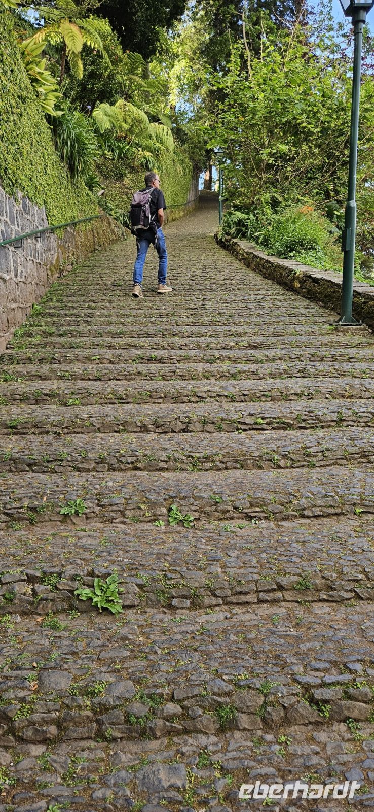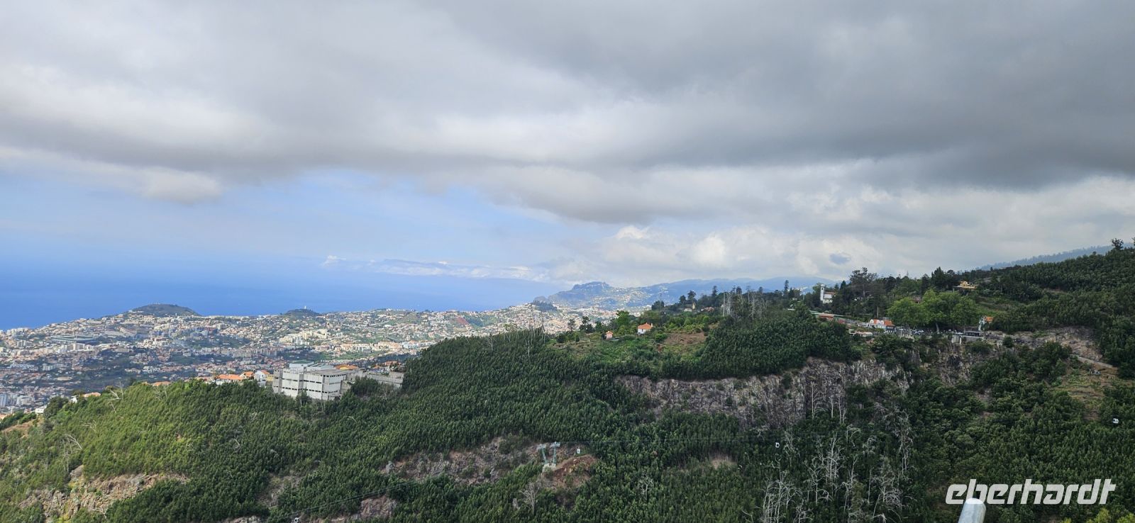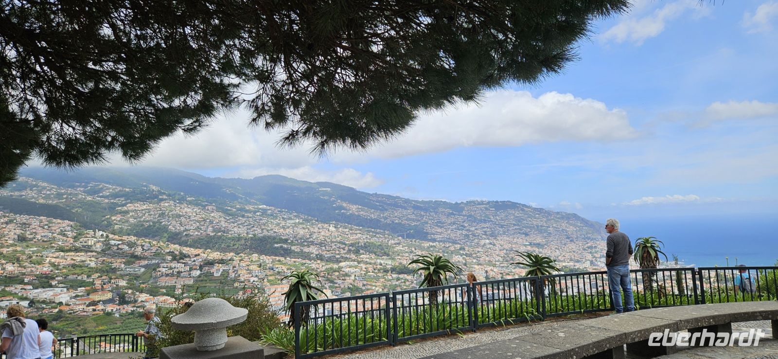 Gleich nach dem Frühstück fuhren wir mit unserem Bus hinauf nach Monte und begaben uns sogleich zum Startpunkt der Korbschlitten. Zu dritt oder zu zweit nahmen wir Platz und sausten mit den historischen Korbschlitten, gelenkt von je zwei erfahrenen Männern, die 2 km lange Strasse bergab. Bis zu 50 km/h erreichen die Korbschlitten und besonders in den Kurven machte es großen Spass. Mit dem Bus fuhren wir wieder hinauf zum Startpunkt und besuchten die Kirche Nossa Senhora do Monte mit dem Grab des letzten ösrterreichischen Kaisers. Ab dort begann unsere Wanderung zunächst hinüber zur Bergstation der Seilbahn und dann weiter auf einem alten Pilgerweg nach Curral dos Romeiros. Der Weg ging zunächst bergab, über eine Brücke und am gegenüberliegenden Hang wieder steil bergan. Wieder oben sahen wir hinüber nach Monte und hinunter nach Funchal. Es folgte ein Stück entlang der dicht bewachsenen Levada dos Tornes auf einem wildromantischen Weg. Riesige Eukalyptusbäume konnten wir unterwegs bestaunen. Umberto erwartete uns am Abstieg von der Levada und mit ihm fuhren wir zum Eira do Serrada, einem Aussichtspunkt über dem Nonnental. Dort machten wir unsere Mittagspause, spazierten hinauf zum Aussichtspunkt auf 1096 m Höhe und genossen die Aussicht hinunter ins Nonnental. Die hohen Gipfel ringsum waren in den Wolken und einzelne Wolkenfetzen zogen über den Pass am Eira do Serrado und boten so spektakuläre Fotomotive. Auf der Rückfahrt machten wir einen Fotostop am Pico do Barcelos und hatten von dort eine super Rundumsicht auf Funchal. Danach ging es weiter bergab zum Kräutergarten von Esmeralda. Sie erwartete uns schon und zeigte uns in ihrem Gartenreich die verschiedendsten Pflanzen und erklärte ihre Nutzung. Dabei gab es Überrraschendes z.B. beim Lippenstiftbaum zu erfahren. Zum Abschluss ließen wir uns selbst gebackenes Brot mit Chilligelee und verschiedene Säfte und Limonade schmecken. Für das Abendessen wählten wir wieder das Real Canoa, mussten diesmal aber drin sitzen, weil wir nicht reserviert hatten.