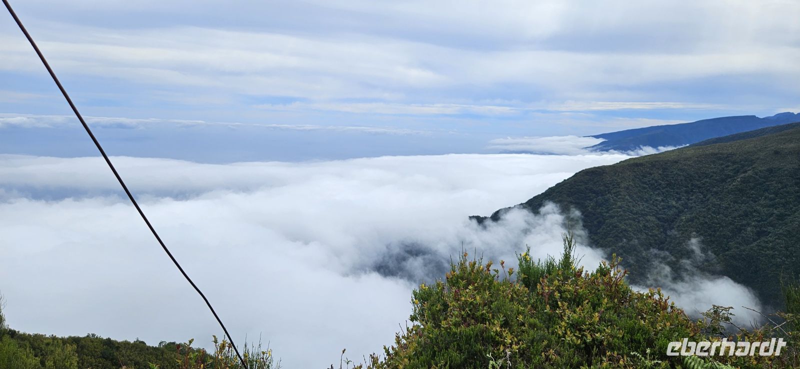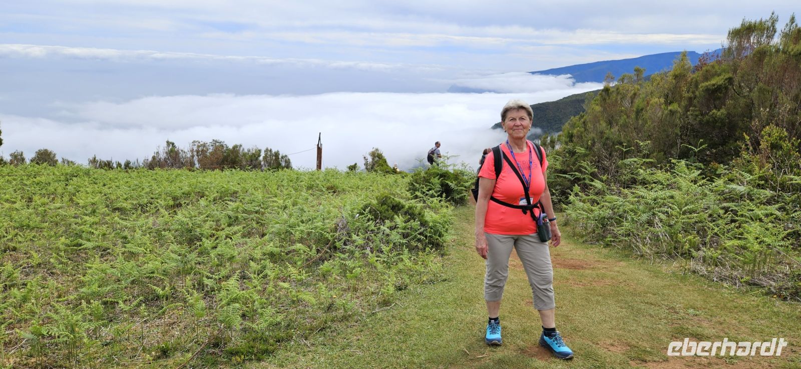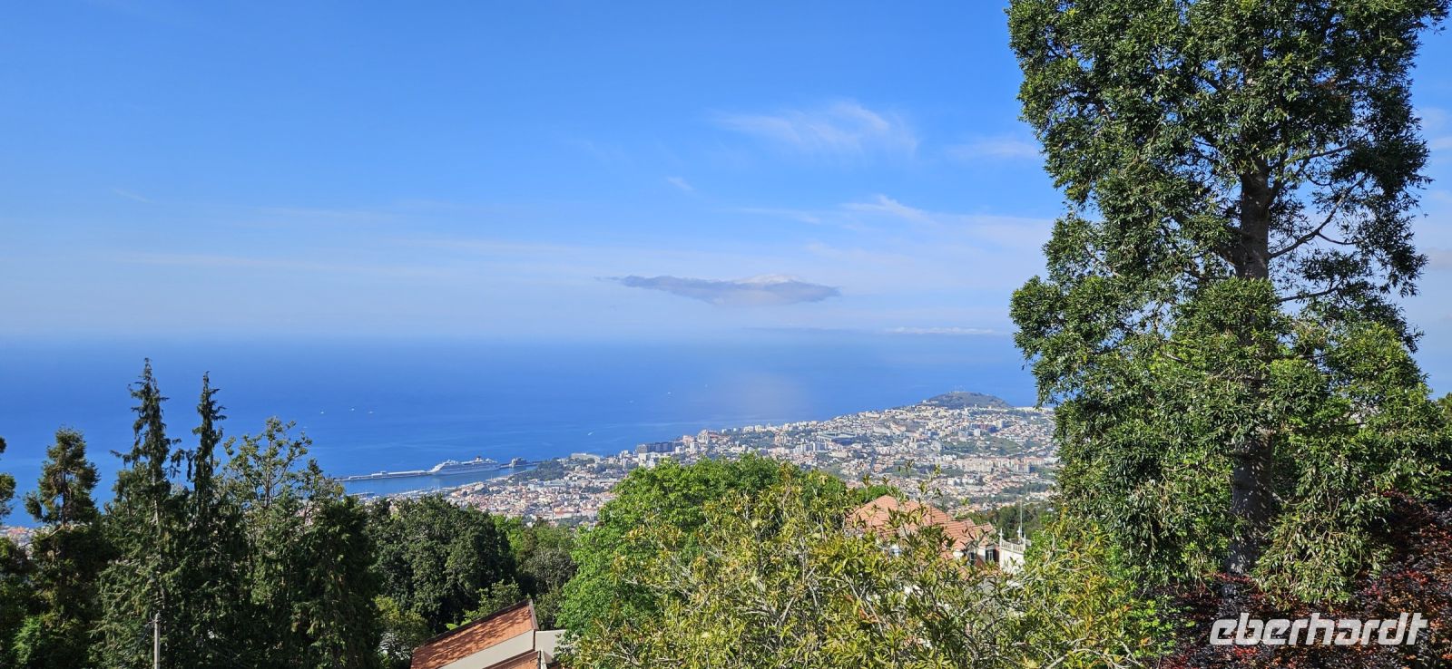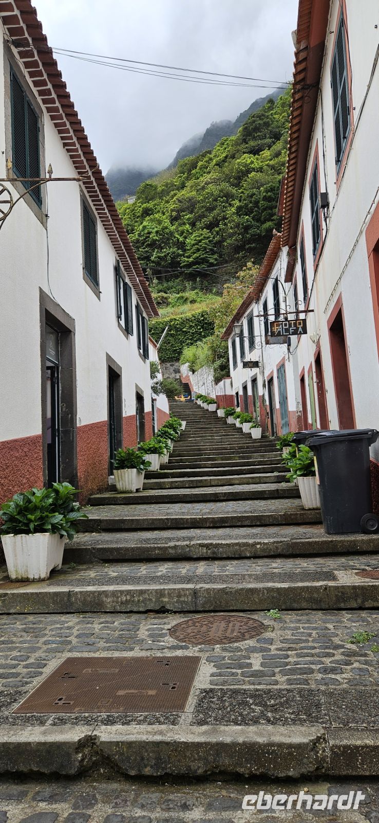 Gleich nach dem Frühstück fuhren wir mit unserem Bus hinauf nach Monte und begaben uns sogleich zum Startpunkt der Korbschlitten. Zu dritt oder zu zweit nahmen wir Platz und sausten mit den historischen Korbschlitten, gelenkt von je zwei erfahrenen Männern, die 2 km lange Strasse bergab. Bis zu 50 km/h erreichen die Korbschlitten und besonders in den Kurven machte es großen Spass. Mit dem Bus fuhren wir wieder hinauf zum Startpunkt und besuchten die Kirche Nossa Senhora do Monte mit dem Grab des letzten ösrterreichischen Kaisers. Ab dort begann unsere Wanderung zunächst hinüber zur Bergstation der Seilbahn und dann weiter auf einem alten Pilgerweg nach Curral dos Romeiros. Der Weg ging zunächst bergab, über eine Brücke und am gegenüberliegenden Hang wieder steil bergan. Wieder oben sahen wir hinüber nach Monte und hinunter nach Funchal. Es folgte ein Stück entlang der dicht bewachsenen Levada dos Tornes auf einem wildromantischen Weg. Riesige Eukalyptusbäume konnten wir unterwegs bestaunen. Umberto erwartete uns am Abstieg von der Levada und mit ihm fuhren wir zum Eira do Serrada, einem Aussichtspunkt über dem Nonnental. Dort machten wir unsere Mittagspause, spazierten hinauf zum Aussichtspunkt auf 1096 m Höhe und genossen die Aussicht hinunter ins Nonnental. Die hohen Gipfel ringsum waren in den Wolken und einzelne Wolkenfetzen zogen über den Pass am Eira do Serrado und boten so spektakuläre Fotomotive. Auf der Rückfahrt machten wir einen Fotostop am Pico do Barcelos und hatten von dort eine super Rundumsicht auf Funchal. Danach ging es weiter bergab zum Kräutergarten von Esmeralda. Sie erwartete uns schon und zeigte uns in ihrem Gartenreich die verschiedendsten Pflanzen und erklärte ihre Nutzung. Dabei gab es Überrraschendes z.B. beim Lippenstiftbaum zu erfahren. Zum Abschluss ließen wir uns selbst gebackenes Brot mit Chilligelee und verschiedene Säfte und Limonade schmecken. Für das Abendessen wählten wir wieder das Real Canoa, mussten diesmal aber drin sitzen, weil wir nicht reserviert hatten.