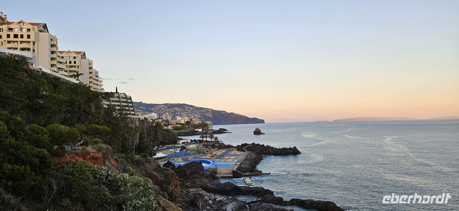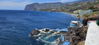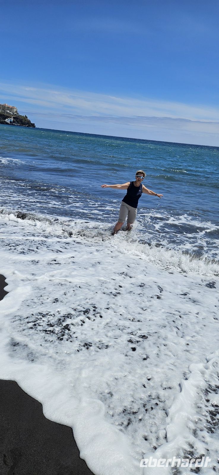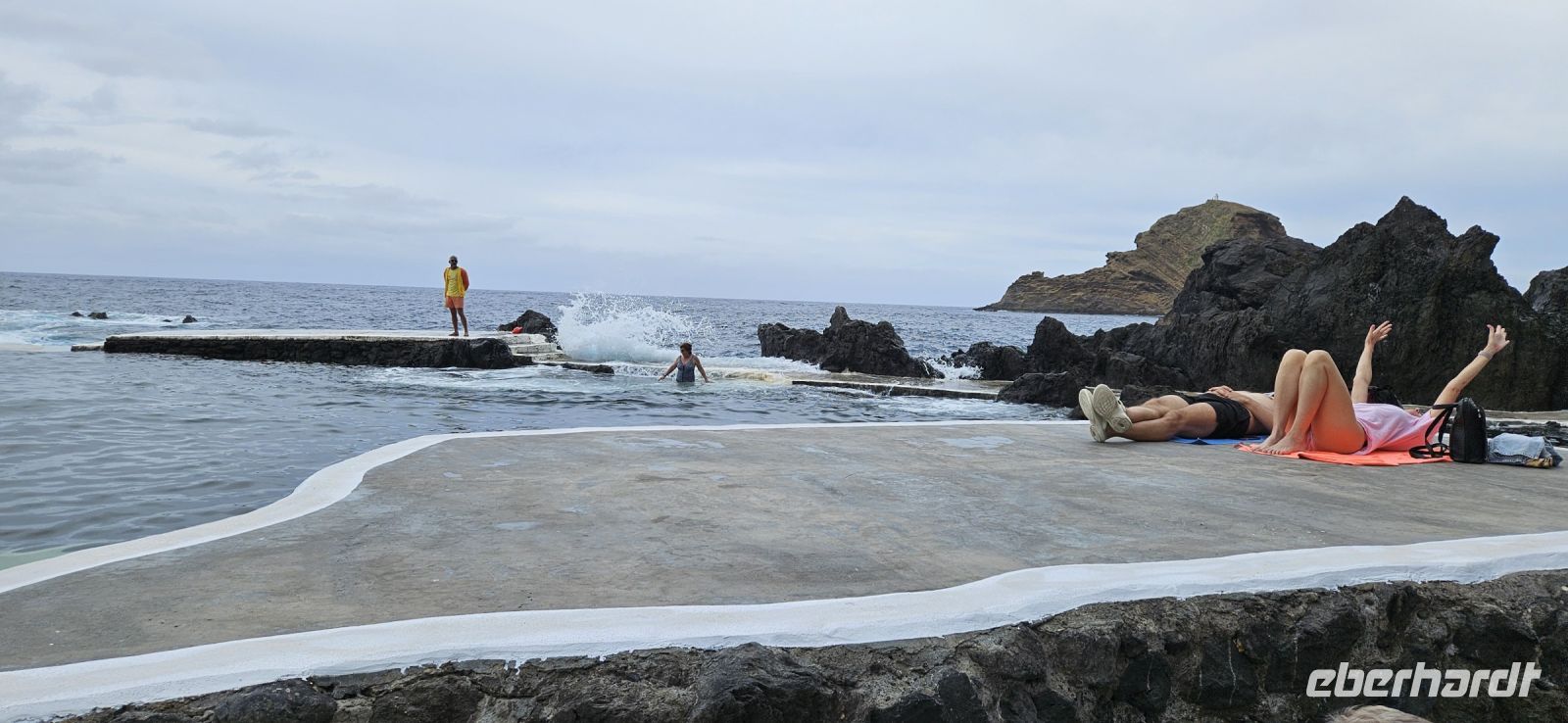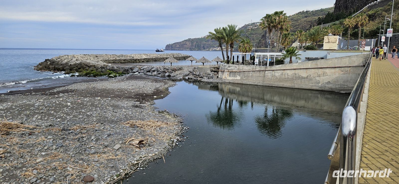 Am Nachmittag machten sich einige Singles mit mir auf den Weg zur Uferpromenade und zum Strand. Es war sehr windig und auf dem Atlantik kleine Schaumkämme und größere Wellen. So beliessen wir es sicherheitshalber beim Baden der Füsse, denn die Strände waren nicht bewacht. Die Strandpromenade kann man bis nach Camara de Lobos laufen und unterwegs gab es auch eine kleine Anlage mit Meerwasserschwimmbecken. Wir gönnten uns ein Eis unterwegs und spazierten dann gemütlich wieder zurück.
