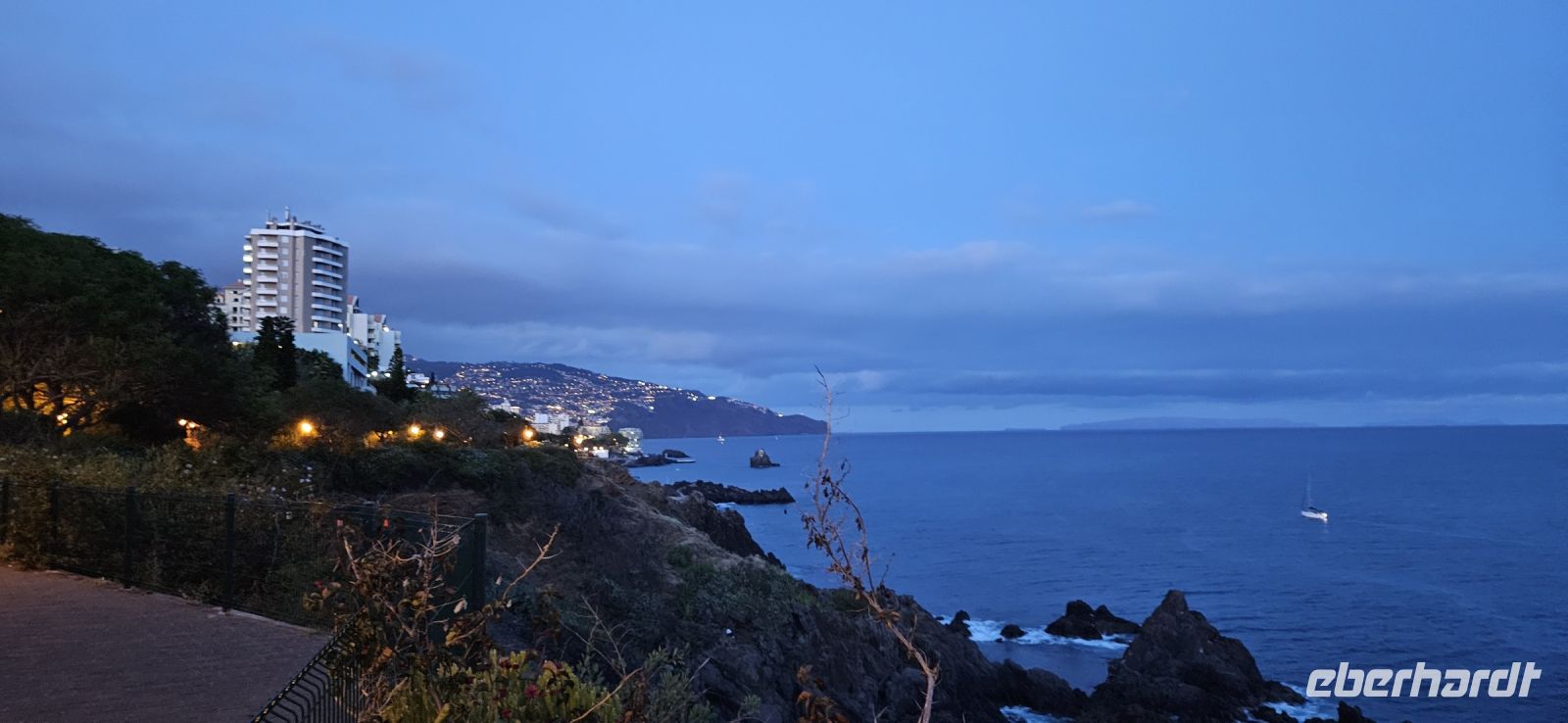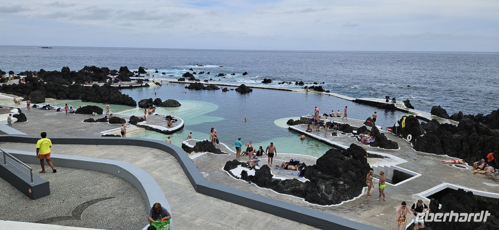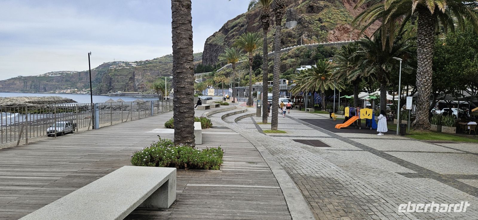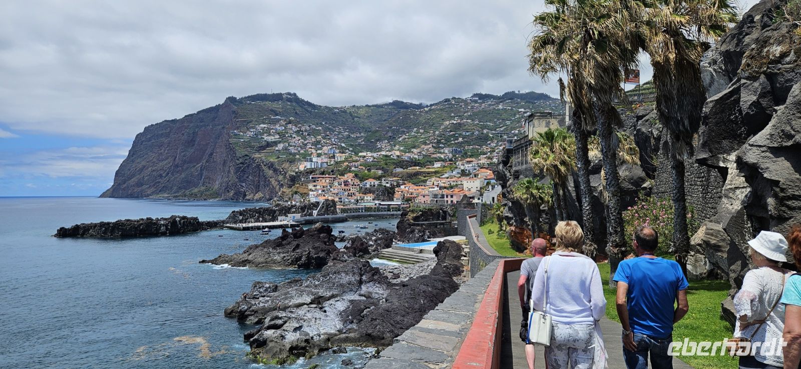 Am Nachmittag machten sich einige Singles mit mir auf den Weg zur Uferpromenade und zum Strand. Es war sehr windig und auf dem Atlantik kleine Schaumkämme und größere Wellen. So beliessen wir es sicherheitshalber beim Baden der Füsse, denn die Strände waren nicht bewacht. Die Strandpromenade kann man bis nach Camara de Lobos laufen und unterwegs gab es auch eine kleine Anlage mit Meerwasserschwimmbecken. Wir gönnten uns ein Eis unterwegs und spazierten dann gemütlich wieder zurück.