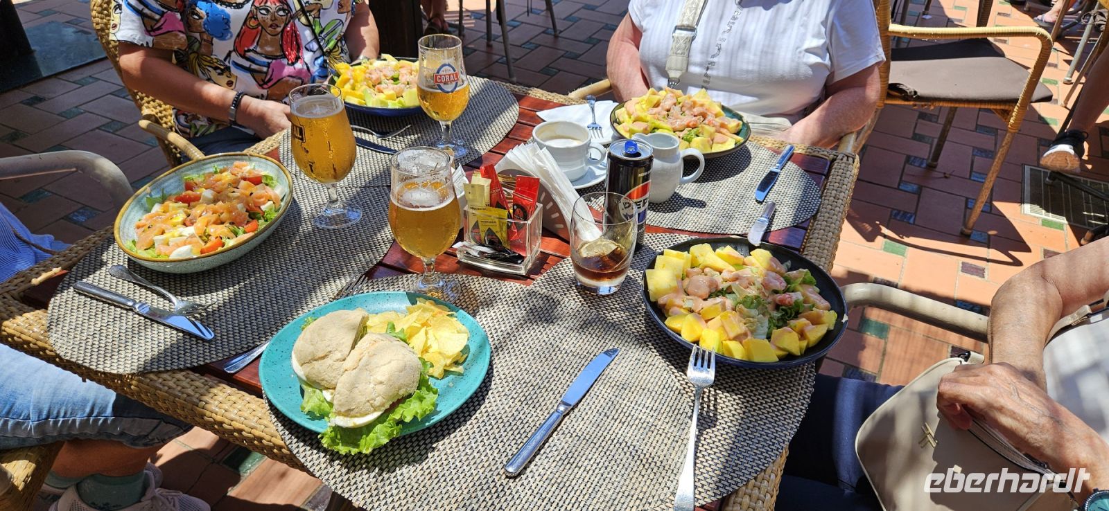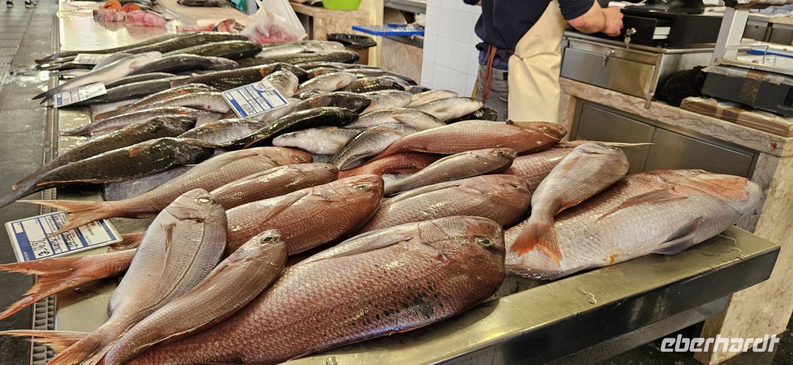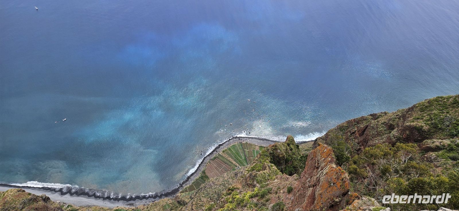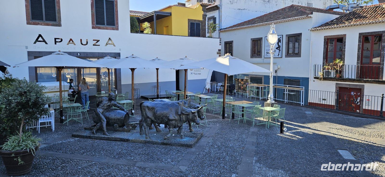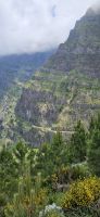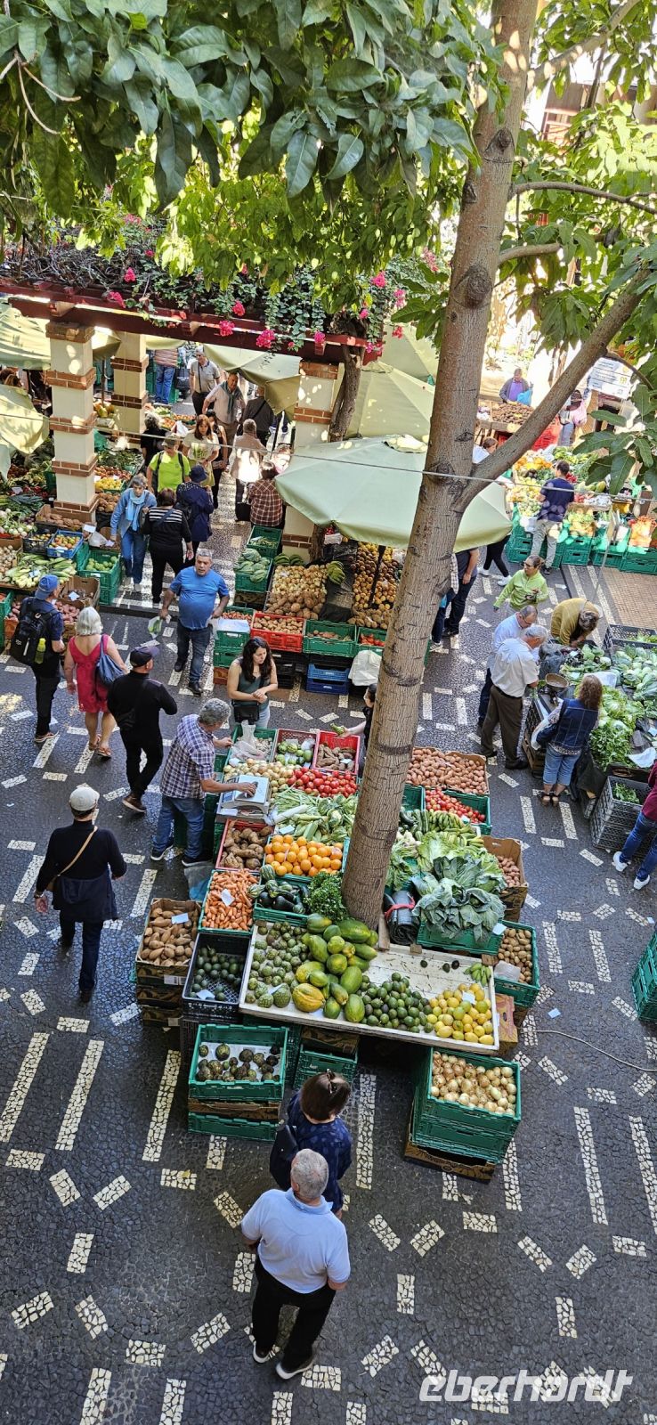 Heute waren wir mit Audio Geräten unterwegs in der Hauptstadt Funchal. Wir begannen mit dem Besuch der Markthalle. Am Freitag kamen zu den üblichen Ständen noch die der Bauern aus der Umgebung hinzu. So war der ganze Innenhof der Markthalle mit frischem Gemüse und Früchten gefüllt und ich ergatterte von einem Bauern einen Strauss mit Nadelkissenproteen. In der Fischhalle bestaunten wir den schwarzen Degenfisch mit seinen großen Augen und scharfen Zänen und Berthold ging mit uns von Stand zu Stand und erzählte welch leckere Gerichte aus den einzelnen Fischen zu zaubern sind. Danach gingen wir zu Fuss durch das Stadtzentrum, besuchten die Kathedrale Se, das Denkmal von Zarco und bestaunten die Blumenteppiche auf den Strassen. In Blandy´s Weinlodge probierten wir einen süssen und einen trockenen 5 Jahre alten Madeira Wein und anschliessend besichtigten wir die Weinlager. Durch den kleinen Park daneben gingen wir zurück zum Bus und der brachte uns hinauf zum Botanischen Garten der Stadt Funchal. Berthold zeigte uns die wichtigsten Pflanzen und Bäume und zum Schluss auch den Nutzgarten des Botanischen Gartens. Er berichtete über die Verwendung der einzelnen Pflanzen und Früchte und schliesslich stibitzten wir die leckeren Früchte vom Pitangueira Baum. Im Cafe auf der Terrasse machten wir eine verspätete Mittagspause und stärkten uns für das weitere Programm. Mit unserem Bus fuhren wir zum Ende der Hotelzone in Funchal und ab da spazierten wir auf der Uferpromenade nach Camara de Lobos, weiter durch das pittoreske Fischerdorf mit dem Besuch von 2 Kirchen. Am anderen Ende wartete schon Umberto und mit ihm fuhren wir hinauf zum Cabo Girao, mit 580 m Höhe die steilste und höchste Klippe Europas. Von der neuen Glasplattform kann man gut hinunter zu den Feldern am Meer schauen und der Blick Richtung Funchal war super und darüber lag eine geschlossene Wolkendecke wie ein Deckel. Sehr imposante Fotos entstanden dadurch. Wieder zurück im Hotel beschlossen wir zum Abendessen das Restaurant Real Canoa zu testen. Und das erwies sich als absoluter Glücksgriff. Zur Begrüßung gab es einen Madeira Wein, wir konnten aus einer abwechslungsreichen Speisekarte auswählen und die Chefin empfahl uns einen wohlschmeckenden Vino Verde zum Essen. Dazu gab es Live Musik und das Essen schmeckte vorzüglich..