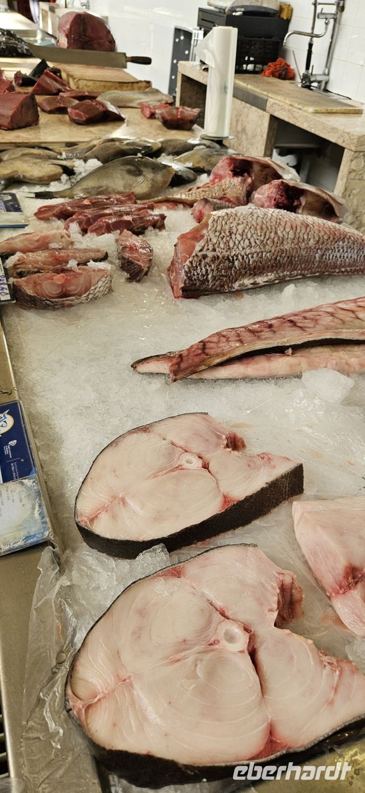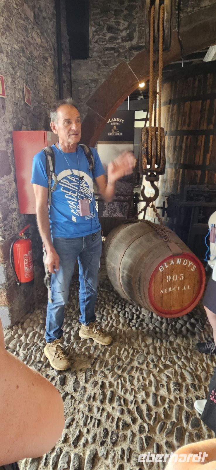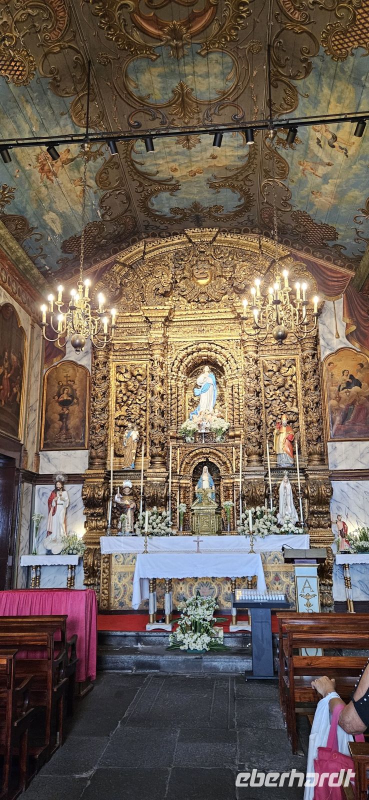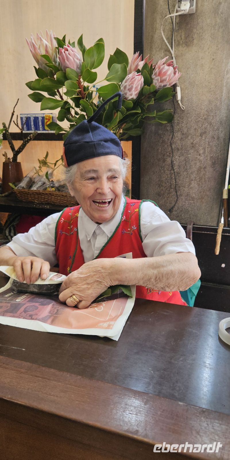 Heute waren wir mit Audio Geräten unterwegs in der Hauptstadt Funchal. Wir begannen mit dem Besuch der Markthalle. Am Freitag kamen zu den üblichen Ständen noch die der Bauern aus der Umgebung hinzu. So war der ganze Innenhof der Markthalle mit frischem Gemüse und Früchten gefüllt und ich ergatterte von einem Bauern einen Strauss mit Nadelkissenproteen. In der Fischhalle bestaunten wir den schwarzen Degenfisch mit seinen großen Augen und scharfen Zänen und Berthold ging mit uns von Stand zu Stand und erzählte welch leckere Gerichte aus den einzelnen Fischen zu zaubern sind. Danach gingen wir zu Fuss durch das Stadtzentrum, besuchten die Kathedrale Se, das Denkmal von Zarco und bestaunten die Blumenteppiche auf den Strassen. In Blandy´s Weinlodge probierten wir einen süssen und einen trockenen 5 Jahre alten Madeira Wein und anschliessend besichtigten wir die Weinlager. Durch den kleinen Park daneben gingen wir zurück zum Bus und der brachte uns hinauf zum Botanischen Garten der Stadt Funchal. Berthold zeigte uns die wichtigsten Pflanzen und Bäume und zum Schluss auch den Nutzgarten des Botanischen Gartens. Er berichtete über die Verwendung der einzelnen Pflanzen und Früchte und schliesslich stibitzten wir die leckeren Früchte vom Pitangueira Baum. Im Cafe auf der Terrasse machten wir eine verspätete Mittagspause und stärkten uns für das weitere Programm. Mit unserem Bus fuhren wir zum Ende der Hotelzone in Funchal und ab da spazierten wir auf der Uferpromenade nach Camara de Lobos, weiter durch das pittoreske Fischerdorf mit dem Besuch von 2 Kirchen. Am anderen Ende wartete schon Umberto und mit ihm fuhren wir hinauf zum Cabo Girao, mit 580 m Höhe die steilste und höchste Klippe Europas. Von der neuen Glasplattform kann man gut hinunter zu den Feldern am Meer schauen und der Blick Richtung Funchal war super und darüber lag eine geschlossene Wolkendecke wie ein Deckel. Sehr imposante Fotos entstanden dadurch. Wieder zurück im Hotel beschlossen wir zum Abendessen das Restaurant Real Canoa zu testen. Und das erwies sich als absoluter Glücksgriff. Zur Begrüßung gab es einen Madeira Wein, wir konnten aus einer abwechslungsreichen Speisekarte auswählen und die Chefin empfahl uns einen wohlschmeckenden Vino Verde zum Essen. Dazu gab es Live Musik und das Essen schmeckte vorzüglich..