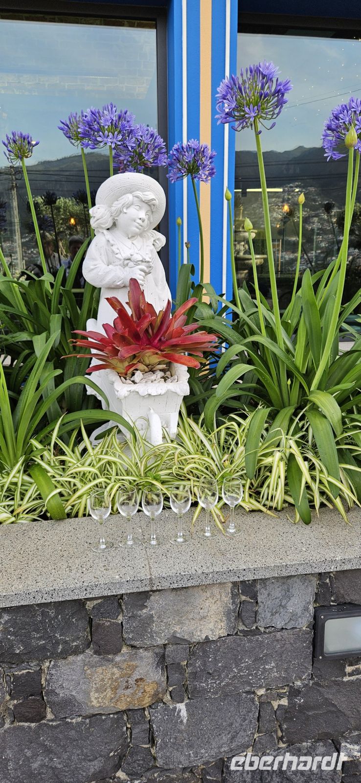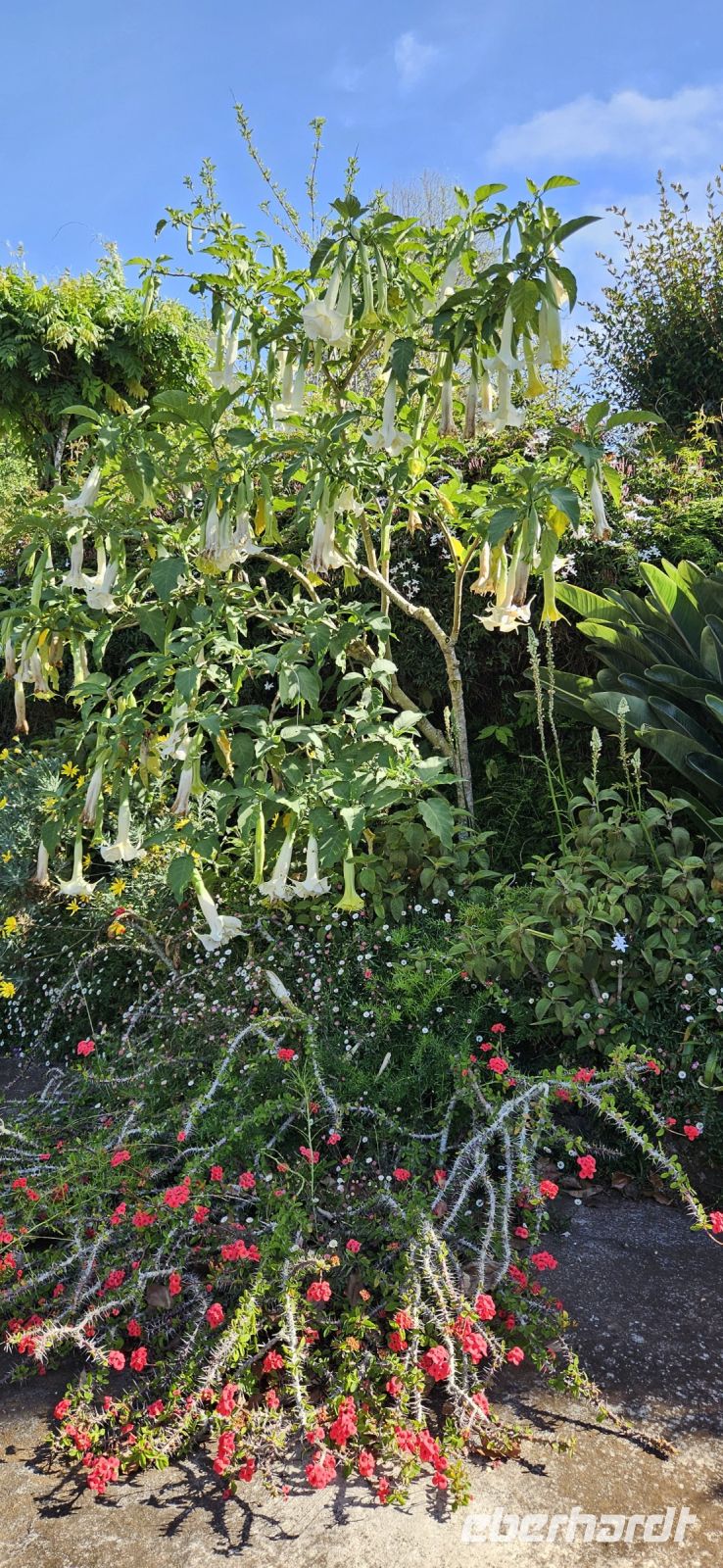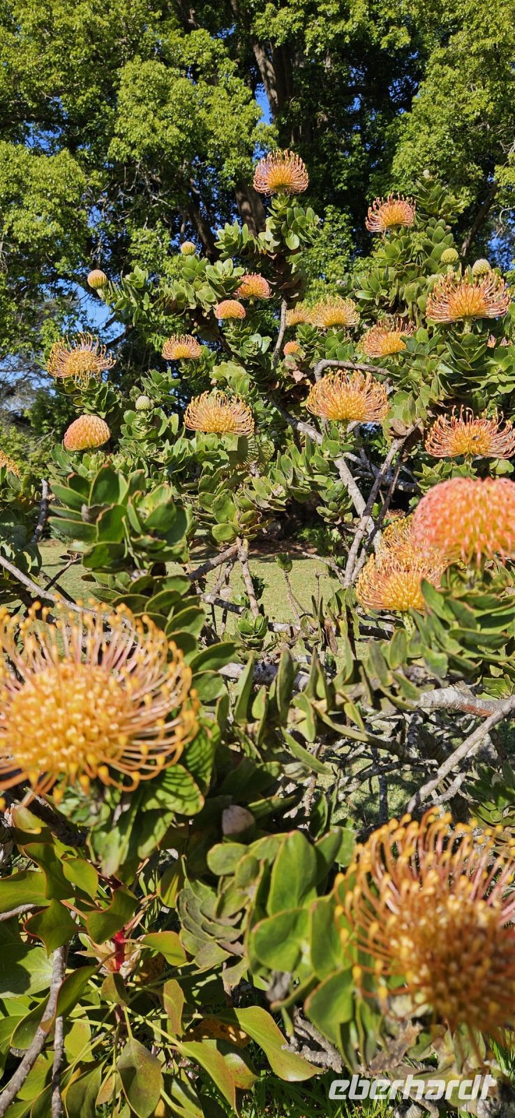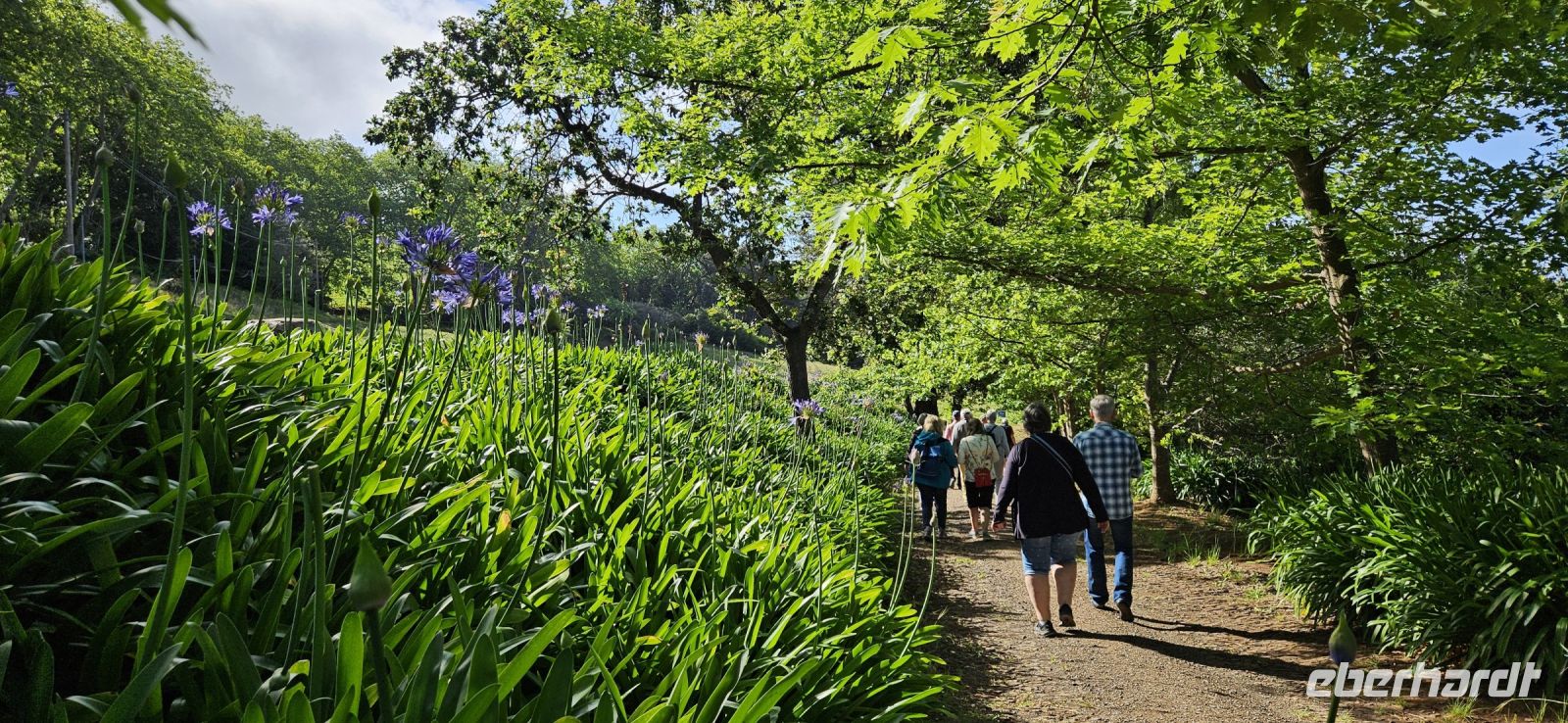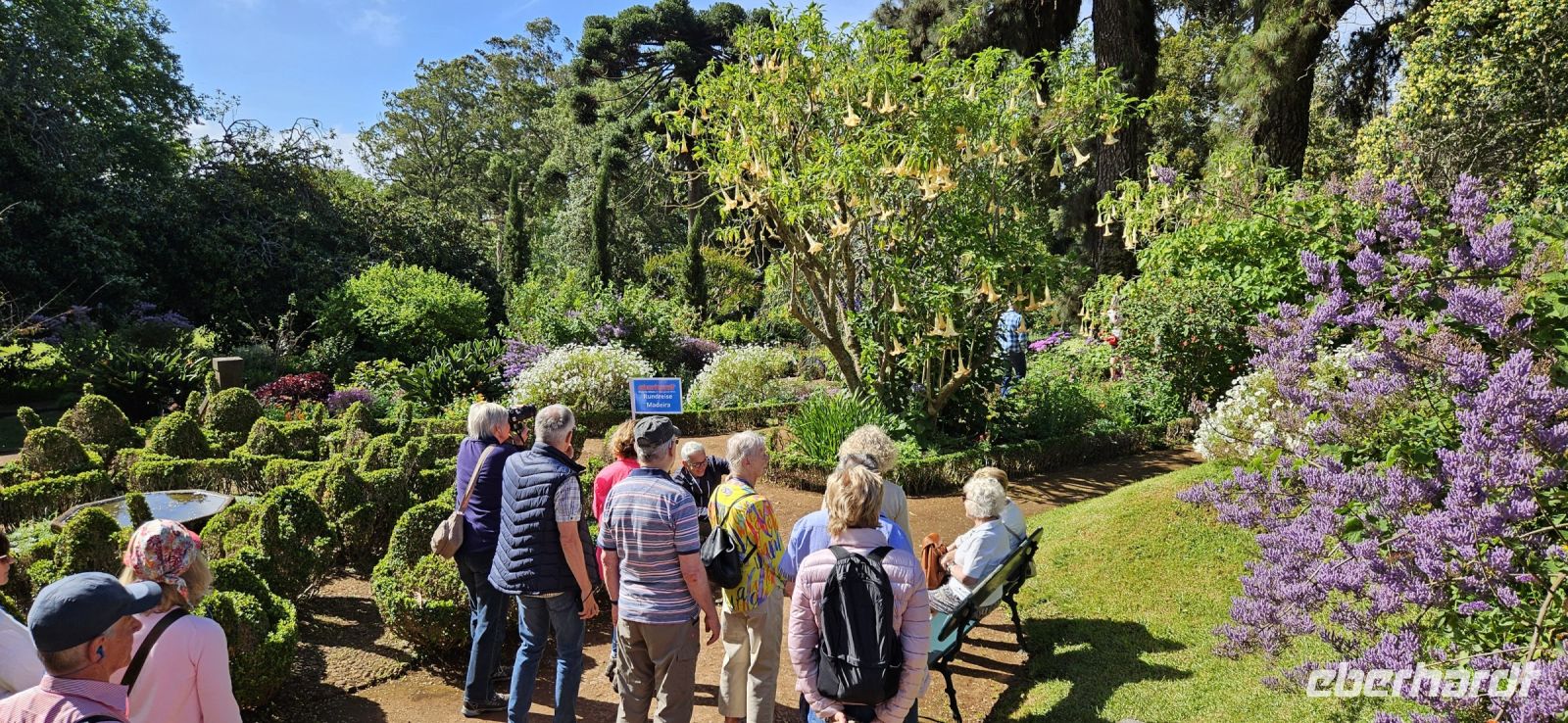 Zum fakultativen Ausflug in die Gärten Madeiras hatten sich nur 4 Singles angemeldet und so machten wir diesen Ausflug zusammen mit den Teilnehmern der Rundreisegruppe. Die Führung übernahm Fatima und sie kannte sich hervorragend aus. Wir begannen im Palheiro Garden, wo auch heute noch die Familie Blandy´s ihr Haus bewohnt. Ganz langsam spazierte Fatima mit uns durch den Garten und zeigte uns eine kleine Auswahl von blühenden Pflanzen und besonderen Bäumen. Die Kamelienblüte ging dem Ende entgegen, aber wir fanden noch schöne Blüten. Ein großer Tulpenbaum, Proteen, viele Beetpflanzen, riesige Trompetenbäume, Taschentuchbaum, Maiglöckchenbaum usw. sollen hier stellvertretend genannt werden. An den Garten grenzt das Gelände des 5 Sterne Golf Hotels an und dort unterhalb ist ein riesiger neuseeländischer Eisenholzbaum zu bewundern. Nach der Besichtigung fuhren wir wieder hinunter in die Stadt und besuchten den Garten Boa Vista und die Orchideenzucht. Unser großer Bus konnte nicht direkt bis zum Eingang fahren und so mussten wir eine steile Strasse zum unteren Eingang hinauf spazieren.Leider waren sehr viele Gruppen gerade dort und so konnte Patrick nicht selbst die Führung übernehmen. Wir bestaunten die vielen verschiedenen Orchideen und die "Vorhänge" aus Tillandsien und besuchten anschliessend seinen Garten.