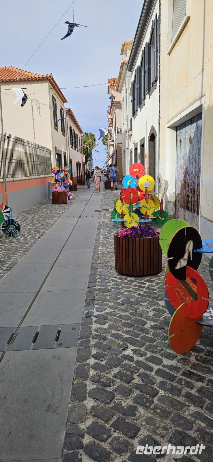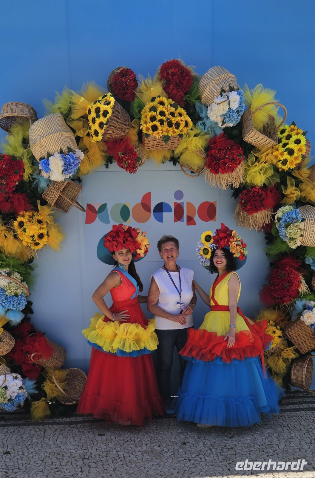 Nach dem Frühstück checkten wir aus, stellten unser Gepäck ein und die meisten Singles fuhren mit mir nochmal mit dem Linienbus nach Funchal. Wir besuchten die Santa Maria Strasse und konnten ganz entspannt die von Künstlern gestalteten Türen fotografieren. Danach besuchten wir die Markthalle, um Blumen für die Lieben zu Hause einzukaufen. Das dauerte, denn die Blumen wurden sachgerecht in Kartons verpackt und so reisefertig gemacht. Wir spazierten noch einmal durch die Stadt, gönnten uns ein Eis und am Blumenbogen die letzten Fotos. Mit dem Linienbus fuhren wir anschliessend zurück zum Hotel und da war noch Zeit für ein letztes Mittagessen an der Uferpromenade.