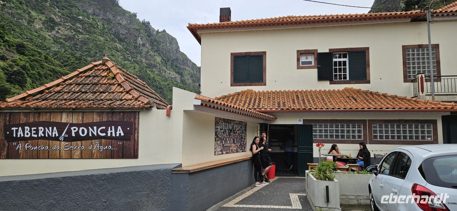 Unser letzter Ausflug führte zunächst nach Ribeira Brava, einen zauberhaften kleinen Ort am "wilden Bach". Wir besuchten die Kirche und die kleine Markthalle und stöberten in den Geschäften. Danach fuhren wir weiter gen Westen und bei Ponta do Sol hinauf auf die Paul de Serra bis auf 1400 m Höhe. Im Programm stand eine Wanderung an der Levada do Paul. Wir entschieden uns aber für eine Wanderung in Fanal, denn dort gibt es noch die Reste des einstigen Lorbeerwaldes auf Madeira. Wir wanderten ca. 5 km über die Hochweiden der Paul de Serra und durch den Lorbeerwald. Die uralten Bäume boten unzählige Fotomotive und der Blick gen Nordküste in das unendliche Wolkenmeer unter uns war unbeschreiblich schön. Wir krönten den Ausflug mit ein/zwei Gläschen vom Cherimoya Likör und genossen diese letzte Wanderung in vollen Zügen. Die Strasse hinunter ans Meer bei Ribeira da Janela führte aussichtsdreich über viele Serpentinen und nach einem Tunnel erreichten wir schliesslich Porto Moniz an der Nordwest Spitze Madeiras. Hier luden die Meerwasserschwimmbecken zum Baden ein oder einfach nur ein Spaziergang an den vielen Buchten des Ortes. Auf der Rückfahrt kamen wir durch Seixal und in Sao Vicente machten wir nochmals Stop, um die Kirche zu besuchen. Da die Strasse über den Ecumeada Pass wegen Bauarbeiten gesperrt war, fuhren wir durch den Tunnel vom Norden in den Süden der Insel. In Serra de Agua gab es den letzten Halt zum Besuch der legendären Taberna Poncha. Ich spendierte den letzten Poncha und dazu gab es reichlich Erdnüsse und die Schalen wirft man dort in der Bar auf den Boden. Beschwingt fuhren wir nun zurück zum Hotel und bedankten uns dort bei Berthold und Umberto für die erlebnisreichen Tage auf Madeira. Unser letztes Abendessen gab es im Hotelrestaurant.
