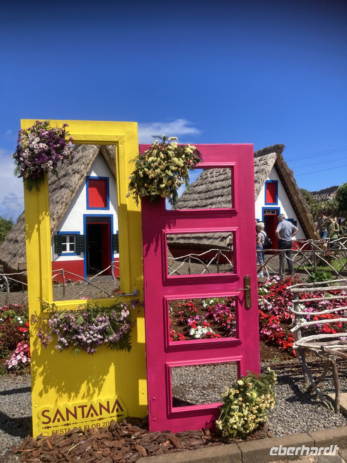 Weiter geht es zur nächsten Rast in Ribeiro Frio, wo man eine Forellenzucht besichtigen und manche Andenkenläden mit angeschlossenem Ponchaausschank besuchen kann. Doch unser nächstes Ziel der Ort Santana, wo es noch die ursprünglichen mit Stroh gedeckten Häuser und natürlich einen Obst-und Gemüsemarkt gibt.Das Haupziel des Tages ist nun der Pico das Torres mit 1.851 m, den wir zu Fuß besiegen werden. Vom benachbarten Parkplatz sind es 90 min Gehzeit und wir haben es geschafft. Noch ist das Tagespensum nicht geschafft, erholen können wir uns dann wieder zu Hause. Machico an der Ostküste ist das nächste Ziel. Und wir haben viel Glück, es findet ein Volksfest statt und somit gibt es besonders vielfältige Eindrücke. Abgerundet wird der Tag mit einer Fahrt unter der Landebahn des beeindruckenden Flughafens Funchals hindurch zu einem schönen Aussichtspunkt dem Pico do Facho. Wieder im Hotel eingetroffen erfasst uns der Hunger und auch Appetit. Im benachbarten Restaurant Praia dos Reis Magos in Canico de Beixo werden wir fündig und sinken alsbald müde in unsere Betten.