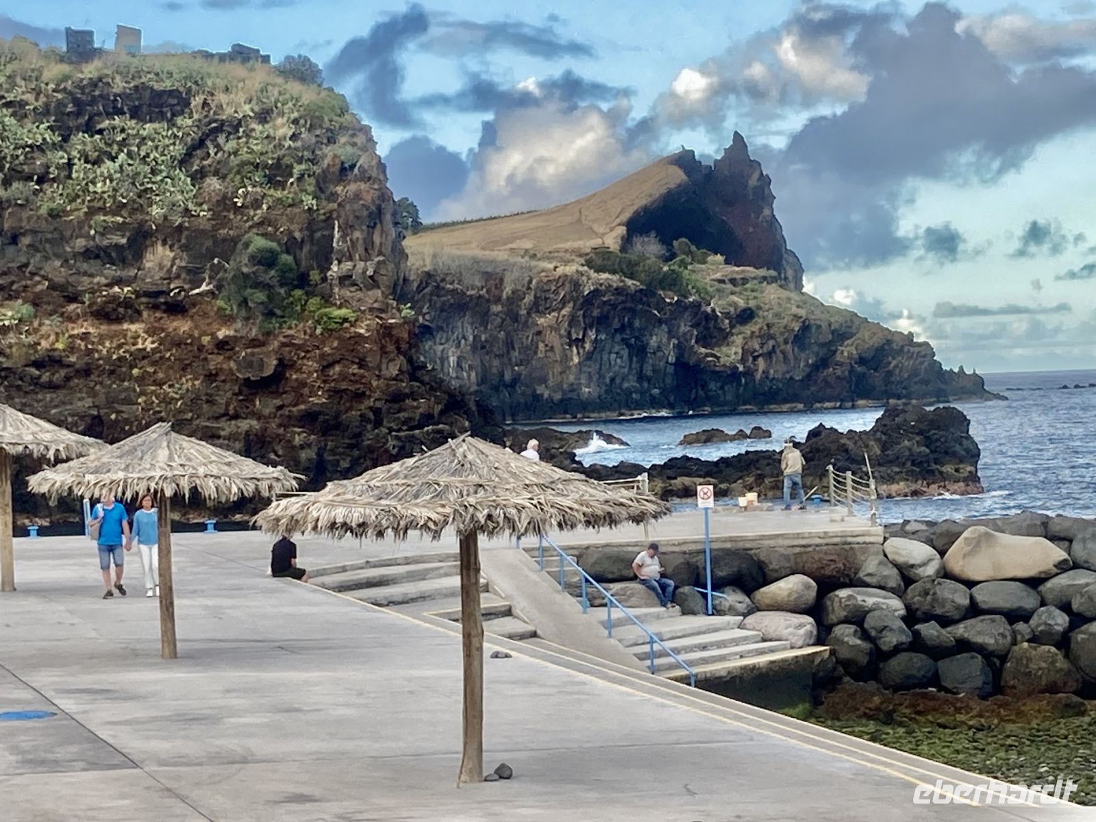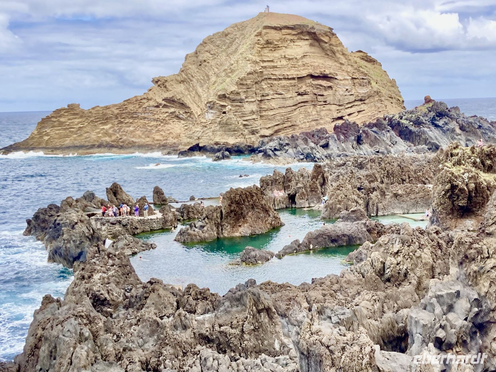 Porto Moniz erwartet uns als nächstes. Spektakulär ist die Abfahrt von der Hochebene an die Küste. Ein gemeinsames Mittagessen ist organisiert und ein Schwimmen in den Meeresbecken wird möglich. An zwei markanten Punkten halten wir auf der Rückfahrt. Es gibt einen Wasserfall zu bestaunen und eine Stelle auf der Insel, von der man sowohl die Nord- als auch die Südküste sehen kann.