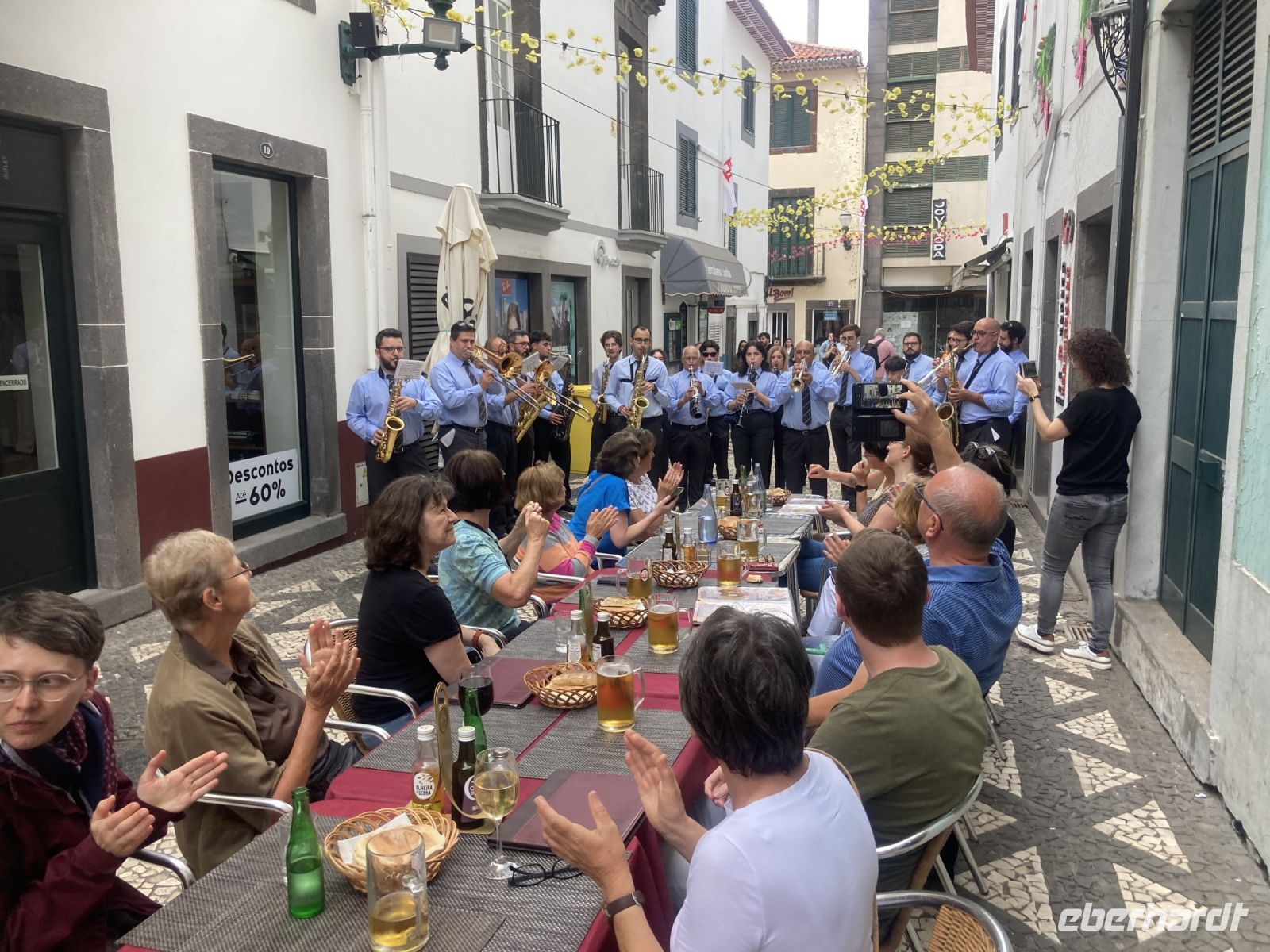 Irgendwann haben wir uns alle gefunden und es geht ab ins wunderschöne Hotel Four Views Oasis in Caniço de Baixo. Wir werden von Fatima unserer örtlichen Reiseführerin begrüßt und mit den notwendigen Informationen bei einem Glas Madeirawein versorgt. Nun ist Stärkung angesagt, das Buffet im Hotelrestaurant lädt ein und läßt keine Wunsche offen. Erst jetzt checken wir im Hotel ein und der Abend wird nicht mehr lang.
