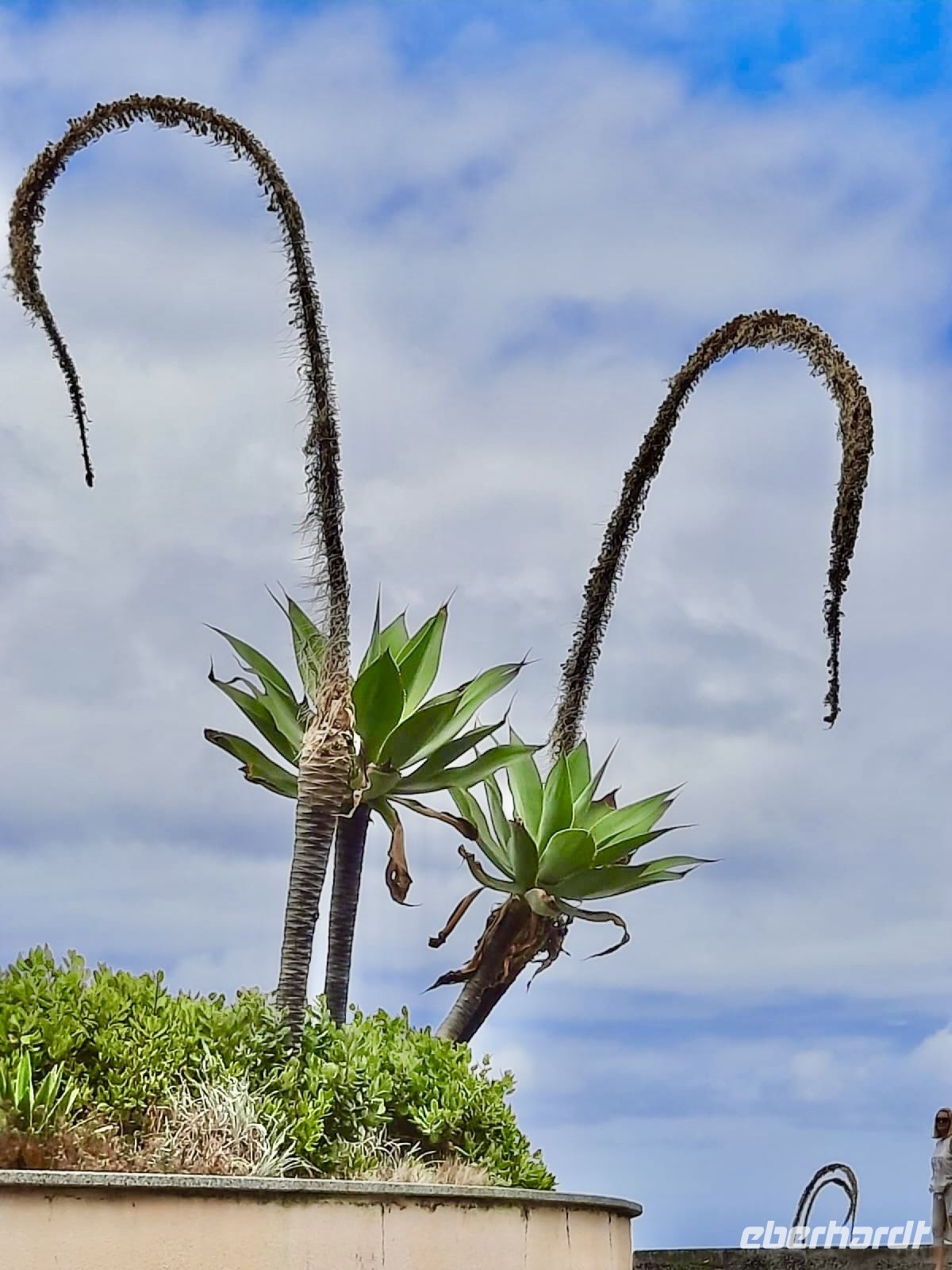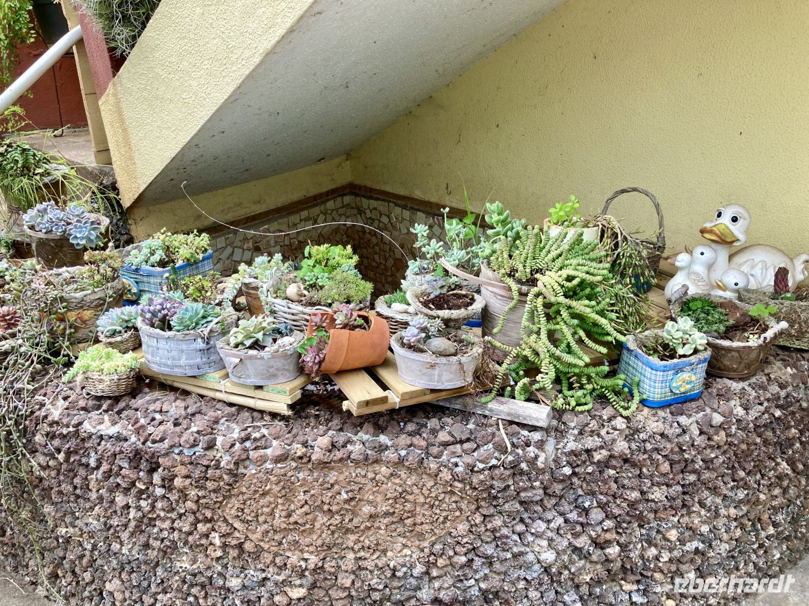 Weiter geht es mit dem Bus etwas bergauf in den Botanischen Garten Jardim Botanico, der erst seit 2011 für die Öffentlichkeit zugängig ist. Er ist ca 8 ha groß und umfasst unter anderem einen Bereich mit Kakteen und Euphorbien (Wolfsmilchgewächs), die 2013 vom Bund der Deutschen Staudengärtner zur Staude des Jahres gewählt wurde.