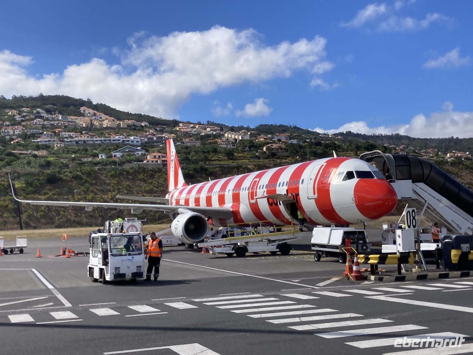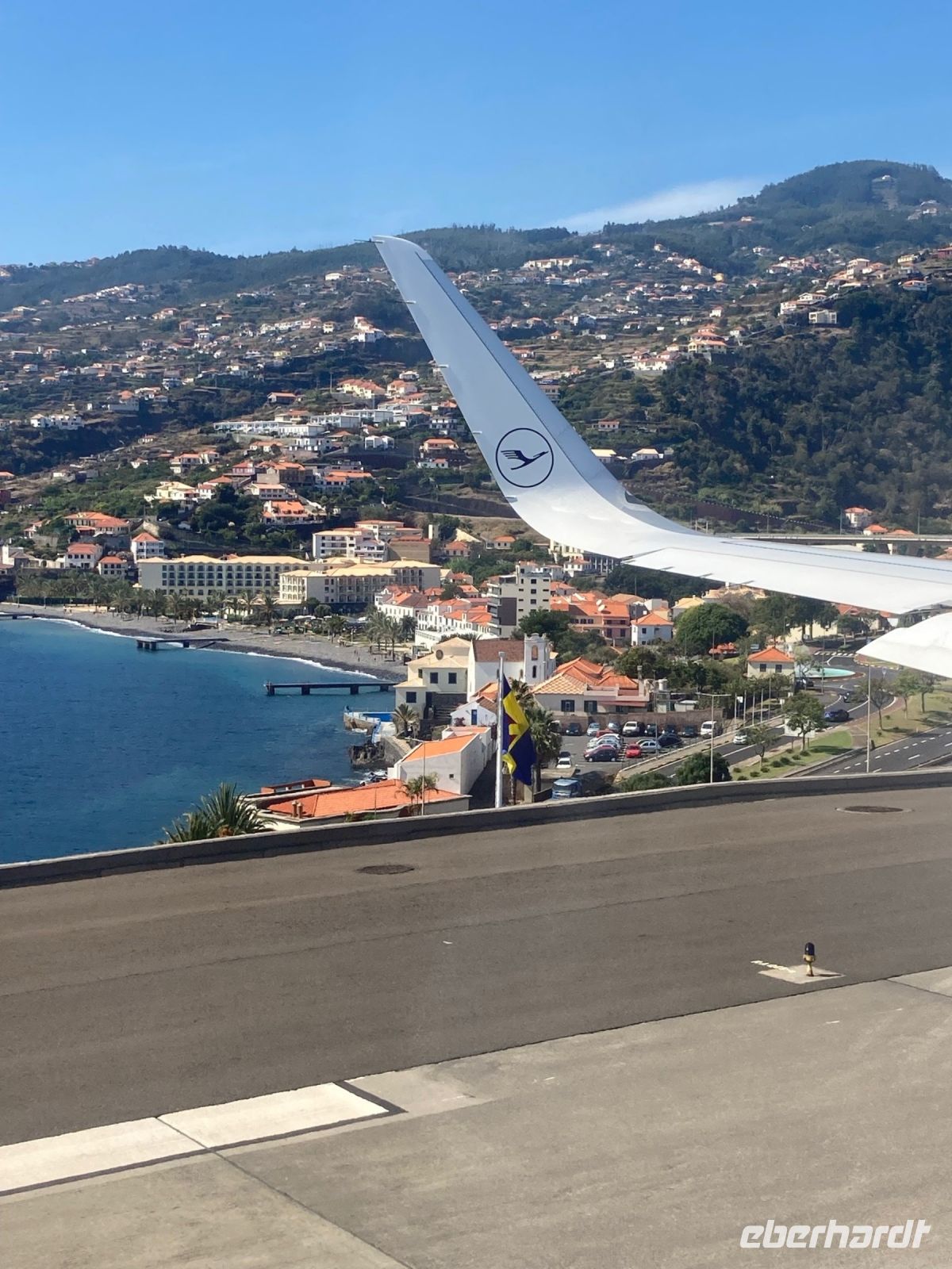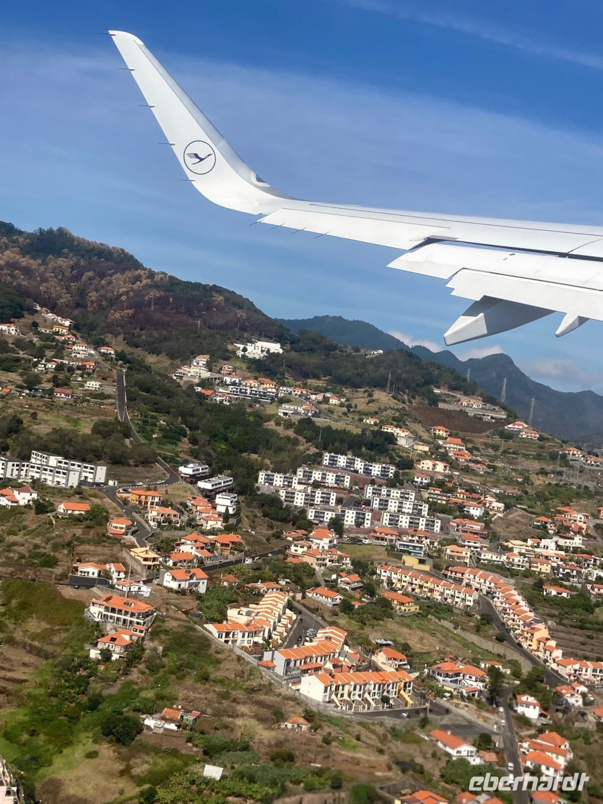 Der größte Teil der Gruppe fliegt mit Condor von Dresden aus. Schnell heben wir uns alle gefunden und es geht zum CheckInn. Leider ist das vorab als Gruppenbuchung bei Condor nicht möglich und somit ist Geduld angesagt. Rund 200 Passagiere wollen platziert werden. So fällt dann das Warten am Gate eben nicht so lang aus. Fast pünktlich geht es los und 4 1/2 h erwarten uns in der Luft. Bei der Landung in Funchal fällt die berühmte Rechtskurve weg. Wir landen ungewöhnlich direkt von Osten aus.